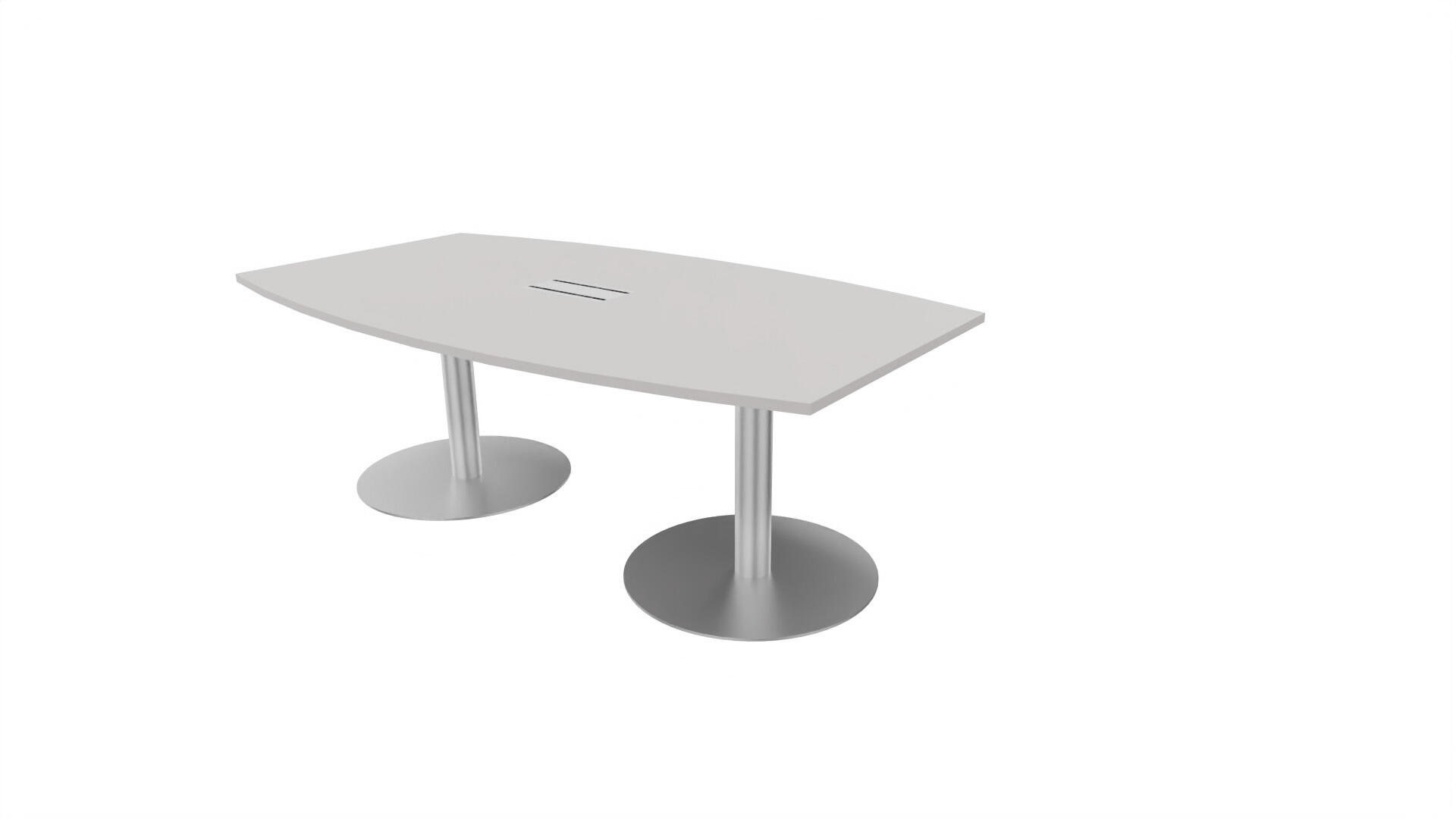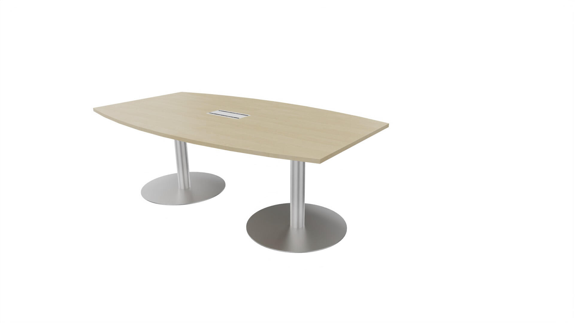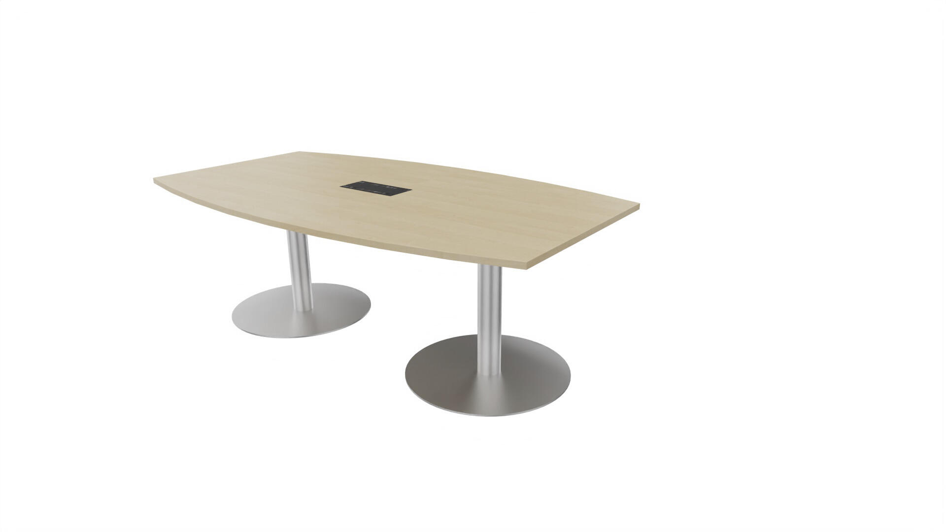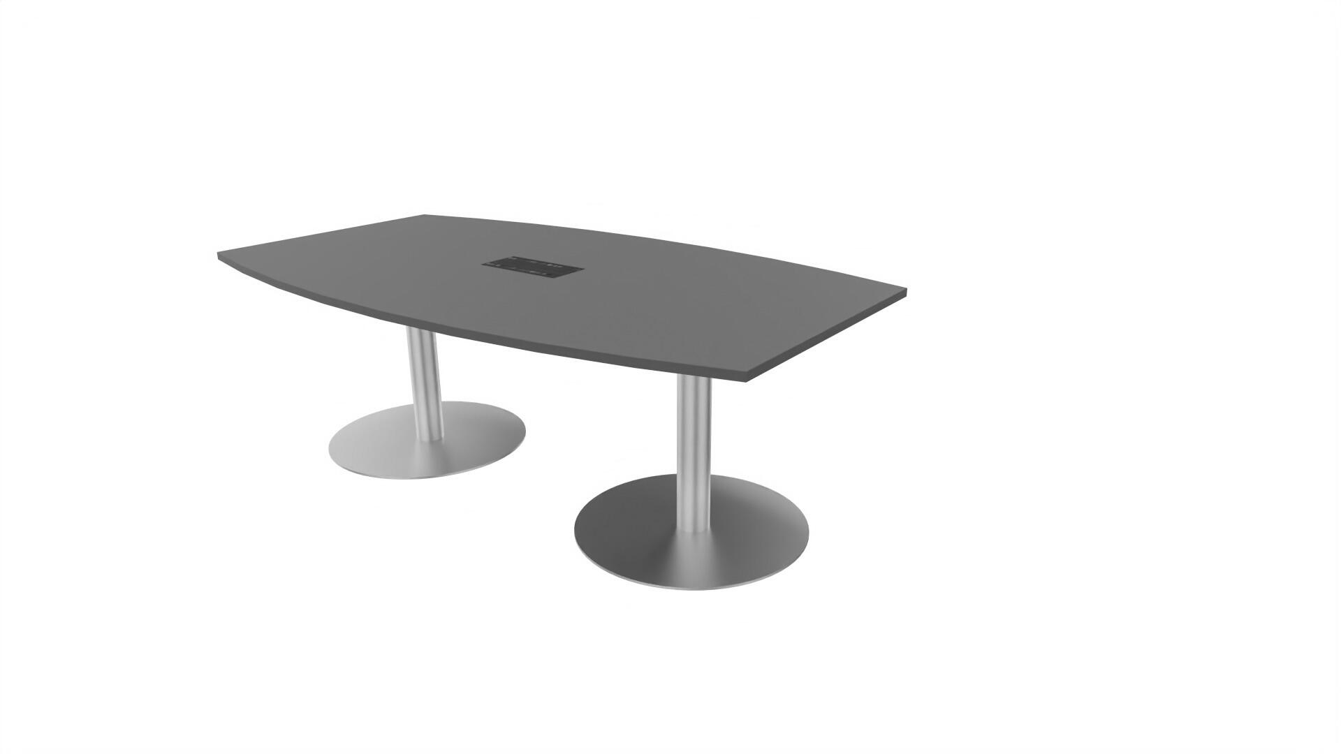 Ett konferensbord med en skiva formad som en avkapad ellips. Kärna av spånskiva klädd med laminat och ABS-kantband. Underrede T-stativ med 3 ben, fotlängd: 90 cm. Förutom vanligt standardlaminat, finns bordet även med ett svart nanolaminat som har en yta som är matt och resistent mot fingeravtryck. Som tillval kan du även välja att få två st mediaboxar (32x15 cm) infällda i bordet. Varje mediabox består av 2x 230V eluttag, 1x USB och 1x HDMI.