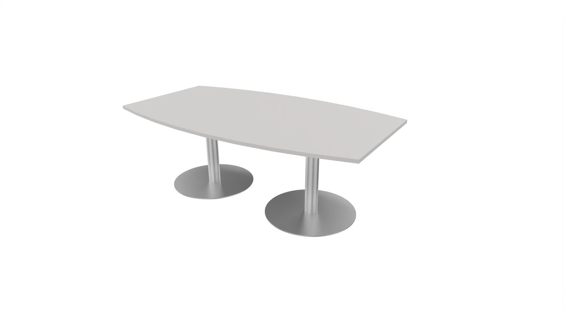 Ett konferensbord med en skiva formad som en avkapad ellips. Kärna av spånskiva klädd med laminat och ABS-kantband. Underrede pelarstativ med 2 ben, pelardiameter: ø 10,2 cm, fotdiamenter: ø 72 cm. Förutom vanligt standardlaminat, finns bordet även med ett svart nanolaminat som har en yta som är matt och resistent mot fingeravtryck. Som tillval kan du även välja att få en mediabox (32x15 cm) infälld i bordet. Mediaboxen består av 2x 230V eluttag, 1x USB och 1x HDMI.