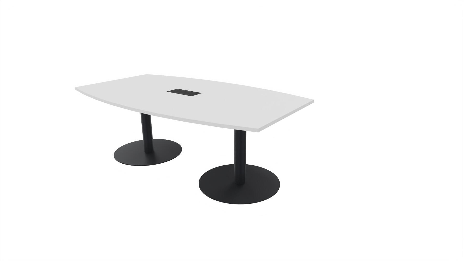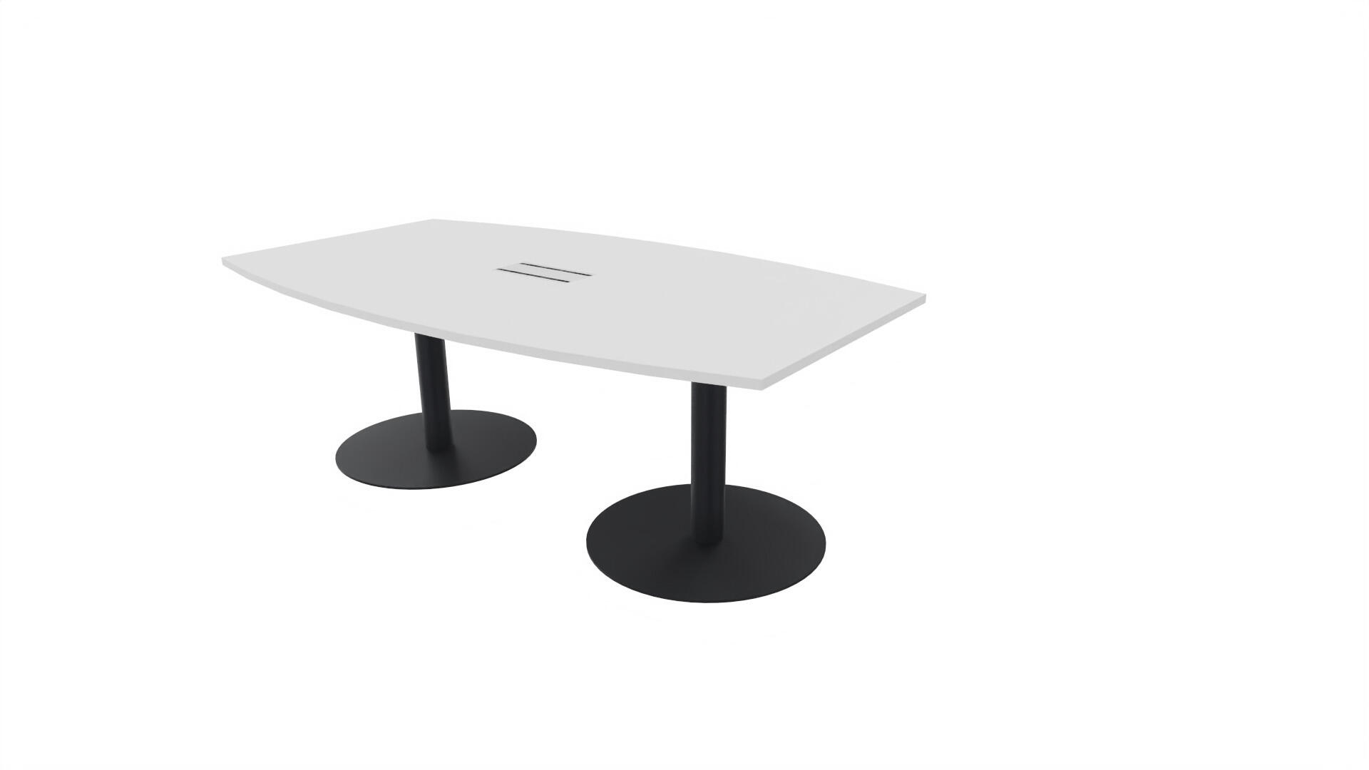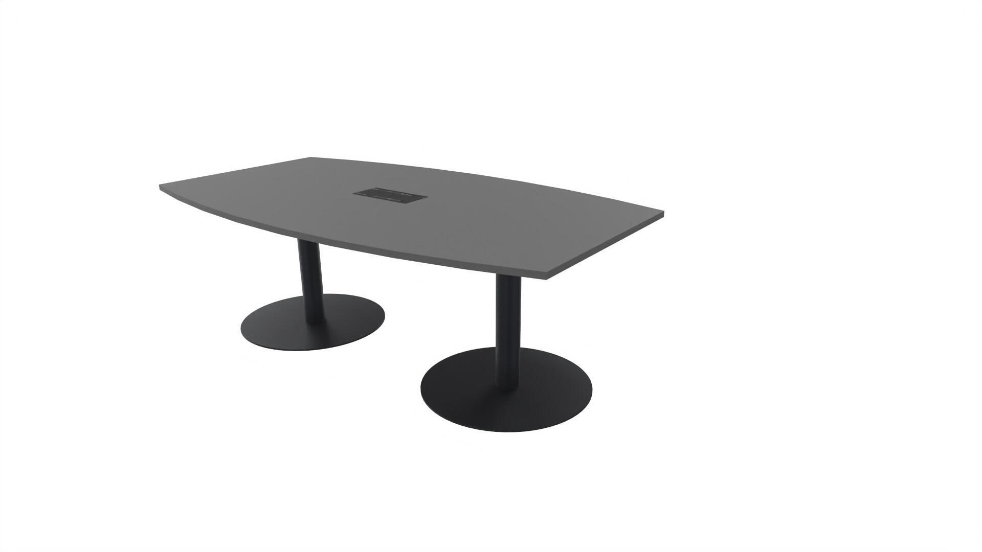 Ett konferensbord med en skiva formad som en avkapad ellips. Kärna av spånskiva klädd med laminat och ABS-kantband. Underrede T-stativ med 2 ben, fotlängd: 90 cm. Förutom vanligt standardlaminat, finns bordet även med ett svart nanolaminat som har en yta som är matt och resistent mot fingeravtryck. Som tillval kan du även välja att få en mediabox (32x15 cm) infälld i bordet. Mediaboxen består av 2x 230V eluttag, 1x USB och 1x HDMI.