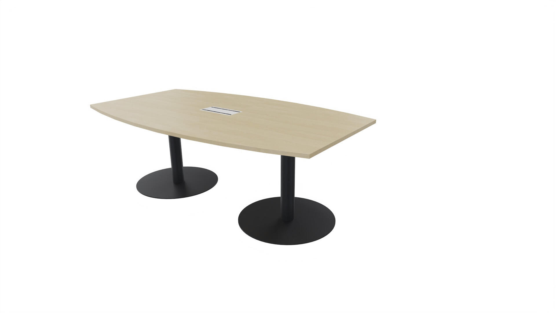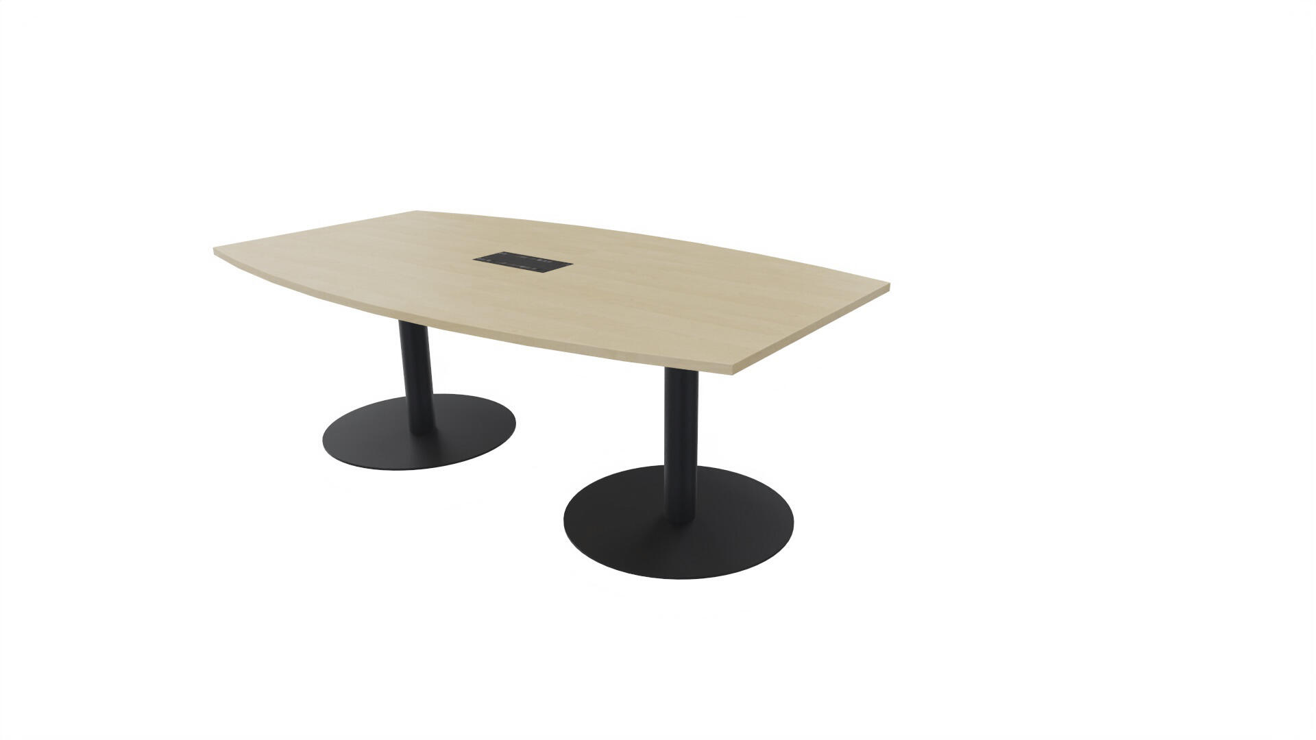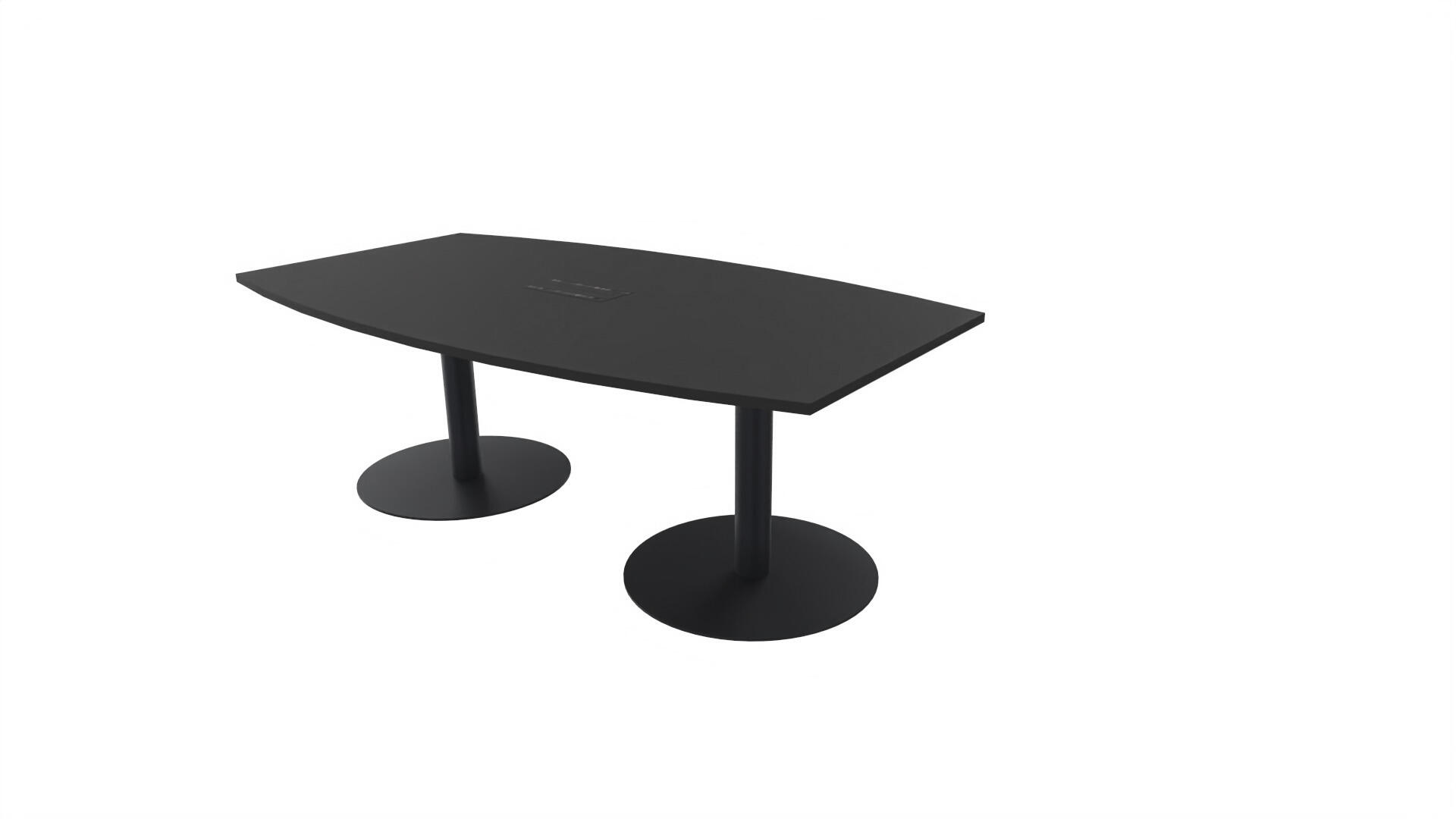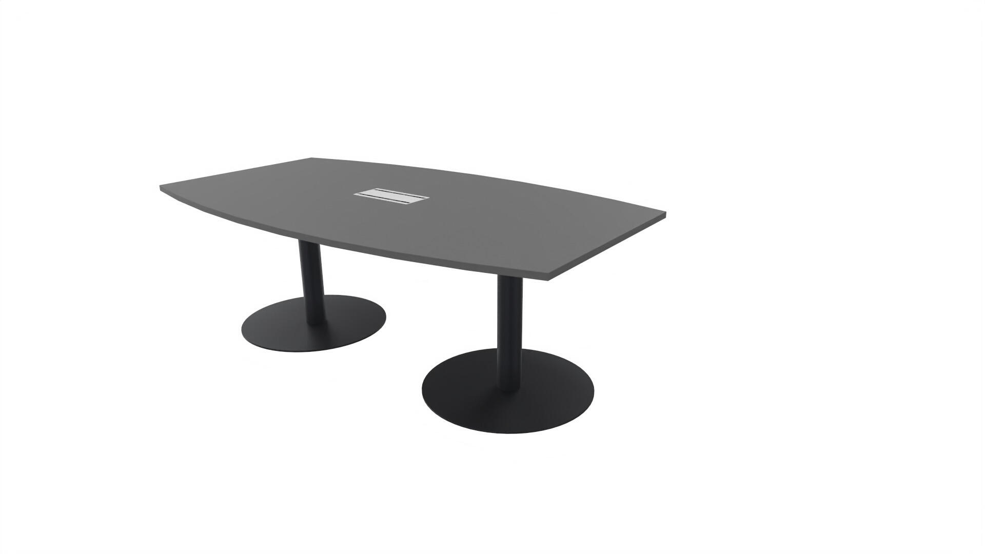 Ett konferensbord med en skiva formad som en avkapad ellips. Kärna av spånskiva klädd med laminat och ABS-kantband. Underrede T-stativ med 2 ben, fotlängd: 90 cm. Förutom vanligt standardlaminat, finns bordet även med ett svart nanolaminat som har en yta som är matt och resistent mot fingeravtryck. Som tillval kan du även välja att få en mediabox (32x15 cm) infälld i bordet. Mediaboxen består av 2x 230V eluttag, 1x USB och 1x HDMI.