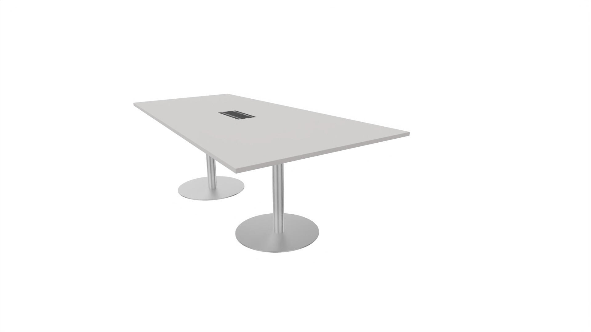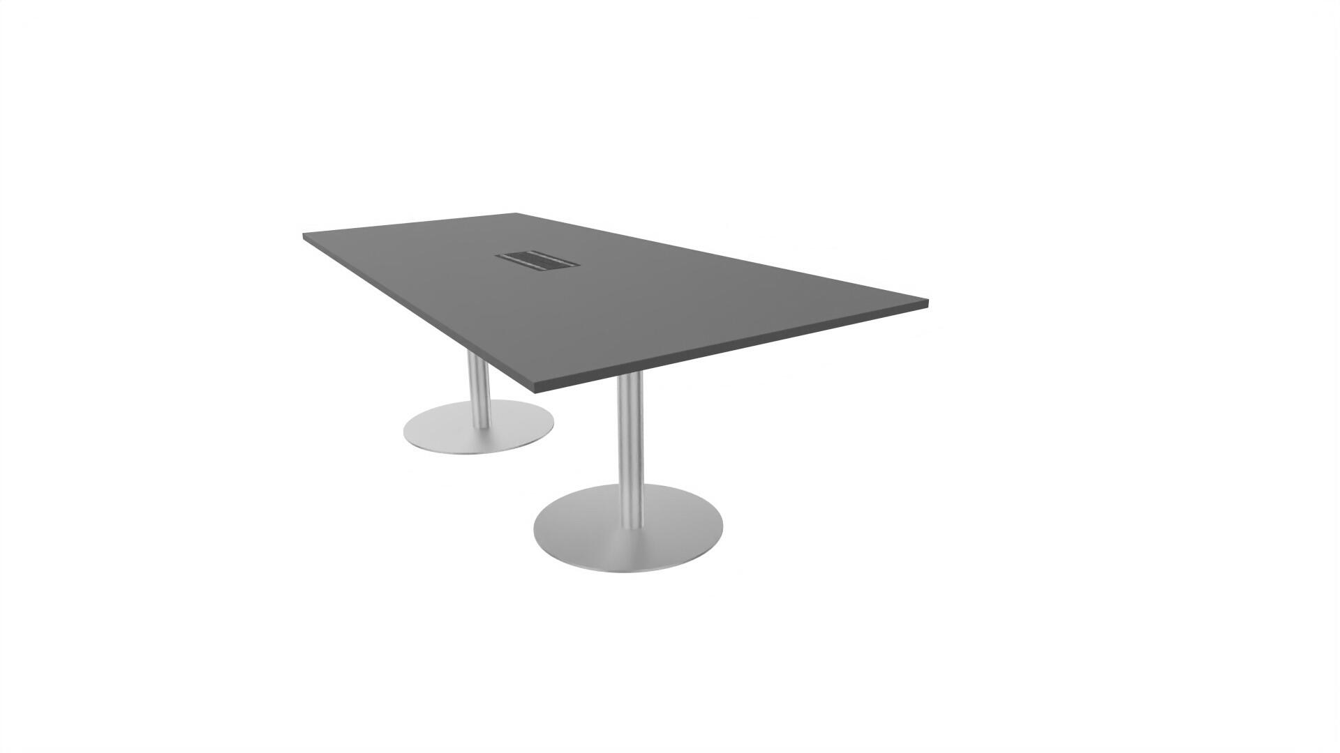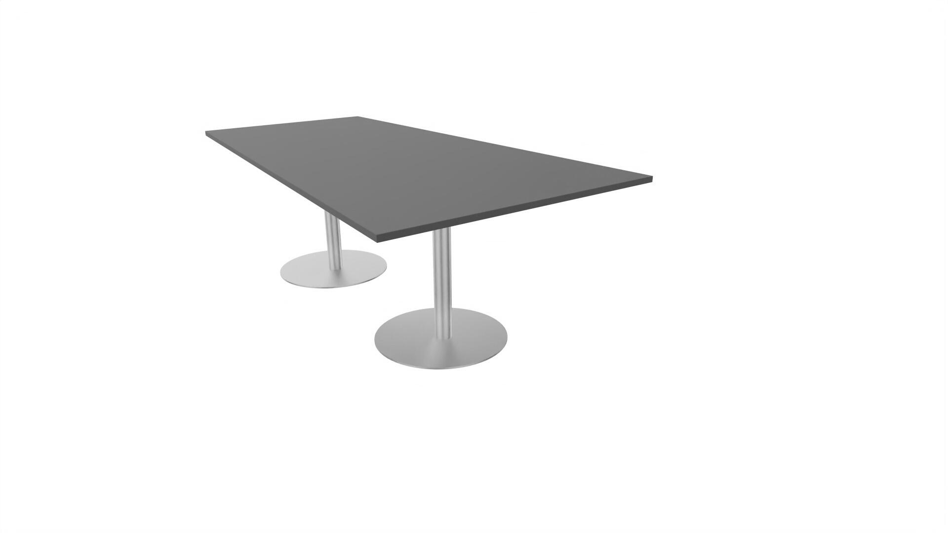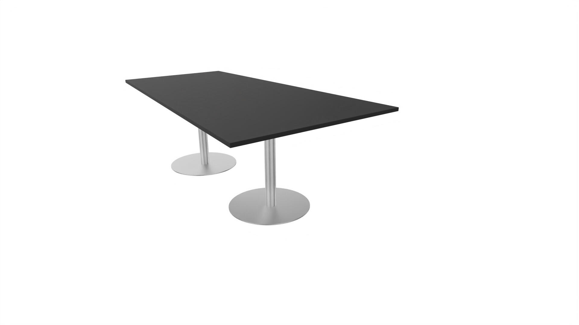 Ett konferensbord med rektangulär skiva, rak kant. Kärna av spånskiva klädd med laminat och ABS-kantband. Underrede pelarstativ med 2 ben, pelardiameter: ø 10,2 cm, fotdiamenter: ø 72 cm. Förutom vanligt standardlaminat, finns bordet även med ett svart nanolaminat som har en yta som är matt och resistent mot fingeravtryck. Som tillval kan du även välja att få två st mediaboxar (32x15 cm) infällda i bordet. Varje mediabox består av 2x 230V eluttag, 1x USB och 1x HDMI.