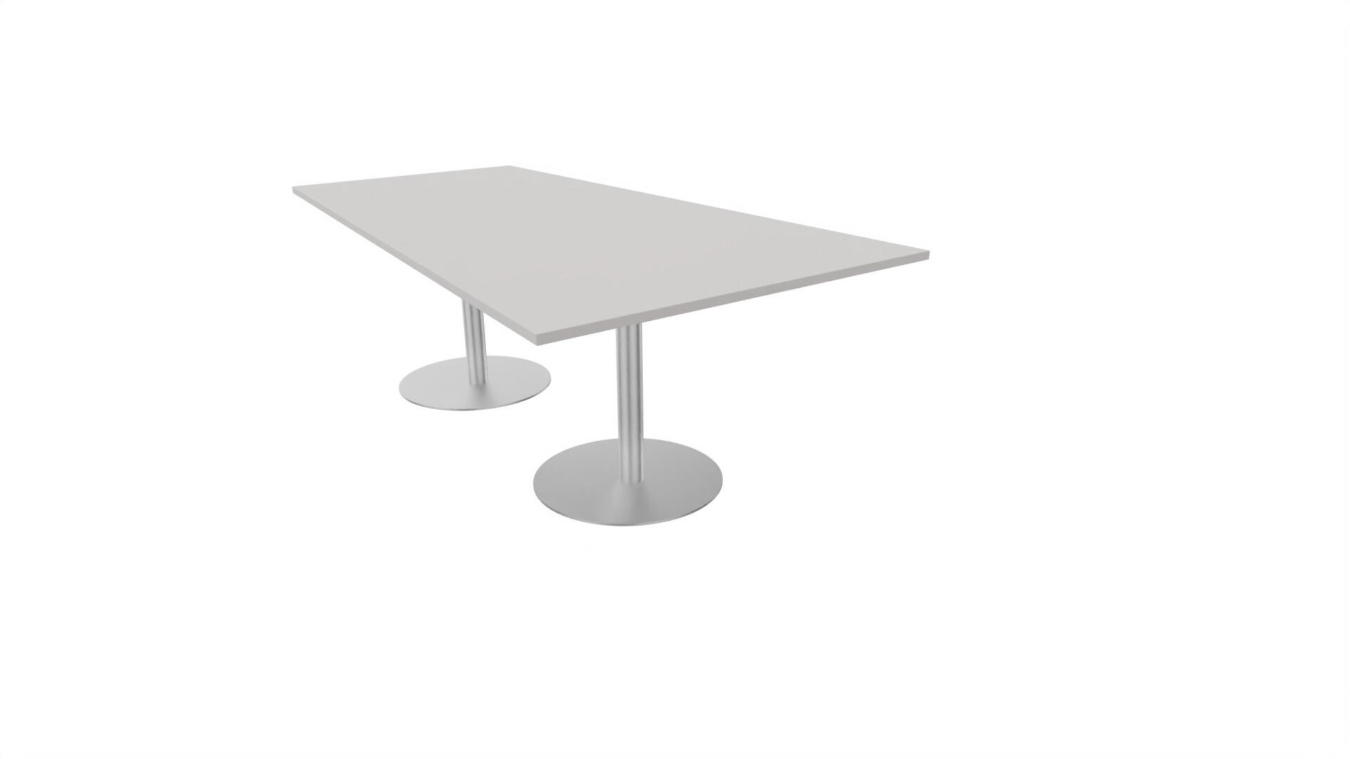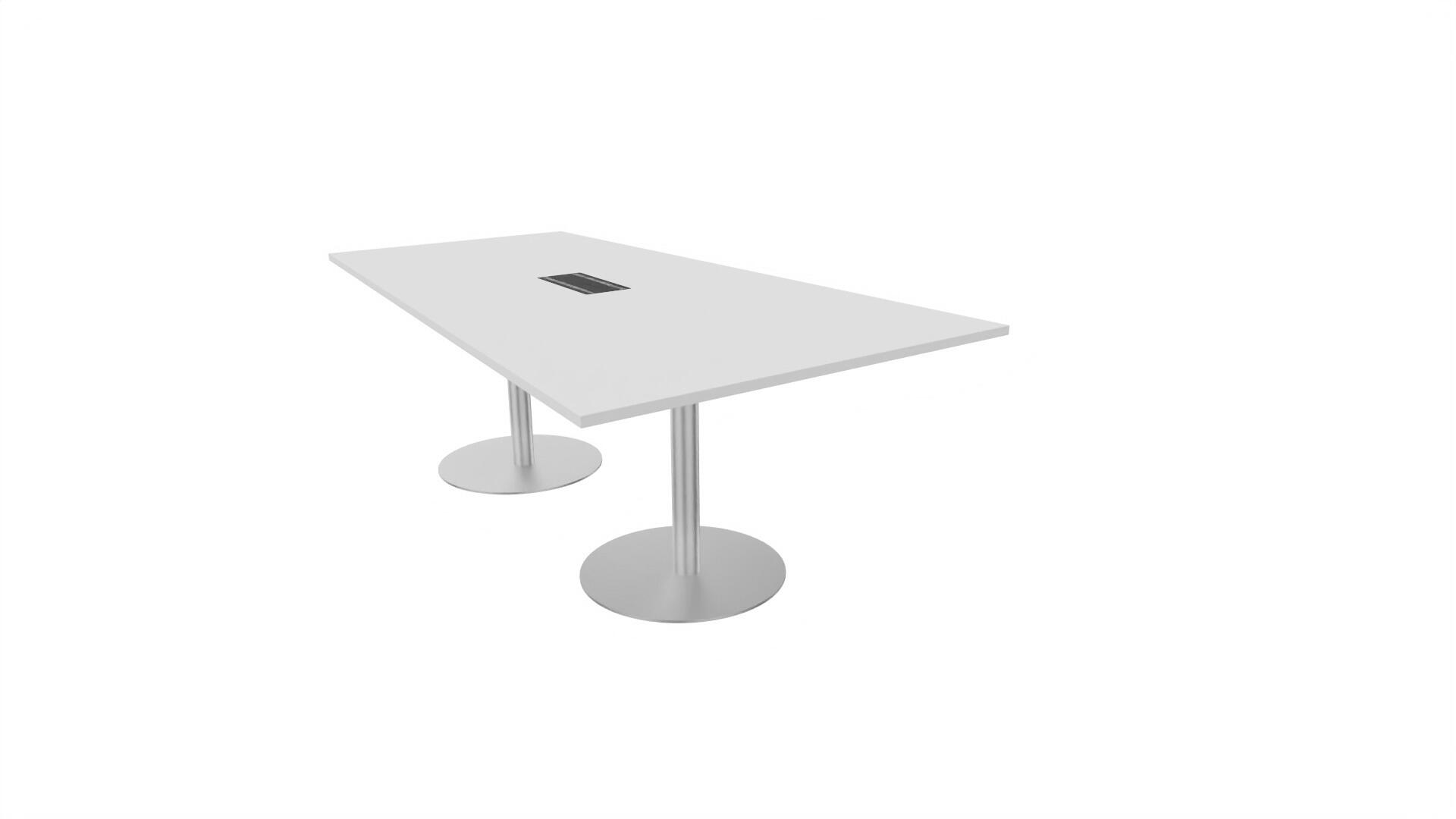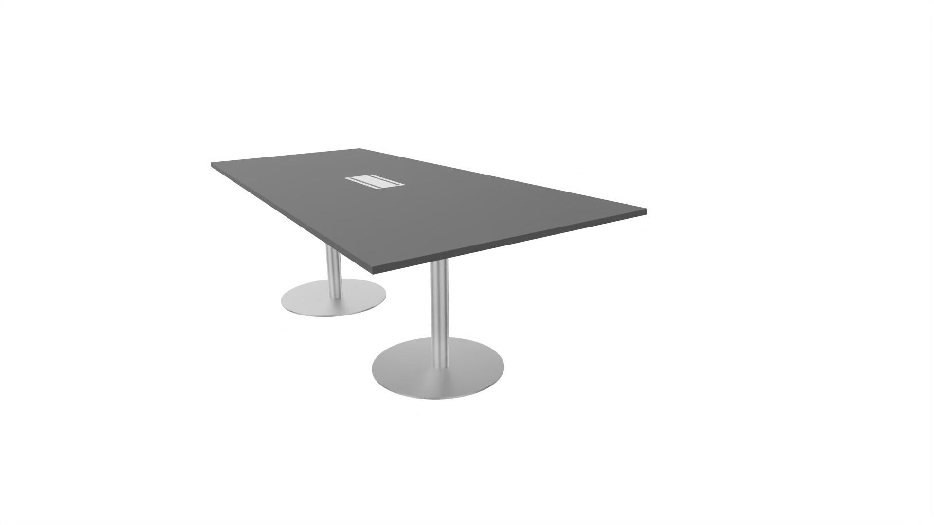 Ett konferensbord med rektangulär skiva, rak kant. Kärna av spånskiva klädd med laminat och ABS-kantband. Underrede pelarstativ med 2 ben, pelardiameter: ø 10,2 cm, fotdiamenter: ø 72 cm. Förutom vanligt standardlaminat, finns bordet även med ett svart nanolaminat som har en yta som är matt och resistent mot fingeravtryck. Som tillval kan du även välja att få två st mediaboxar (32x15 cm) infällda i bordet. Varje mediabox består av 2x 230V eluttag, 1x USB och 1x HDMI.