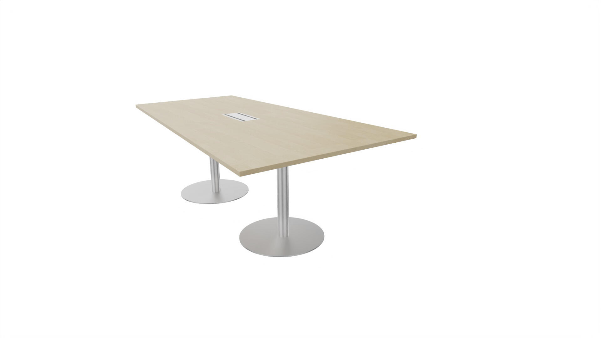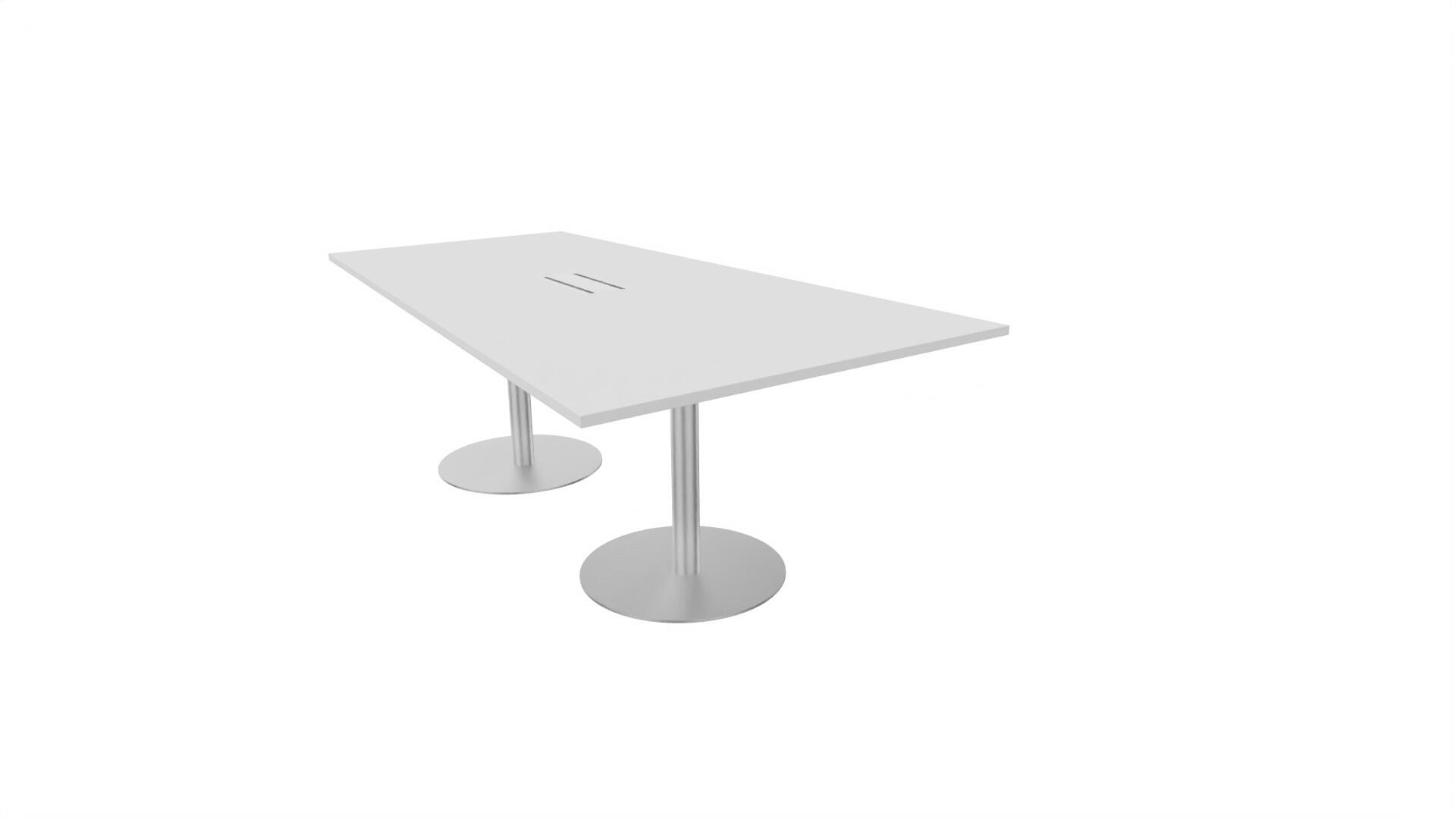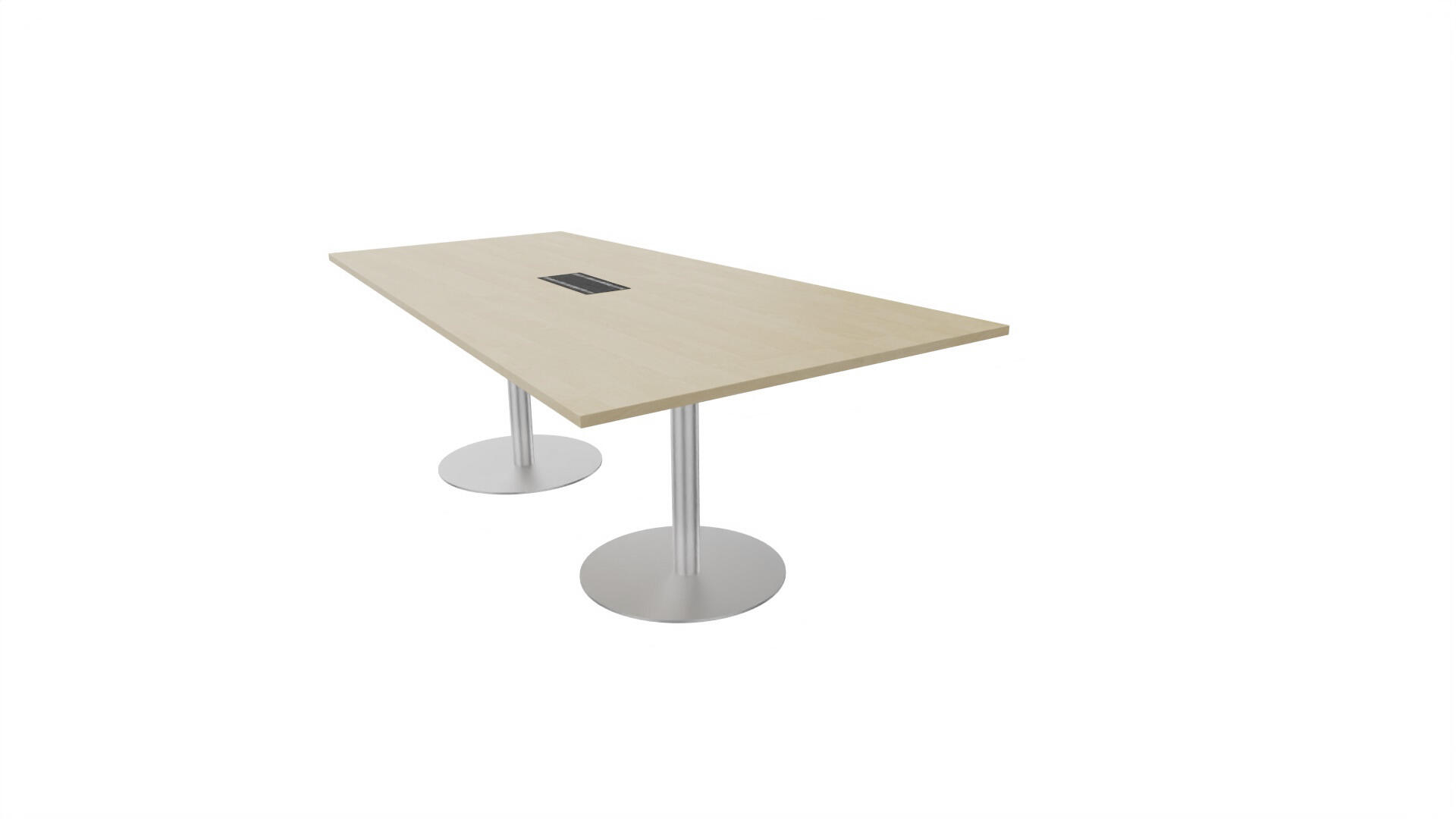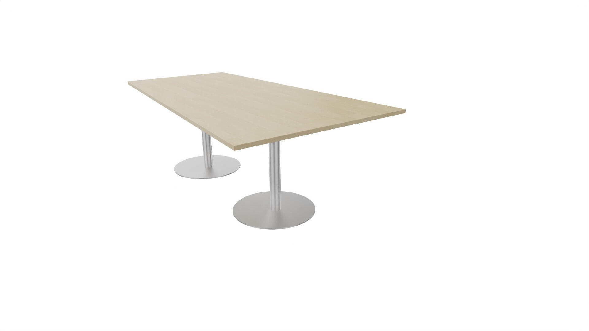 Ett konferensbord med rektangulär skiva, rak kant. Kärna av spånskiva klädd med laminat och ABS-kantband. Underrede pelarstativ med 2 ben, pelardiameter: ø 10,2 cm, fotdiamenter: ø 72 cm. Förutom vanligt standardlaminat, finns bordet även med ett svart nanolaminat som har en yta som är matt och resistent mot fingeravtryck. Som tillval kan du även välja att få två st mediaboxar (32x15 cm) infällda i bordet. Varje mediabox består av 2x 230V eluttag, 1x USB och 1x HDMI.