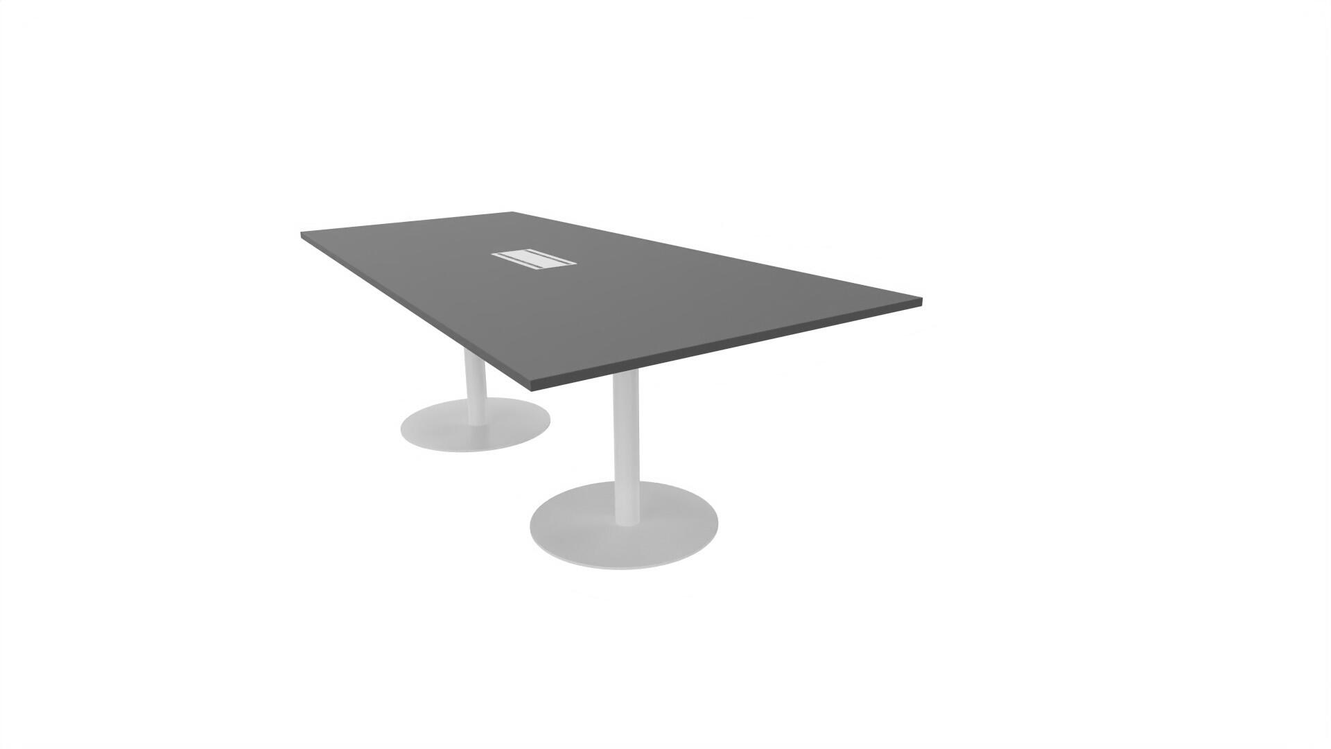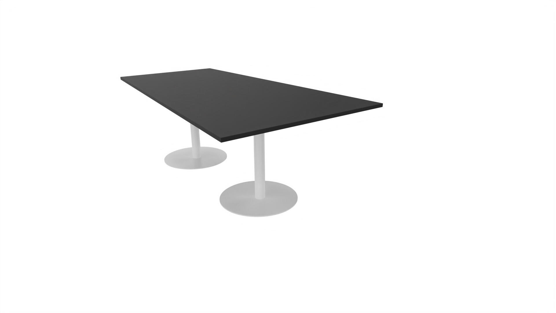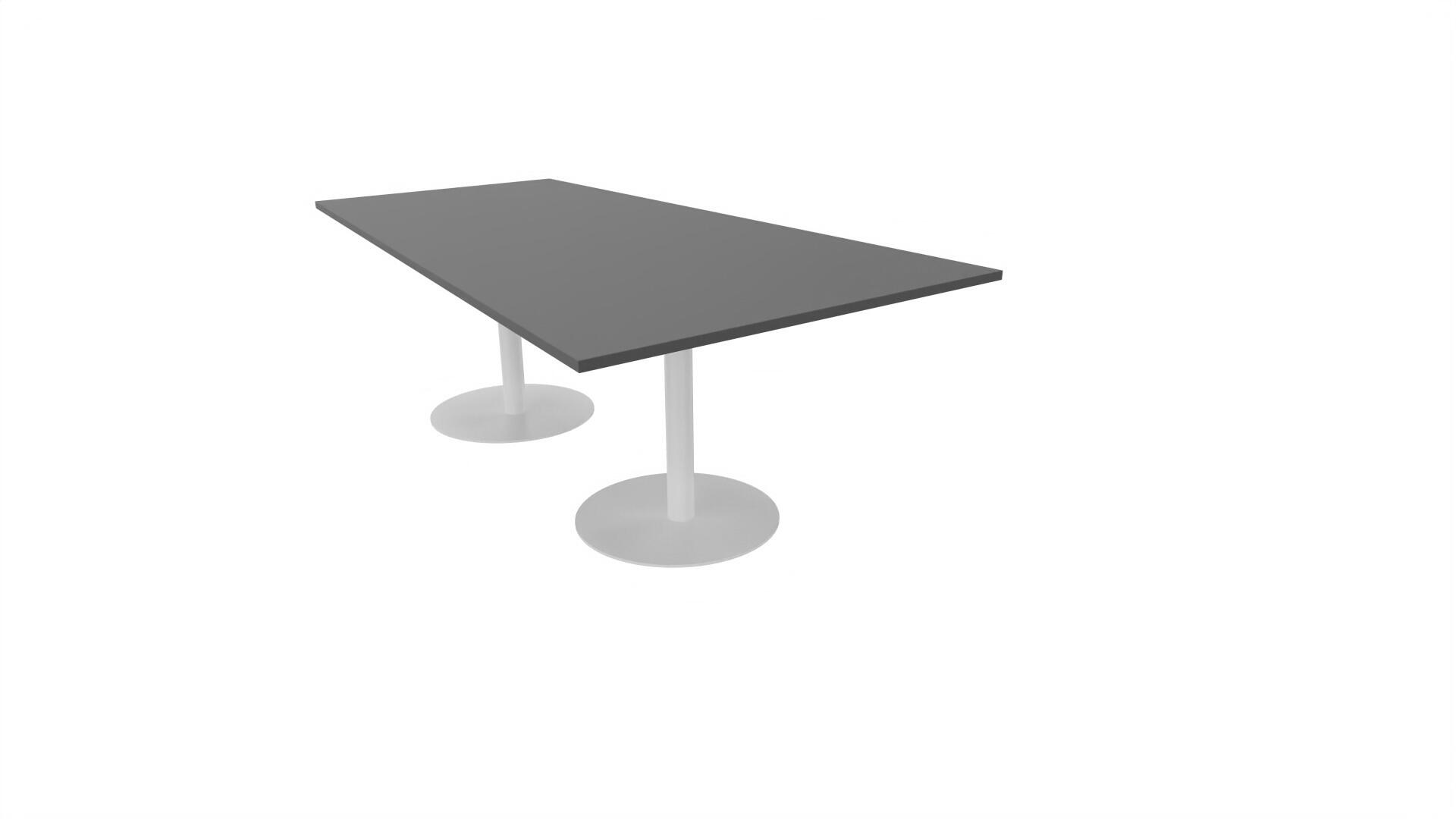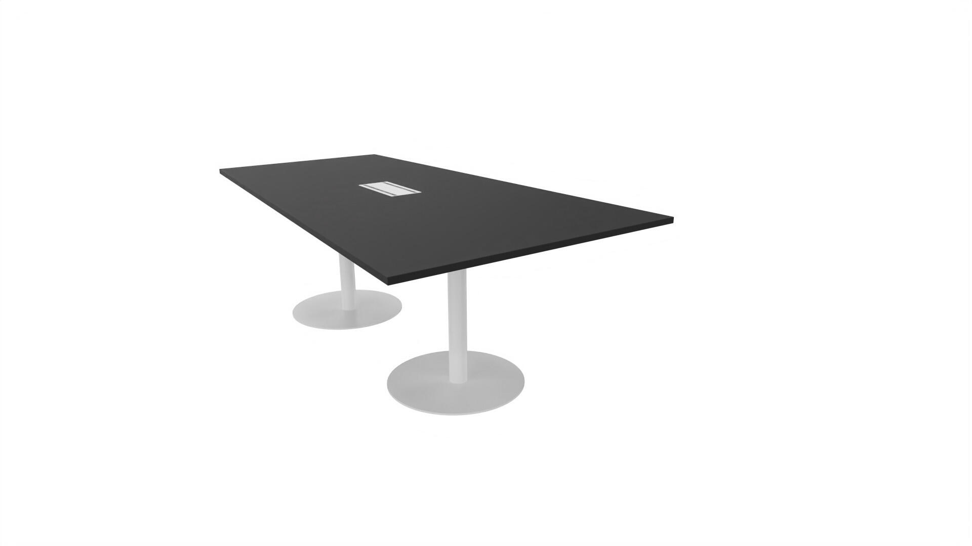Ett konferensbord med rektangulär skiva, rak kant. Kärna av spånskiva klädd med laminat och ABS-kantband. Underrede pelarstativ med 2 ben, pelardiameter: ø 10,2 cm, fotdiamenter: ø 72 cm. Förutom vanligt standardlaminat, finns bordet även med ett svart nanolaminat som har en yta som är matt och resistent mot fingeravtryck. Som tillval kan du även välja att få två st mediaboxar (32x15 cm) infällda i bordet. Varje mediabox består av 2x 230V eluttag, 1x USB och 1x HDMI.