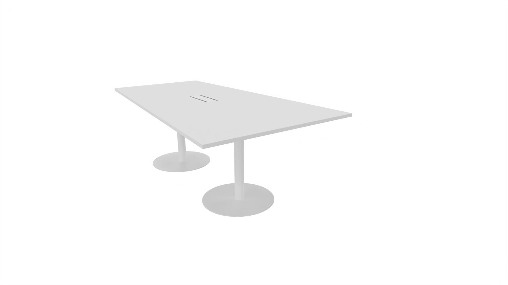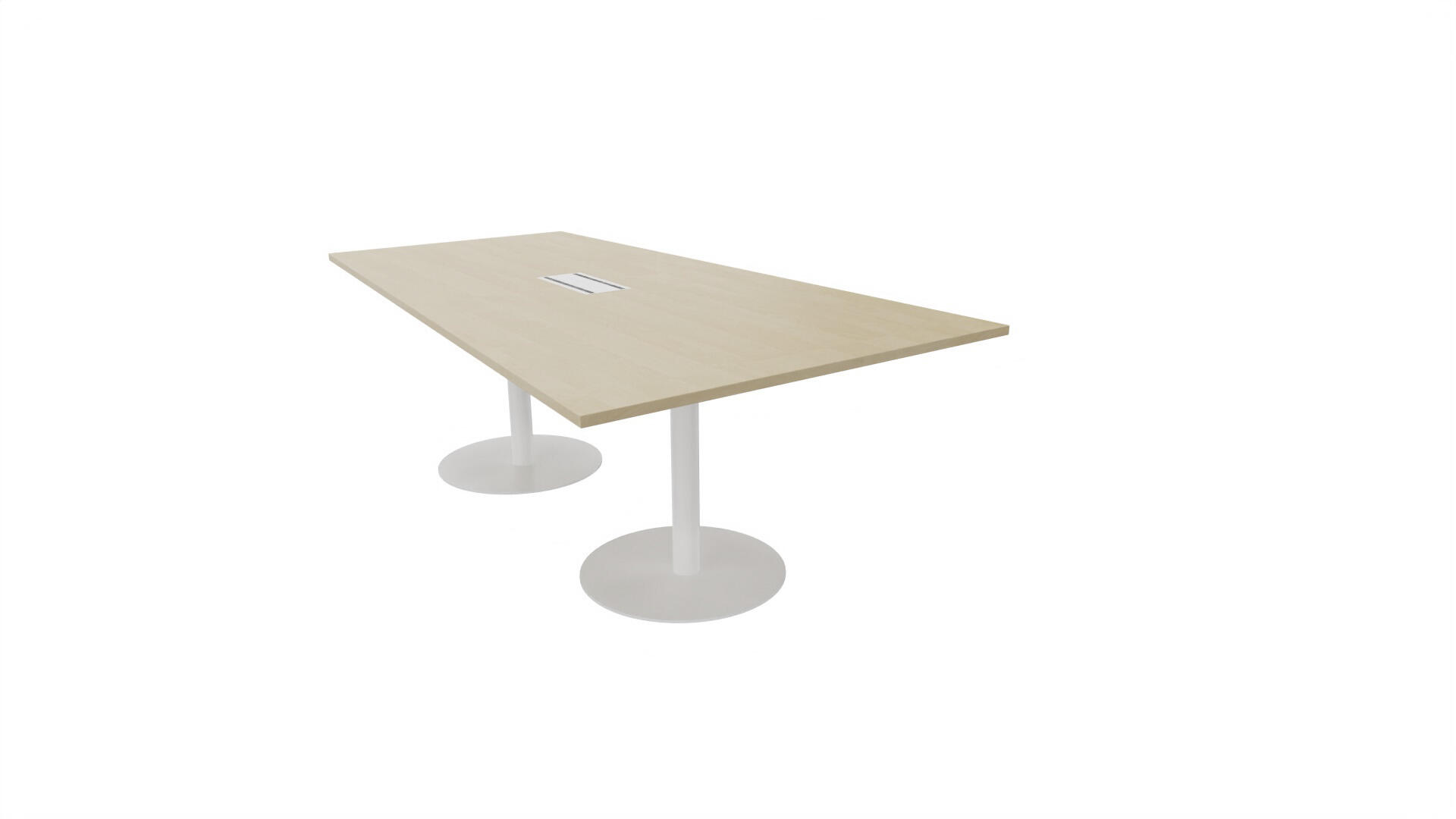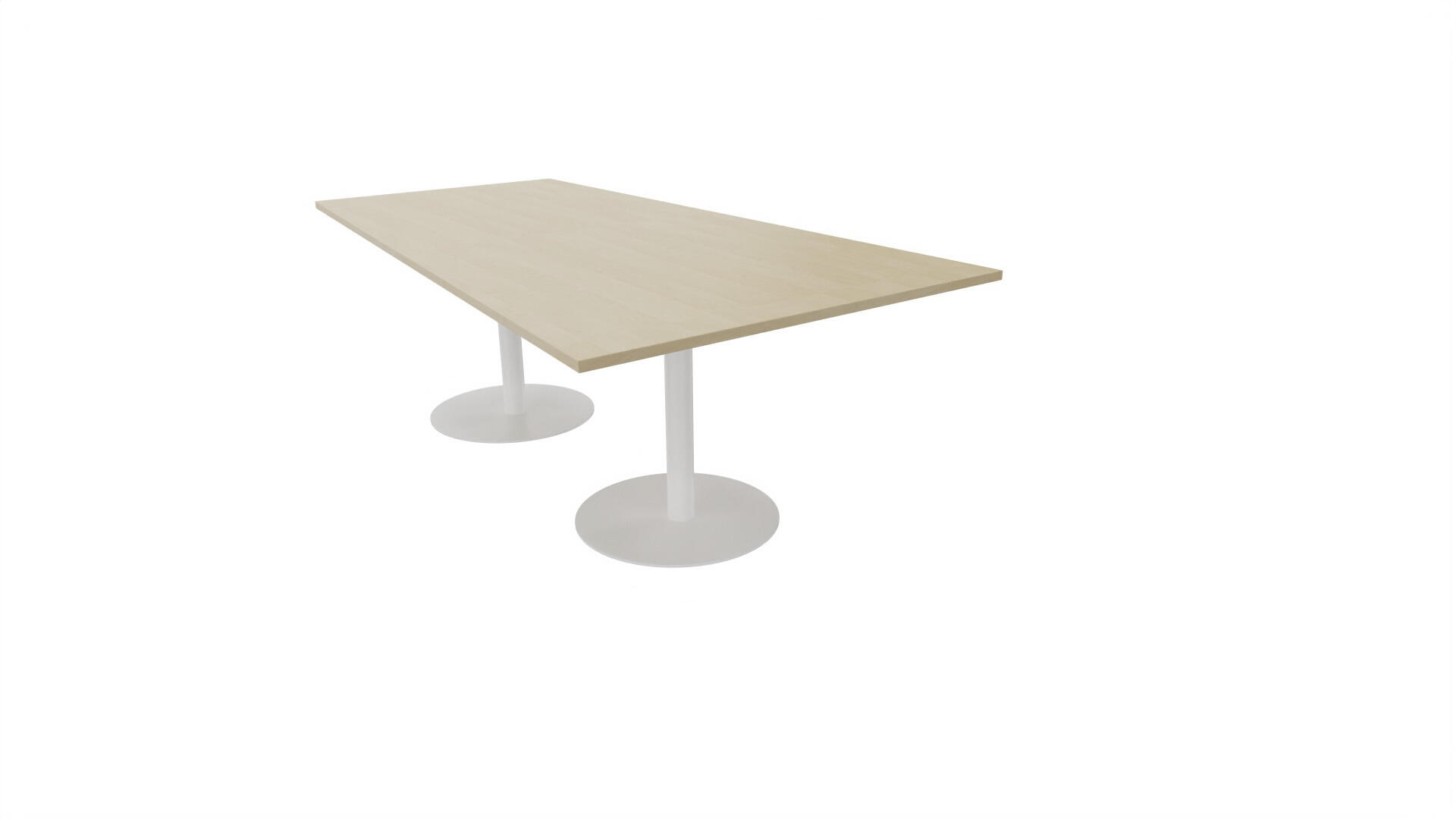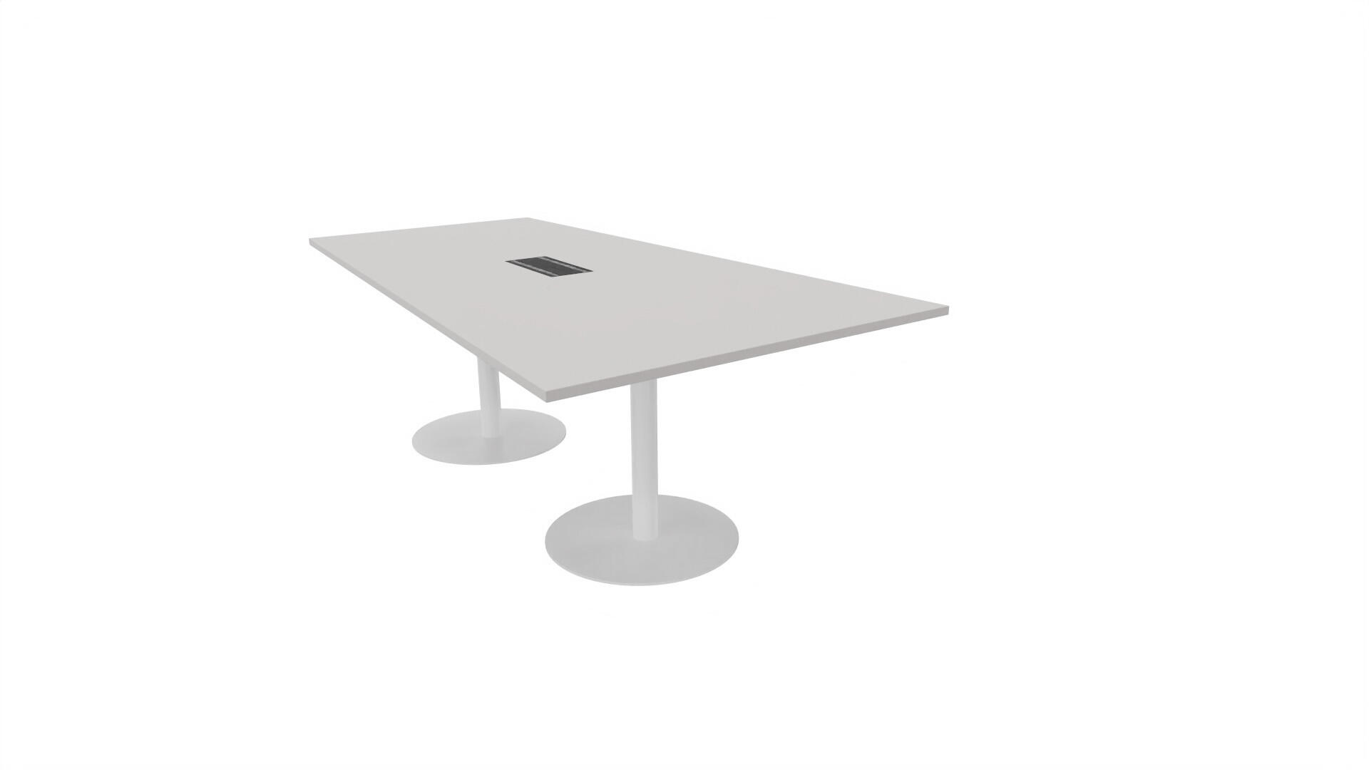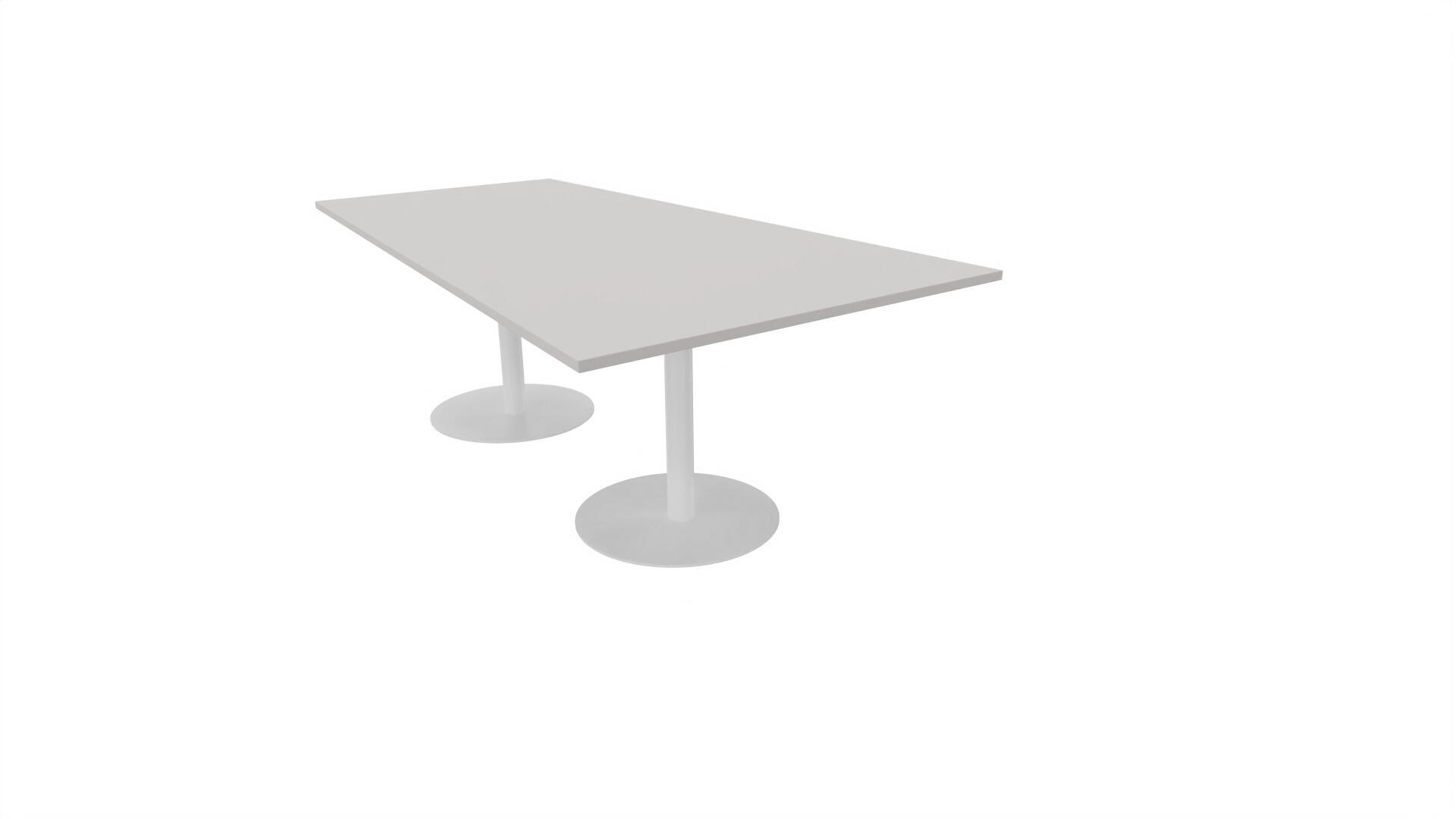 Ett konferensbord med rektangulär skiva, rak kant. Kärna av spånskiva klädd med laminat och ABS-kantband. Underrede pelarstativ med 2 ben, pelardiameter: ø 10,2 cm, fotdiamenter: ø 72 cm. Förutom vanligt standardlaminat, finns bordet även med ett svart nanolaminat som har en yta som är matt och resistent mot fingeravtryck. Som tillval kan du även välja att få två st mediaboxar (32x15 cm) infällda i bordet. Varje mediabox består av 2x 230V eluttag, 1x USB och 1x HDMI.