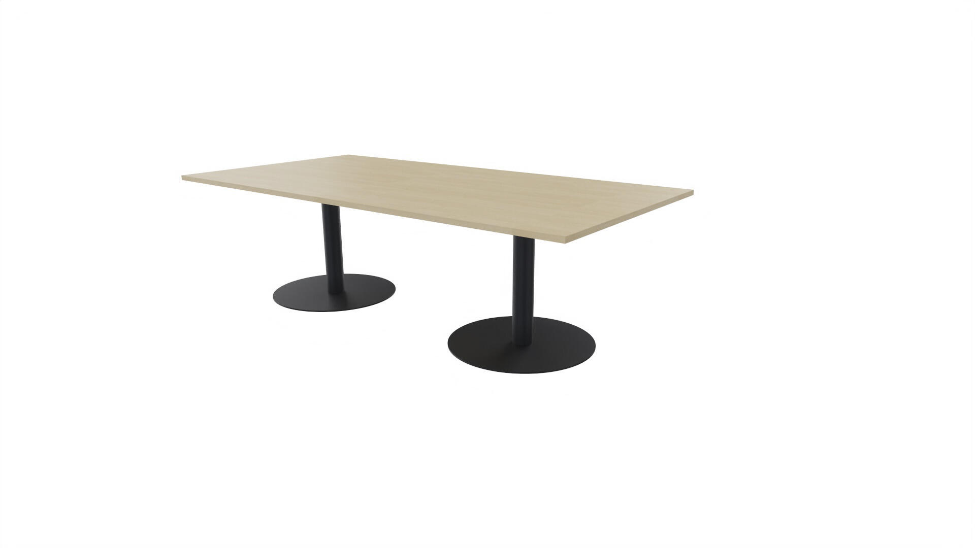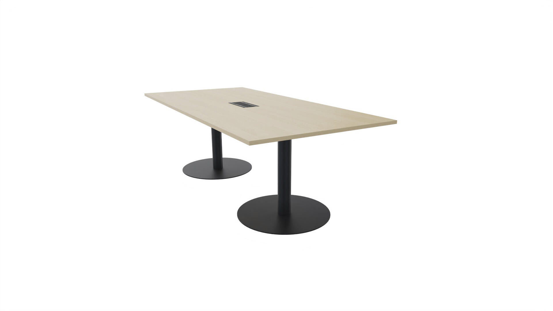 Ett konferensbord med rektangulär skiva, rak kant. Kärna av spånskiva klädd med laminat och ABS-kantband. Underrede pelarstativ med 2 ben, pelardiameter: ø 10,2 cm, fotdiamenter: ø 72 cm. Förutom vanligt standardlaminat, finns bordet även med ett svart nanolaminat som har en yta som är matt och resistent mot fingeravtryck. Som tillval kan du även välja att få två st mediaboxar (32x15 cm) infällda i bordet. Varje mediabox består av 2x 230V eluttag, 1x USB och 1x HDMI.