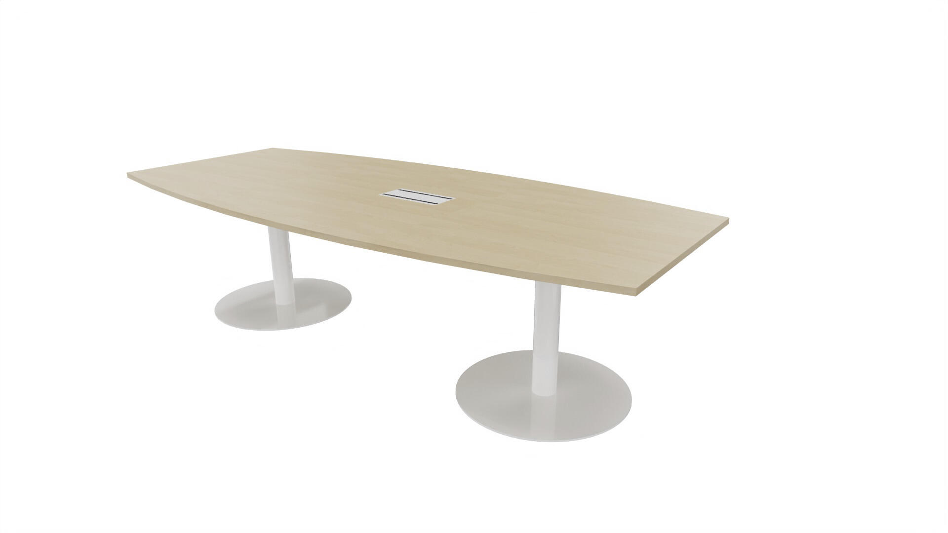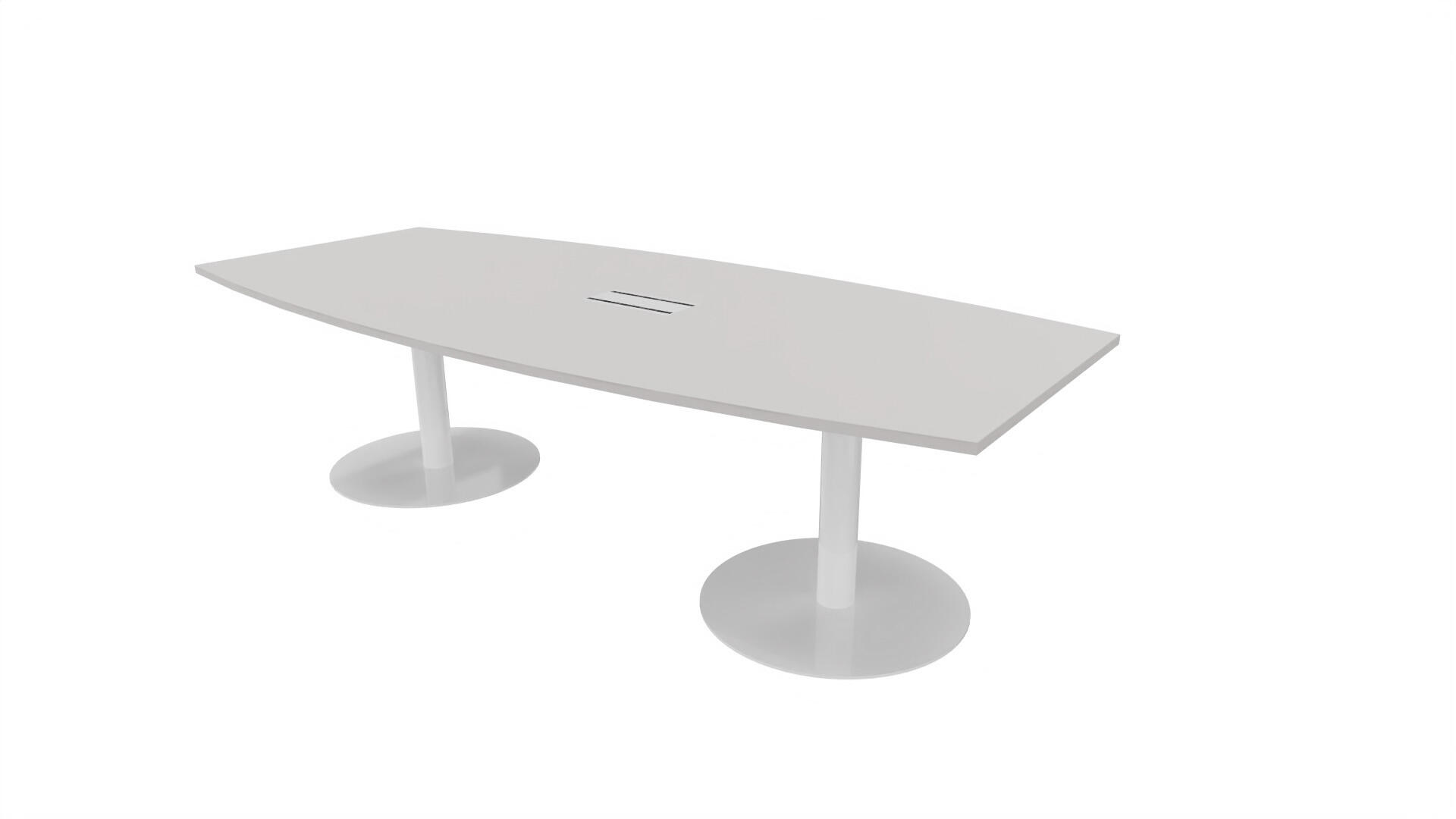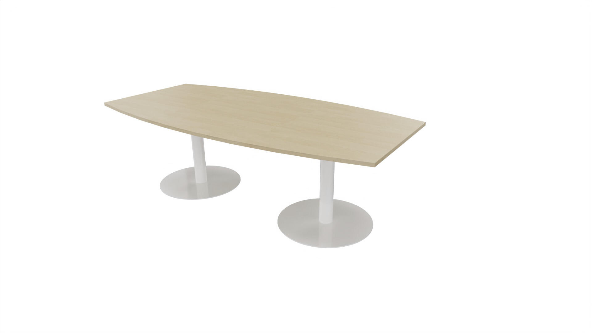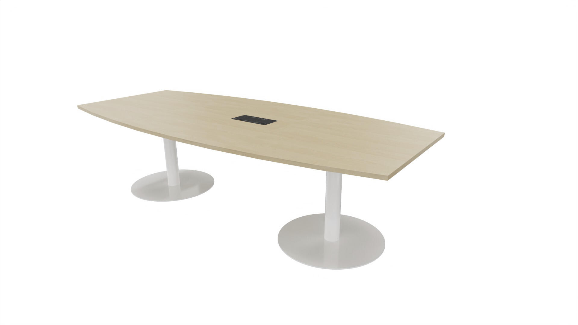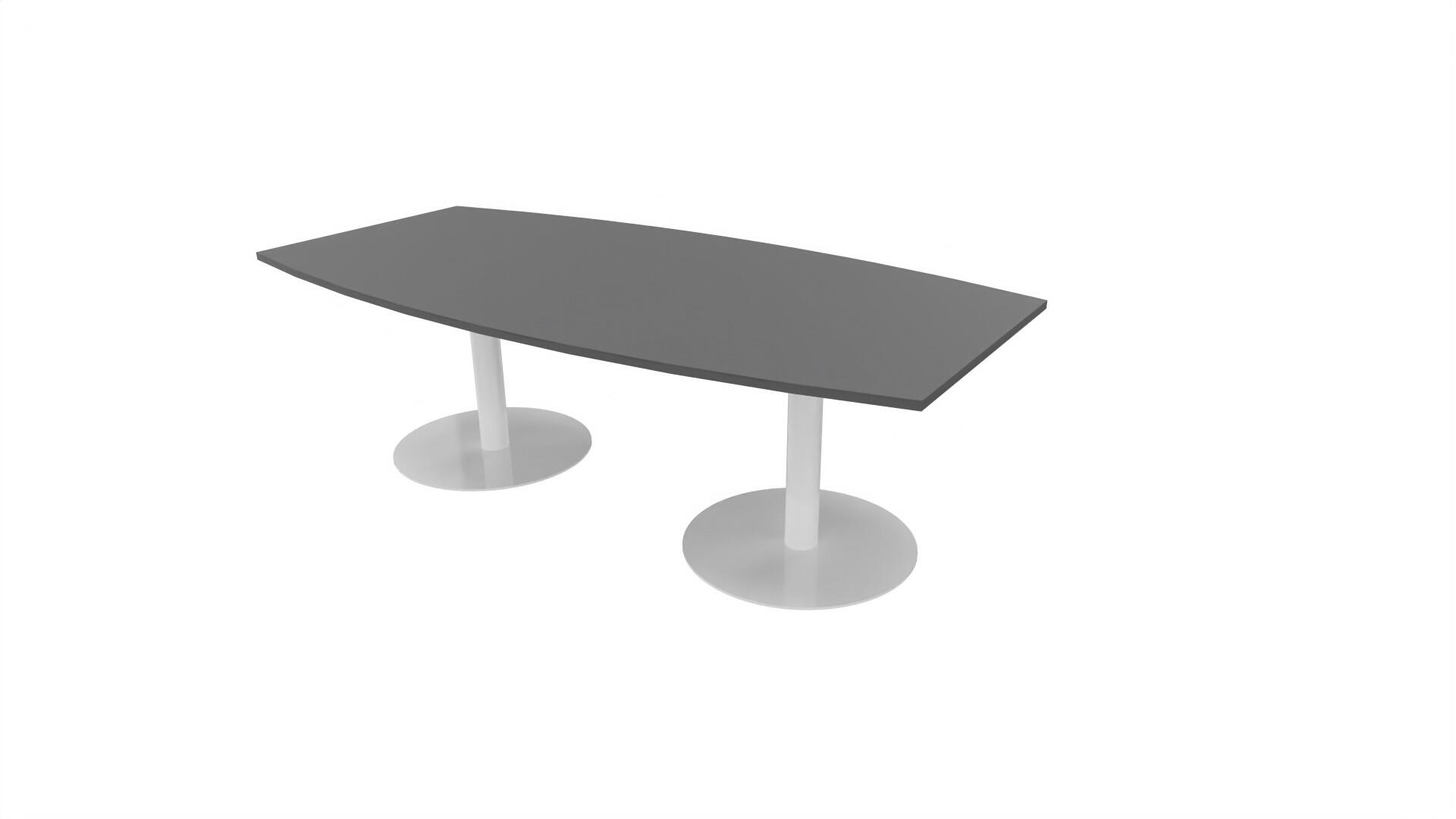 Ett konferensbord med en skiva formad som en avkapad ellips. Kärna av spånskiva klädd med laminat och ABS-kantband. Underrede pelarstativ med 2 ben, pelardiameter: ø 10,2 cm, fotdiamenter: ø 72 cm. Förutom vanligt standardlaminat, finns bordet även med ett svart nanolaminat som har en yta som är matt och resistent mot fingeravtryck. Som tillval kan du även välja att få en mediabox (32x15 cm) infälld i bordet. Mediaboxen består av 2x 230V eluttag, 1x USB och 1x HDMI.