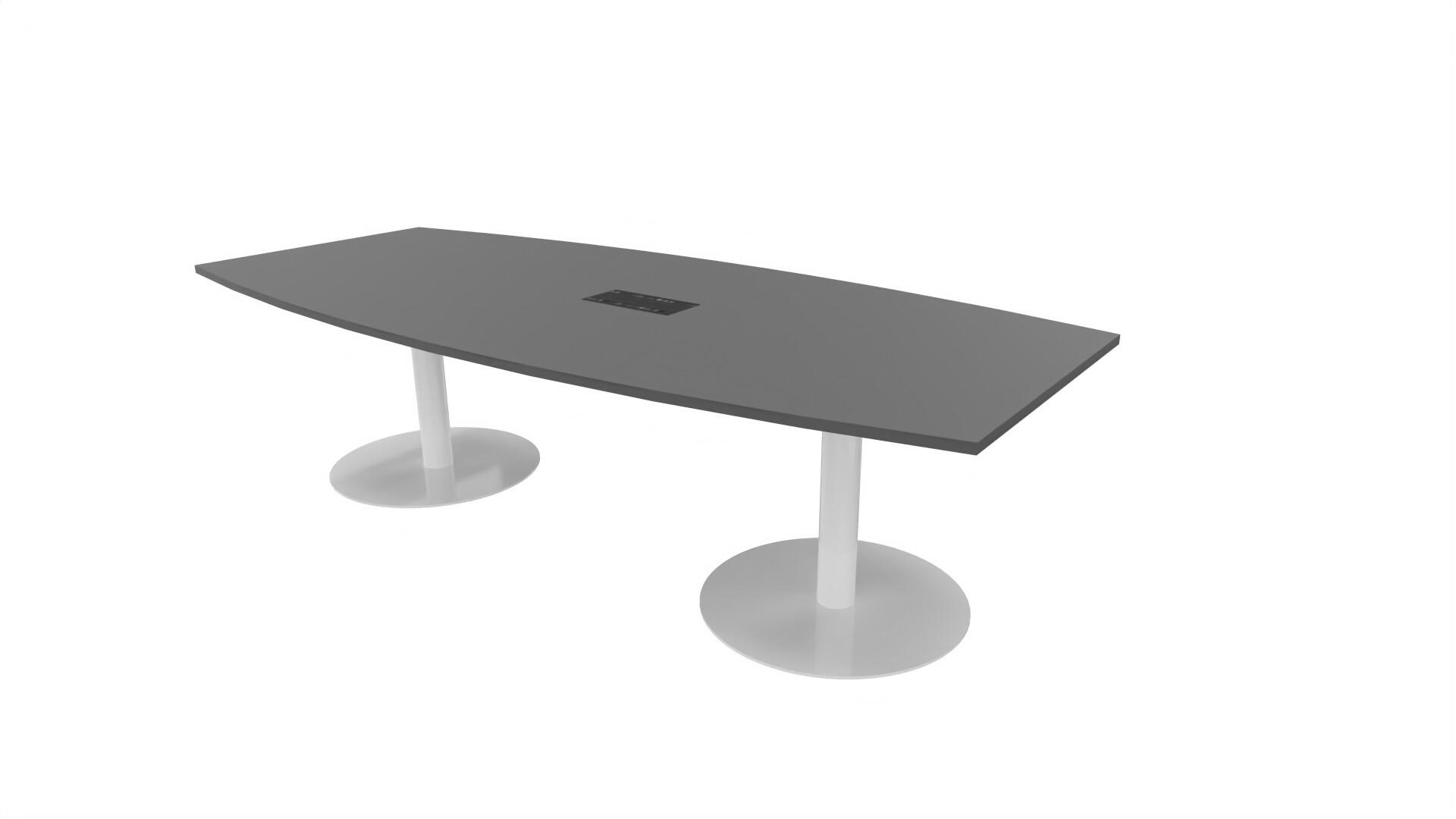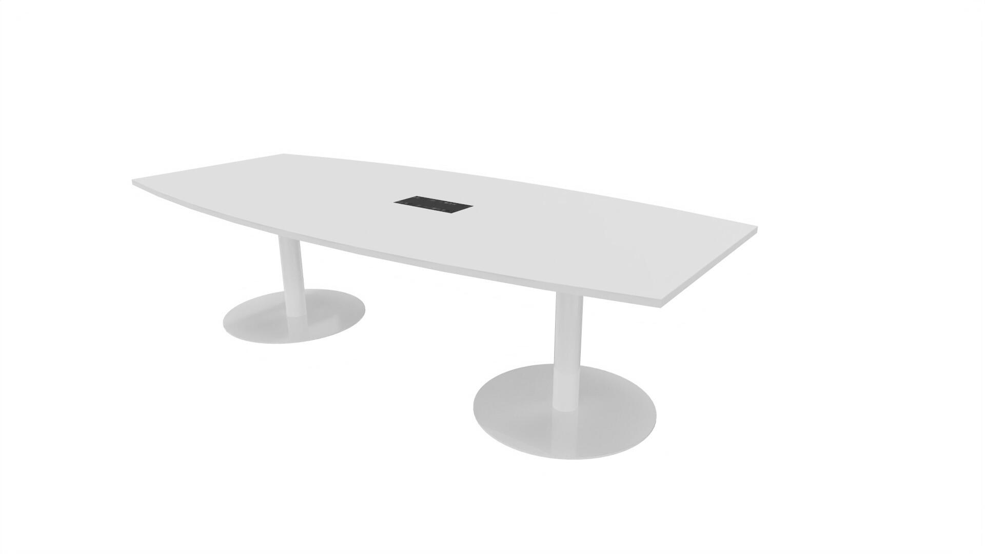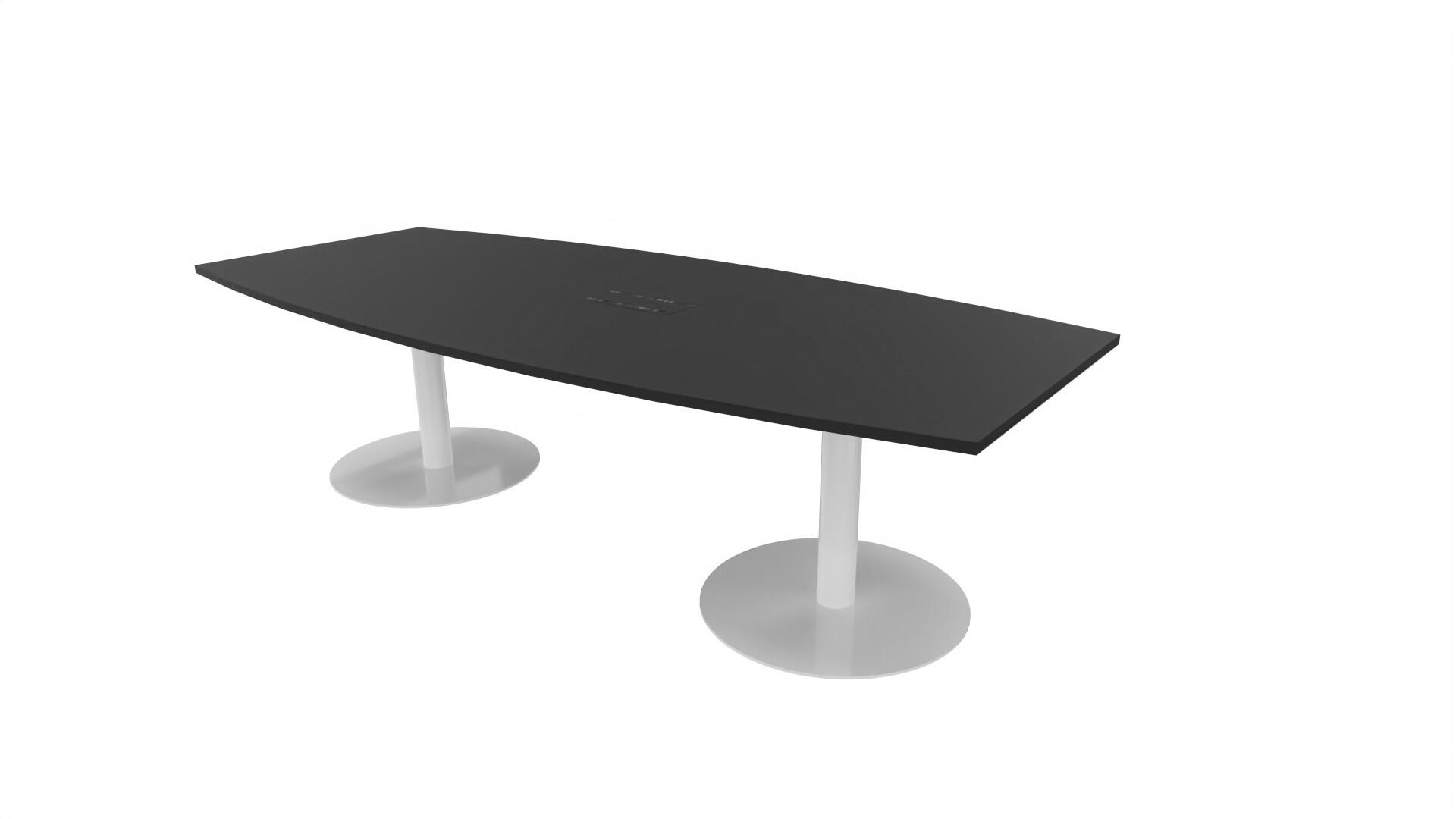 Ett konferensbord med en skiva formad som en avkapad ellips. Kärna av spånskiva klädd med laminat och ABS-kantband. Underrede pelarstativ med 3 ben, pelardiameter: ø 10,2 cm, fotdiamenter: ø 72 cm. Förutom vanligt standardlaminat, finns bordet även med ett svart nanolaminat som har en yta som är matt och resistent mot fingeravtryck. Som tillval kan du även välja att få två st mediaboxar (32x15 cm) infällda i bordet. Varje mediabox består av 2x 230V eluttag, 1x USB och 1x HDMI.