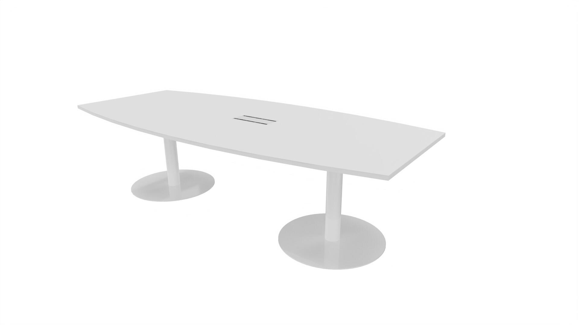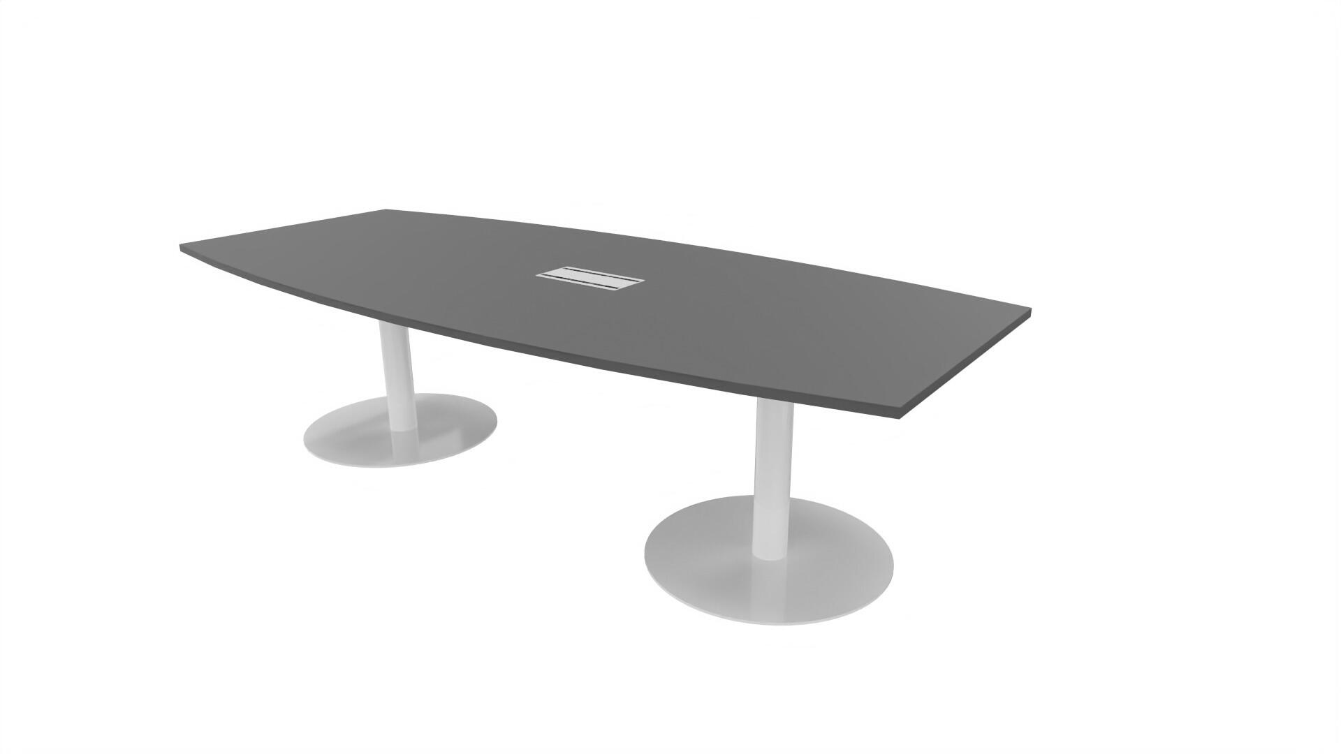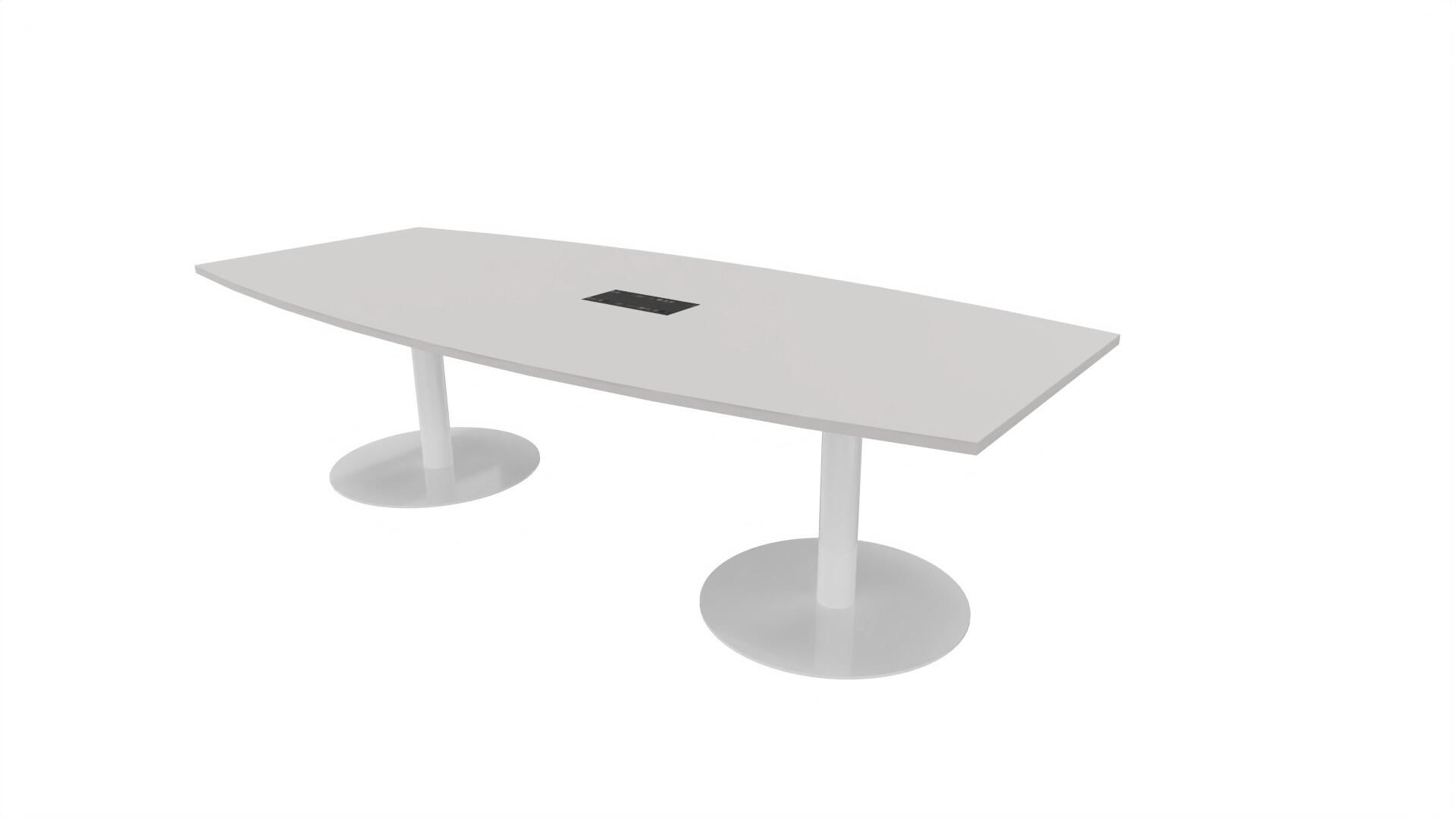 Ett konferensbord med en skiva formad som en avkapad ellips. Kärna av spånskiva klädd med laminat och ABS-kantband. Underrede pelarstativ med 3 ben, pelardiameter: ø 10,2 cm, fotdiamenter: ø 72 cm. Förutom vanligt standardlaminat, finns bordet även med ett svart nanolaminat som har en yta som är matt och resistent mot fingeravtryck. Som tillval kan du även välja att få två st mediaboxar (32x15 cm) infällda i bordet. Varje mediabox består av 2x 230V eluttag, 1x USB och 1x HDMI.