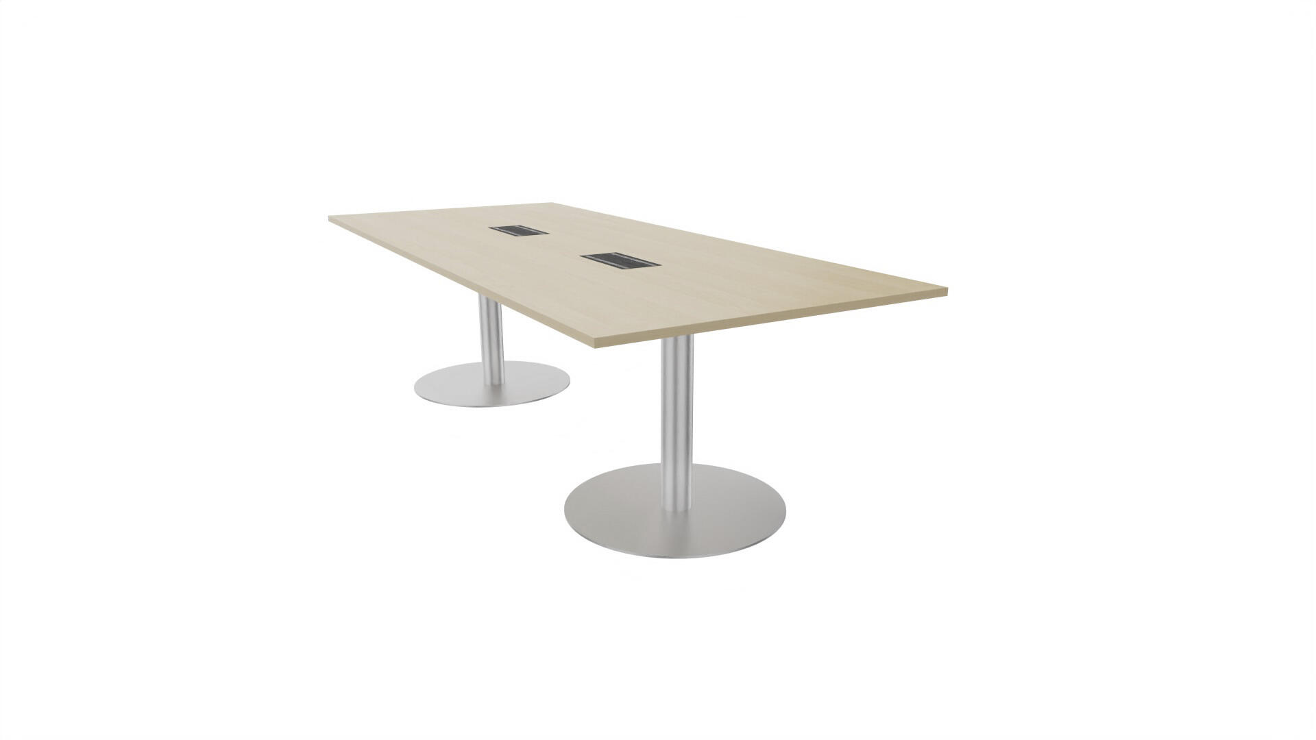 Ett konferensbord med rektangulär skiva, rak kant. Kärna av spånskiva klädd med laminat och ABS-kantband. Underrede pelarstativ med 2 ben, pelardiameter: ø 10,2 cm, fotdiamenter: ø 72 cm. Förutom vanligt standardlaminat, finns bordet även med ett svart nanolaminat som har en yta som är matt och resistent mot fingeravtryck. Som tillval kan du även välja att få två st mediaboxar (32x15 cm) infällda i bordet. Varje mediabox består av 2x 230V eluttag, 1x USB och 1x HDMI.