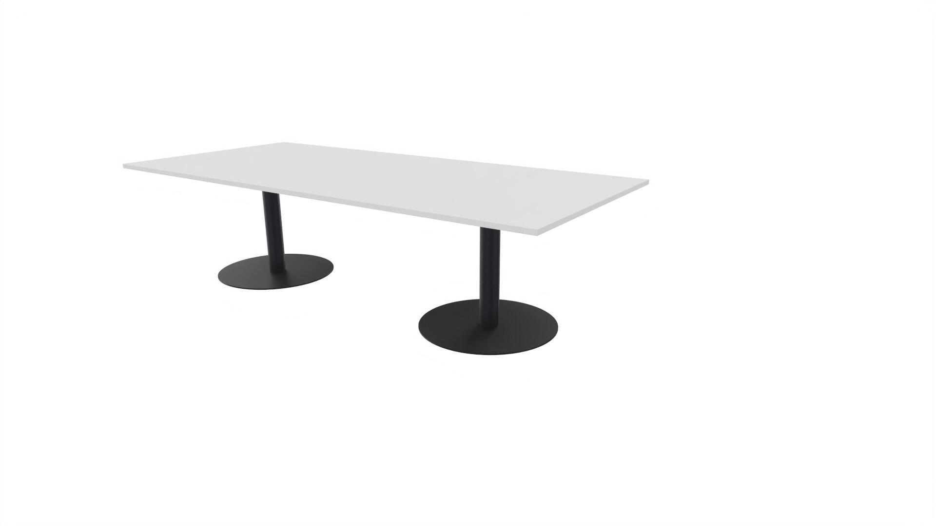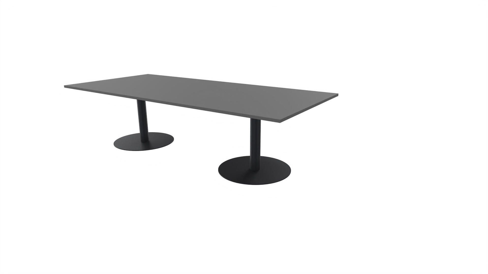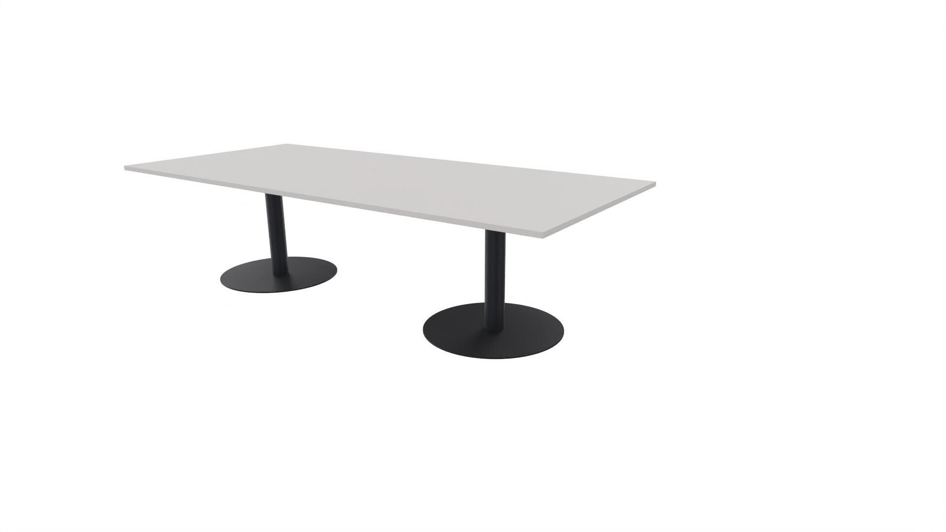 Ett konferensbord med rektangulär skiva, rak kant. Kärna av spånskiva klädd med laminat och ABS-kantband. Underrede pelarstativ med 2 ben, pelardiameter: ø 10,2 cm, fotdiamenter: ø 72 cm. Förutom vanligt standardlaminat, finns bordet även med ett svart nanolaminat som har en yta som är matt och resistent mot fingeravtryck. Som tillval kan du även välja att få två st mediaboxar (32x15 cm) infällda i bordet. Varje mediabox består av 2x 230V eluttag, 1x USB och 1x HDMI.