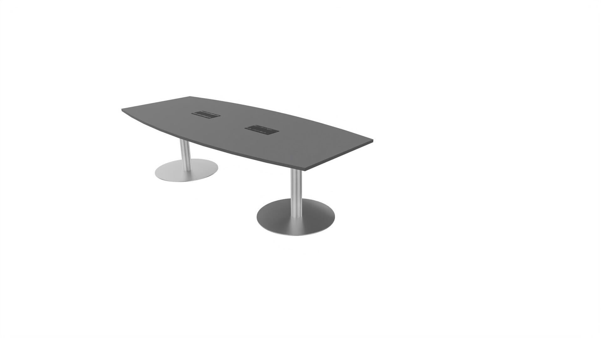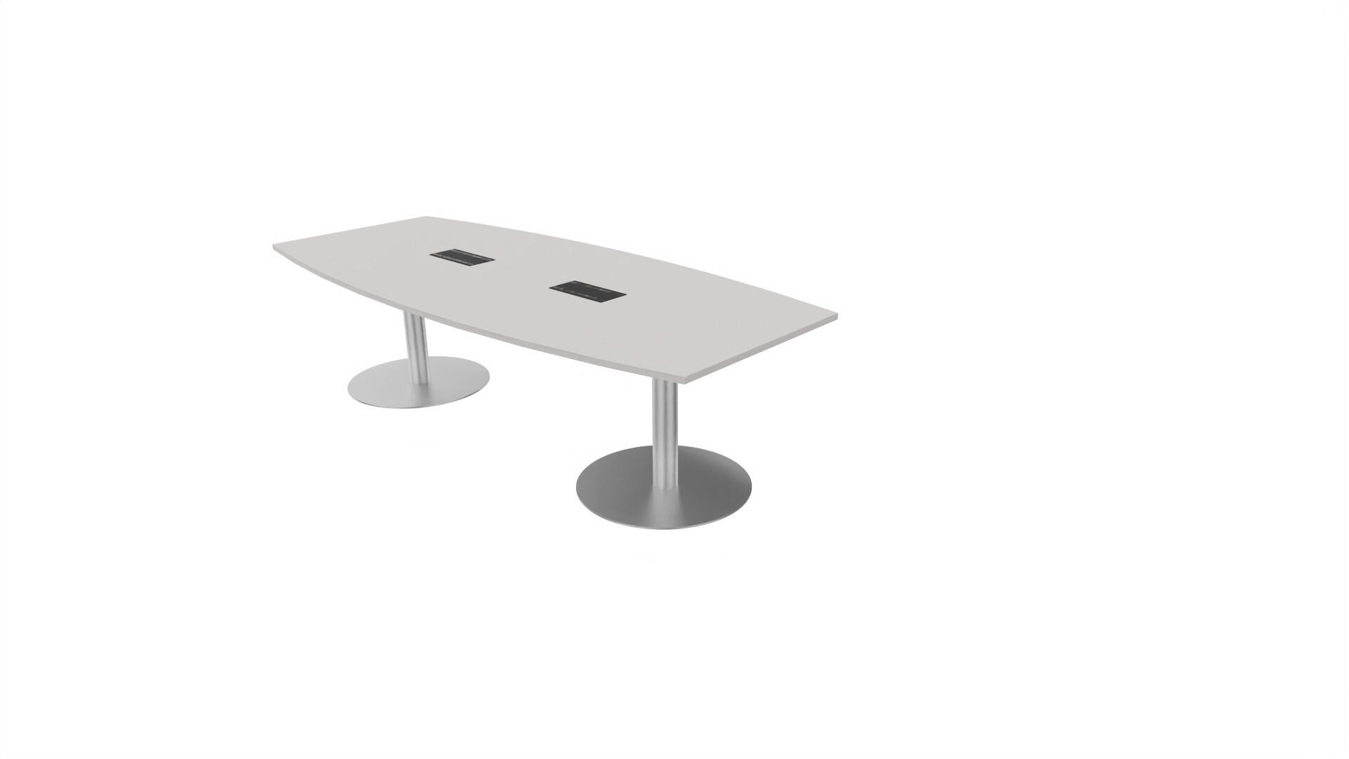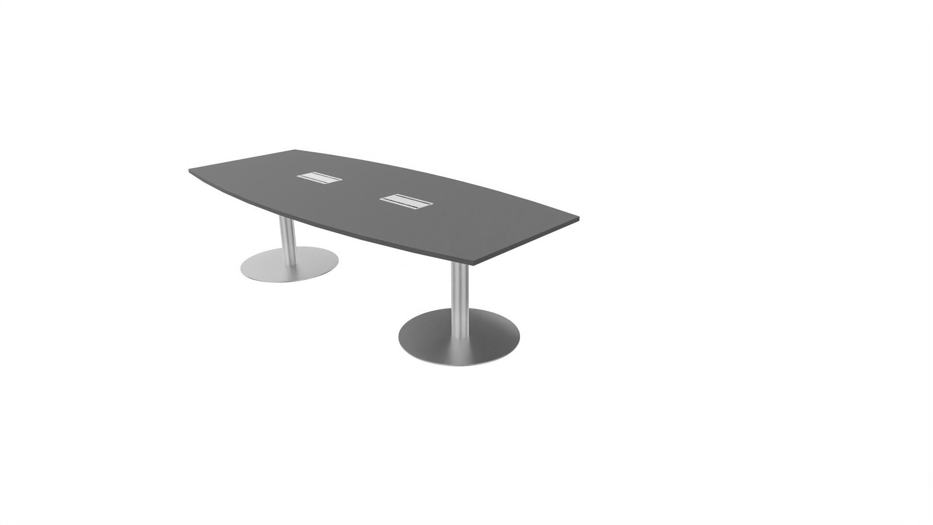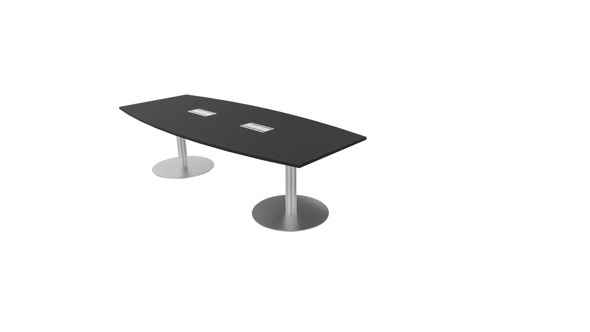 Ett konferensbord med en skiva formad som en avkapad ellips. Kärna av spånskiva klädd med laminat och ABS-kantband. Underrede T-stativ med 3 ben, fotlängd: 90 cm. Förutom vanligt standardlaminat, finns bordet även med ett svart nanolaminat som har en yta som är matt och resistent mot fingeravtryck. Som tillval kan du även välja att få två st mediaboxar (32x15 cm) infällda i bordet. Varje mediabox består av 2x 230V eluttag, 1x USB och 1x HDMI.