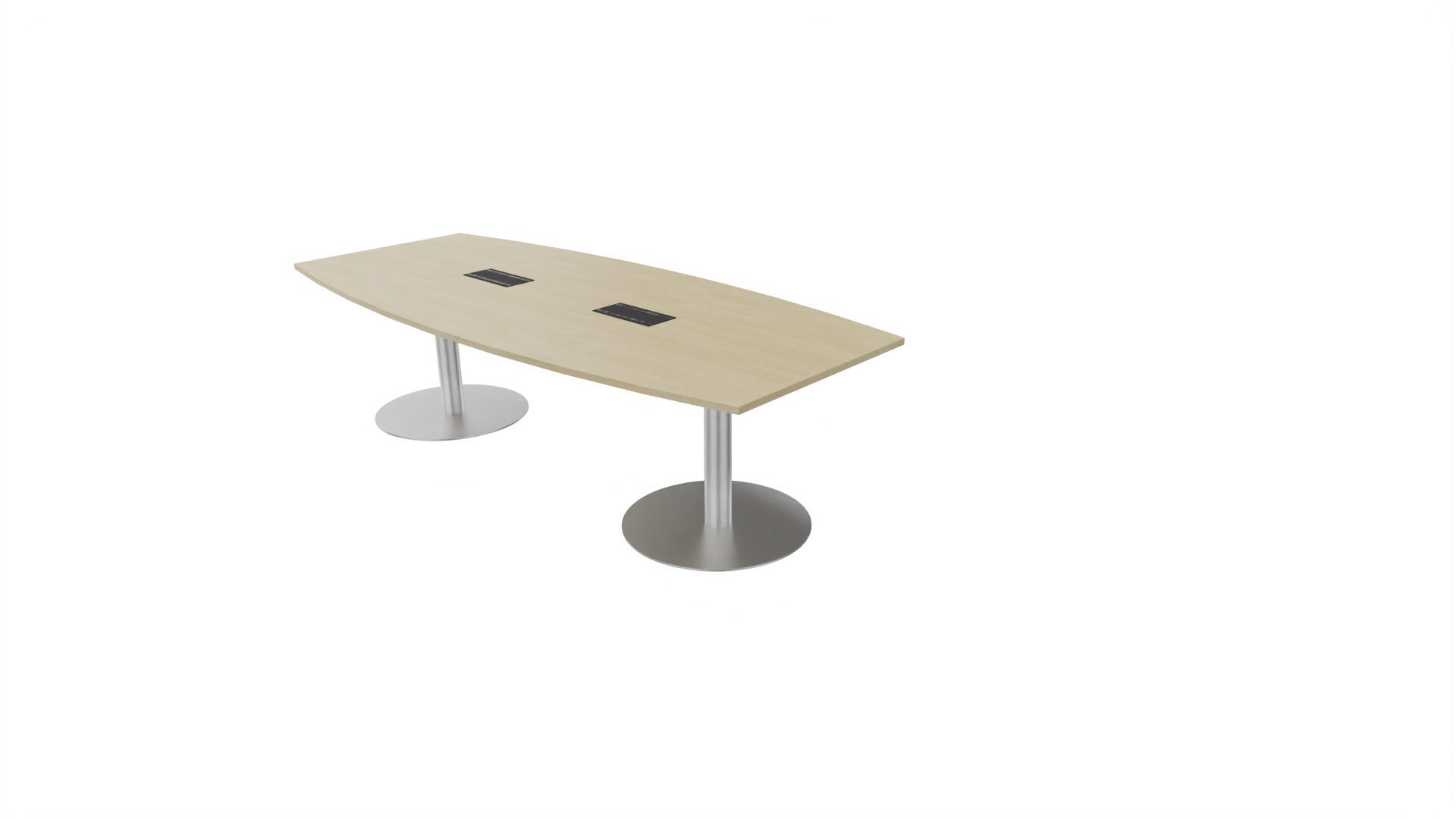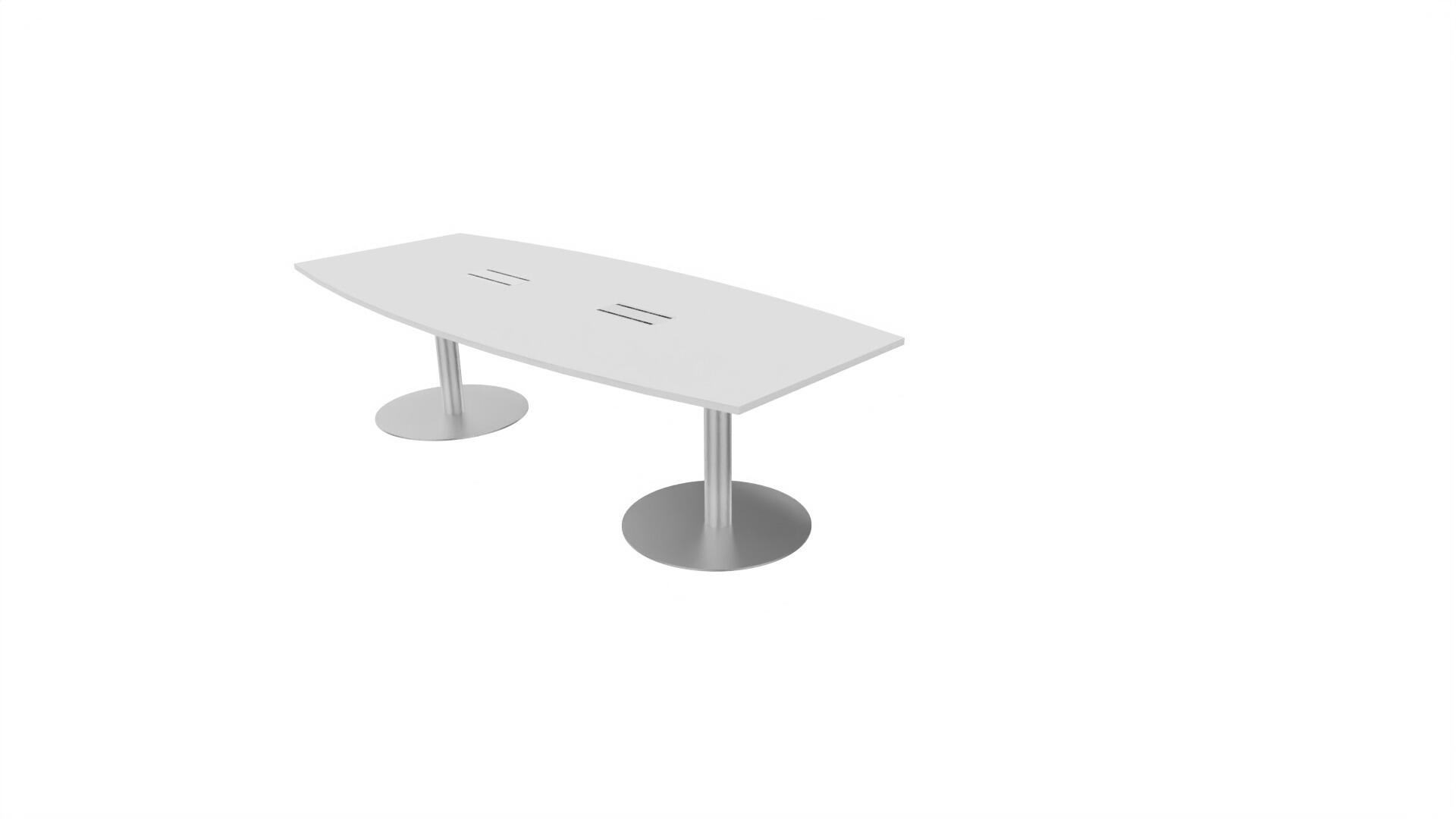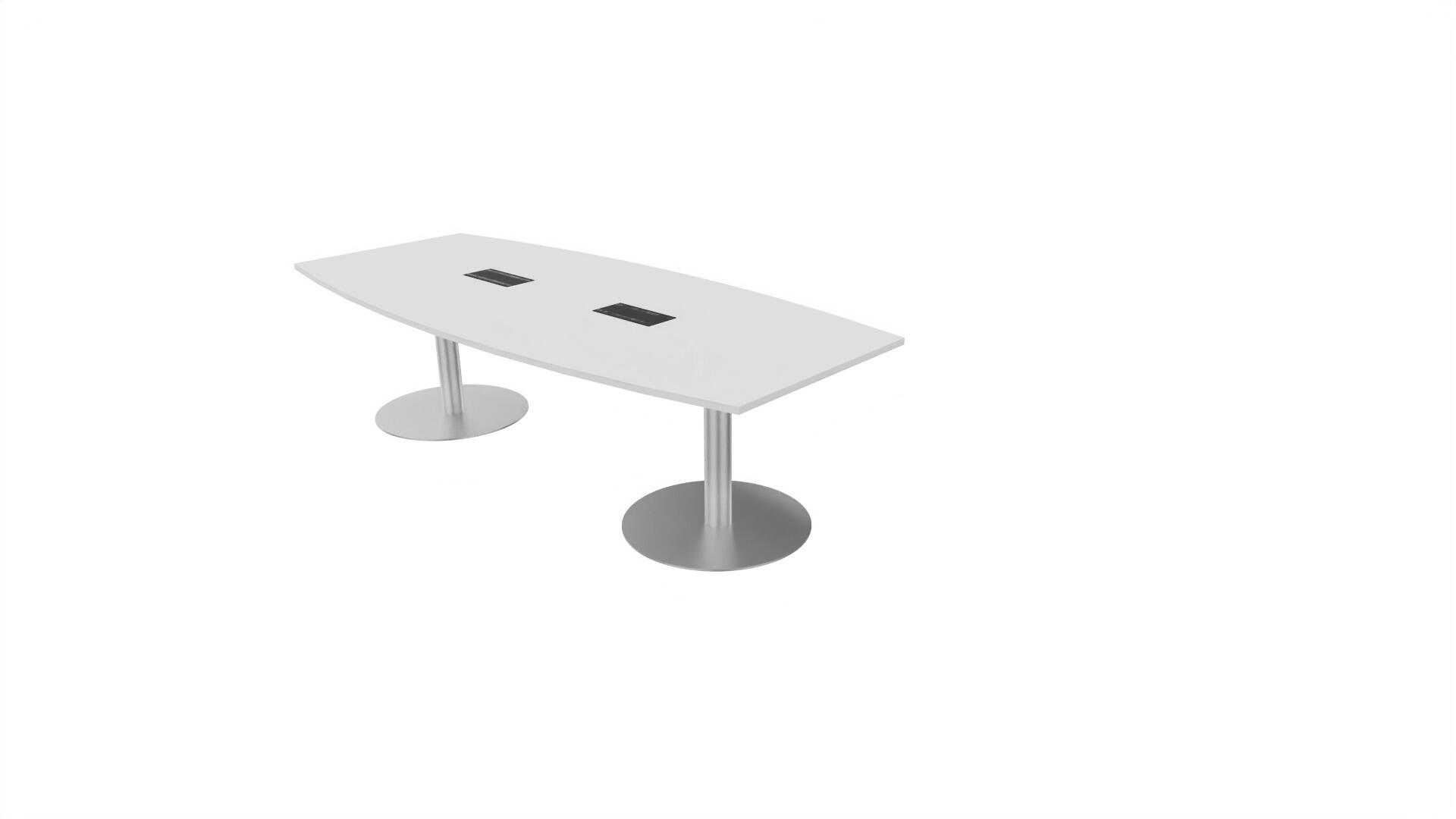 Ett konferensbord med en skiva formad som en avkapad ellips. Kärna av spånskiva klädd med laminat och ABS-kantband. Underrede T-stativ med 2 ben, fotlängd: 90 cm. Förutom vanligt standardlaminat, finns bordet även med ett svart nanolaminat som har en yta som är matt och resistent mot fingeravtryck. Som tillval kan du även välja att få en mediabox (32x15 cm) infälld i bordet. Mediaboxen består av 2x 230V eluttag, 1x USB och 1x HDMI.