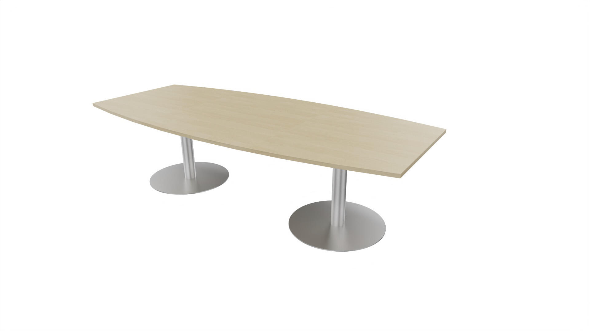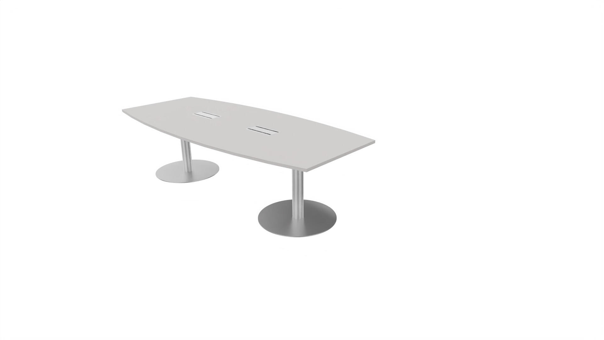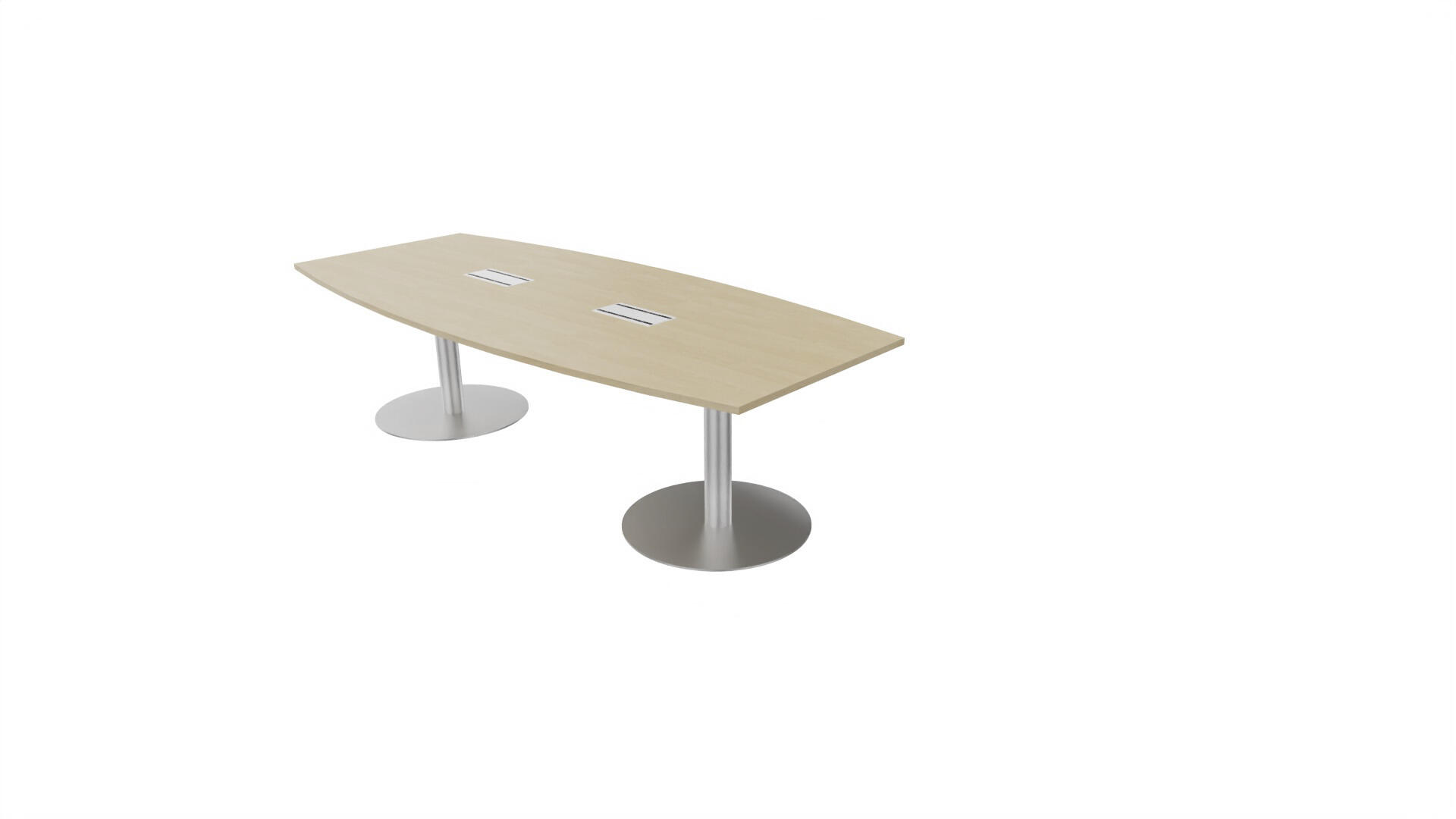 Ett konferensbord med en skiva formad som en avkapad ellips. Kärna av spånskiva klädd med laminat och ABS-kantband. Underrede T-stativ med 2 ben, fotlängd: 90 cm. Förutom vanligt standardlaminat, finns bordet även med ett svart nanolaminat som har en yta som är matt och resistent mot fingeravtryck. Som tillval kan du även välja att få en mediabox (32x15 cm) infälld i bordet. Mediaboxen består av 2x 230V eluttag, 1x USB och 1x HDMI.