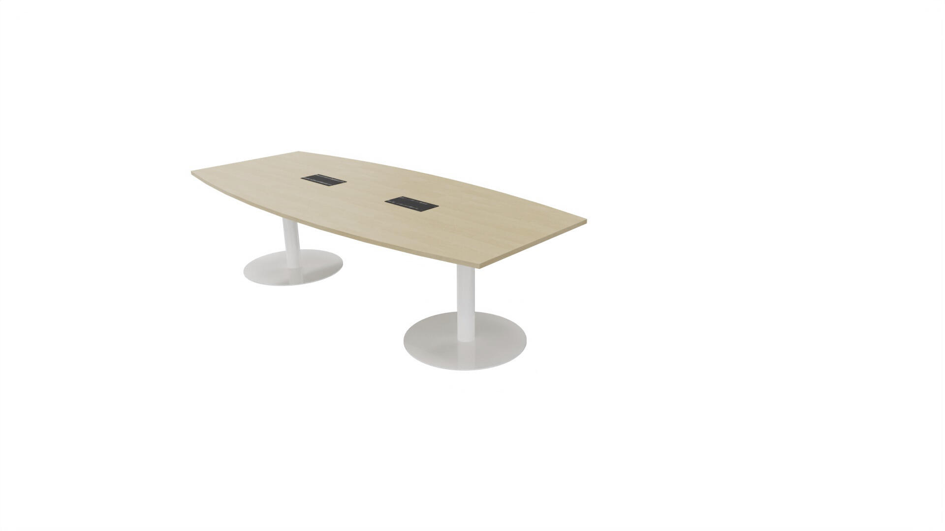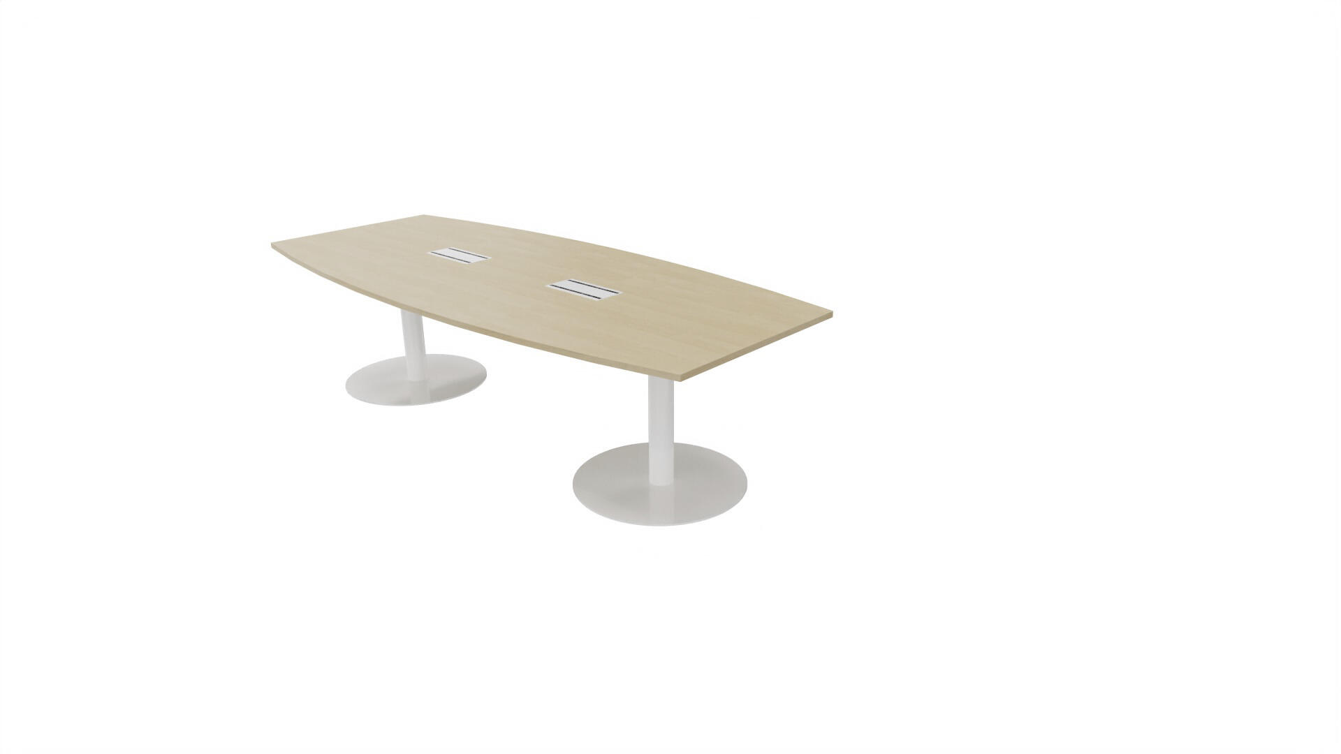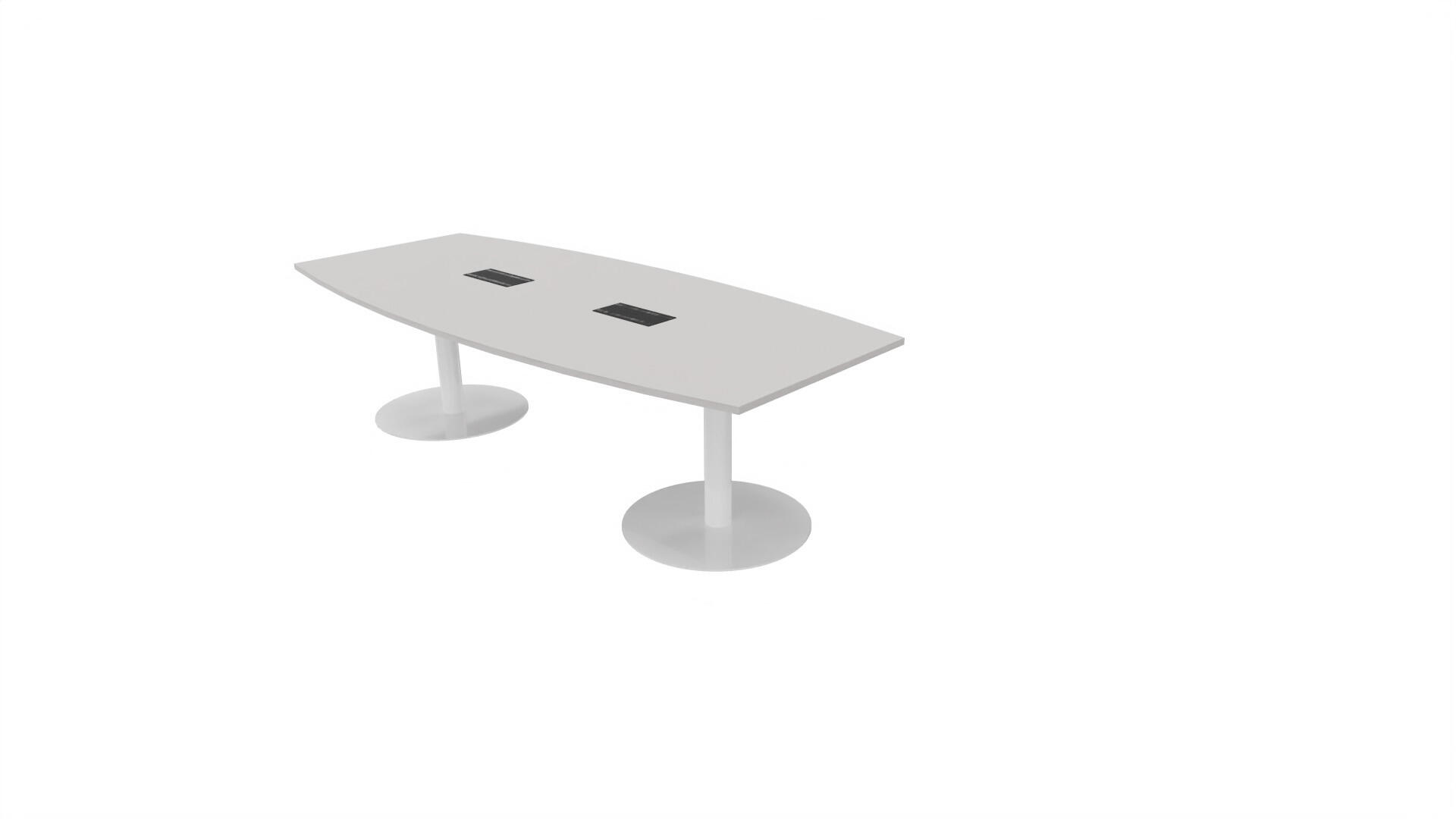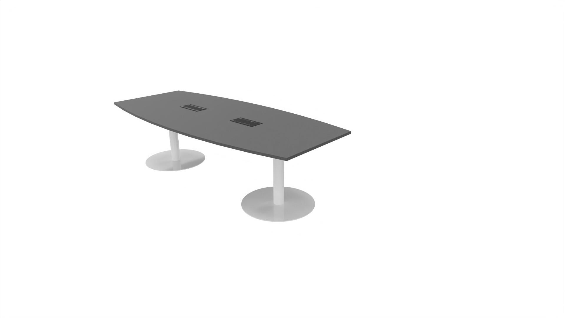 Ett konferensbord med en skiva formad som en avkapad ellips. Kärna av spånskiva klädd med laminat och ABS-kantband. Underrede pelarstativ med 2 ben, pelardiameter: ø 10,2 cm, fotdiamenter: ø 72 cm. Förutom vanligt standardlaminat, finns bordet även med ett svart nanolaminat som har en yta som är matt och resistent mot fingeravtryck. Som tillval kan du även välja att få en mediabox (32x15 cm) infälld i bordet. Mediaboxen består av 2x 230V eluttag, 1x USB och 1x HDMI.