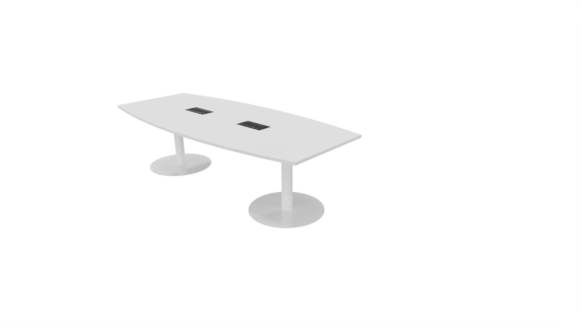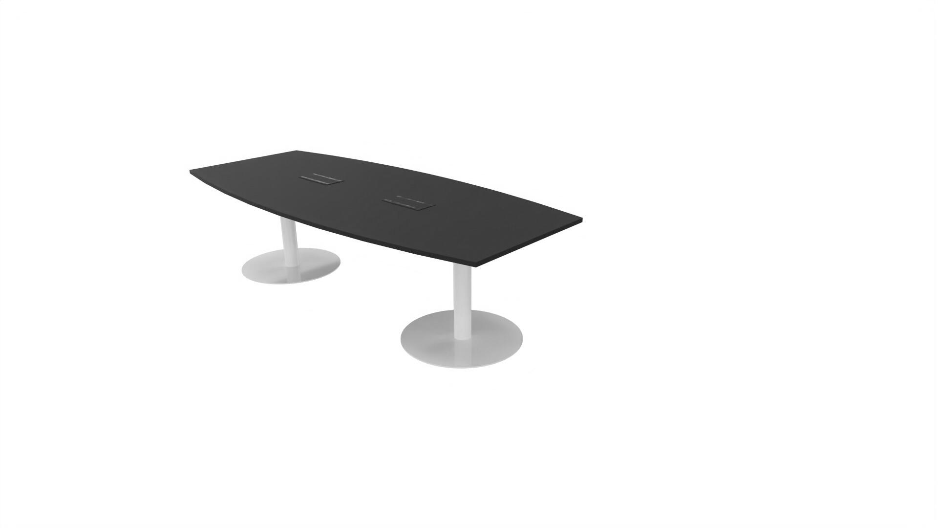 Ett konferensbord med en skiva formad som en avkapad ellips. Kärna av spånskiva klädd med laminat och ABS-kantband.Underrede pelarstativ med 2 ben, pelardiameter: ø 10,2 cm, fotdiamenter: ø 72 cm. Förutom vanligt standardlaminat, finns bordet även med ett svart nanolaminat som har en yta som är matt och resistent mot fingeravtryck. Som tillval kan du även välja att få två st mediaboxar (32x15 cm) infällda i bordet. Varje mediabox består av 2x 230V eluttag, 1x USB och 1x HDMI.