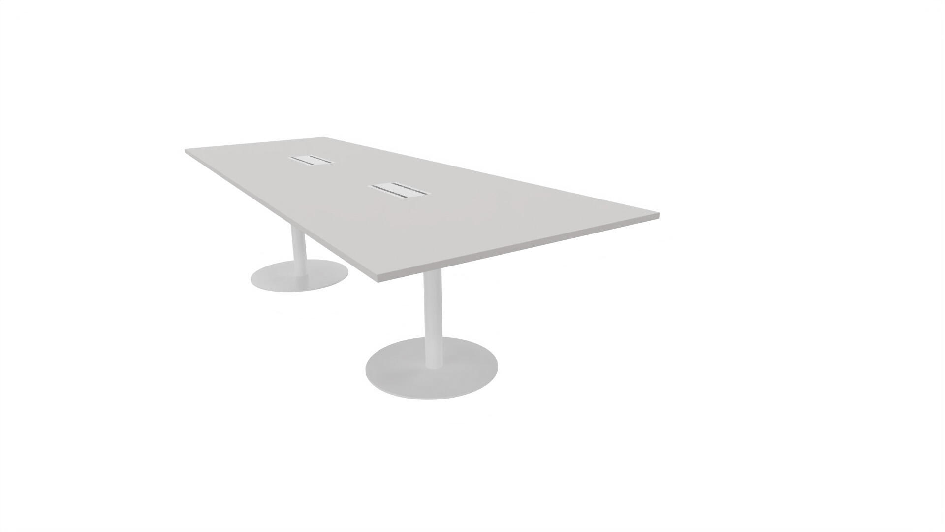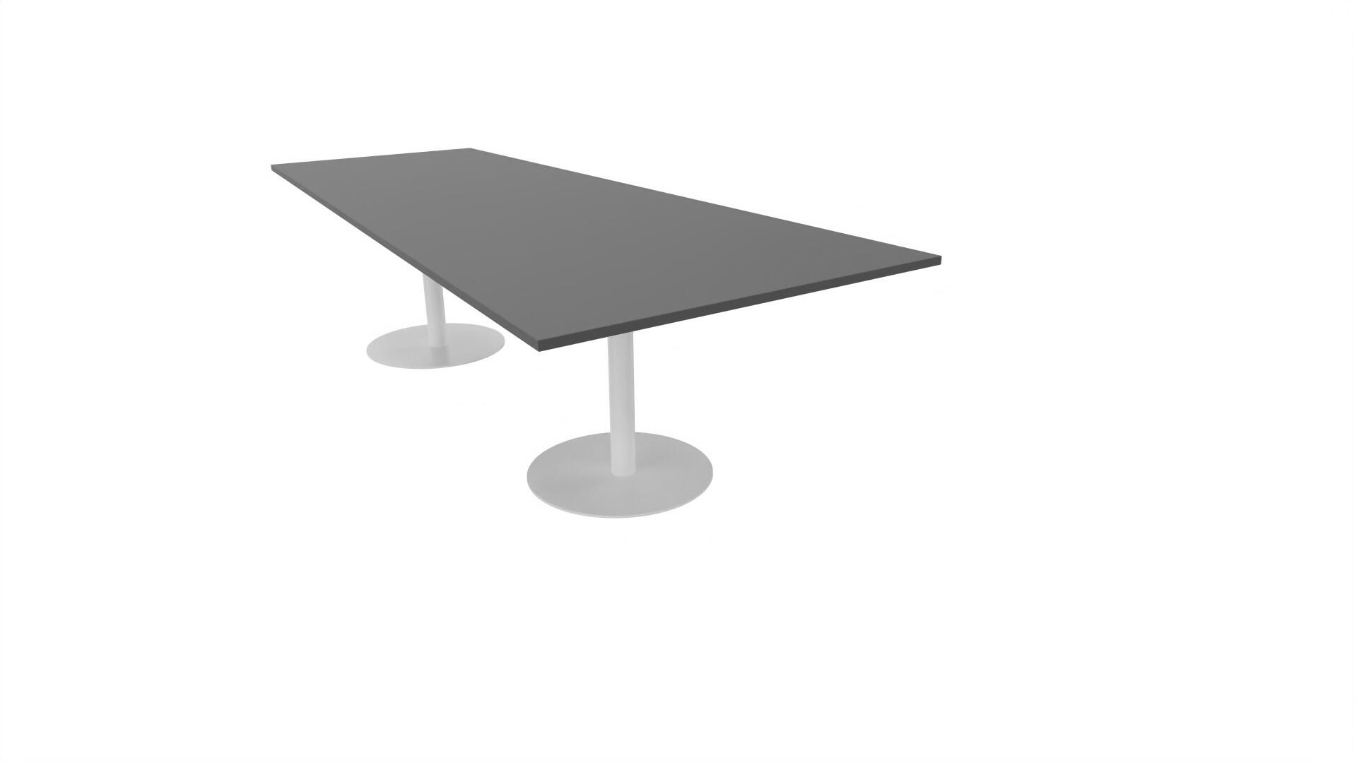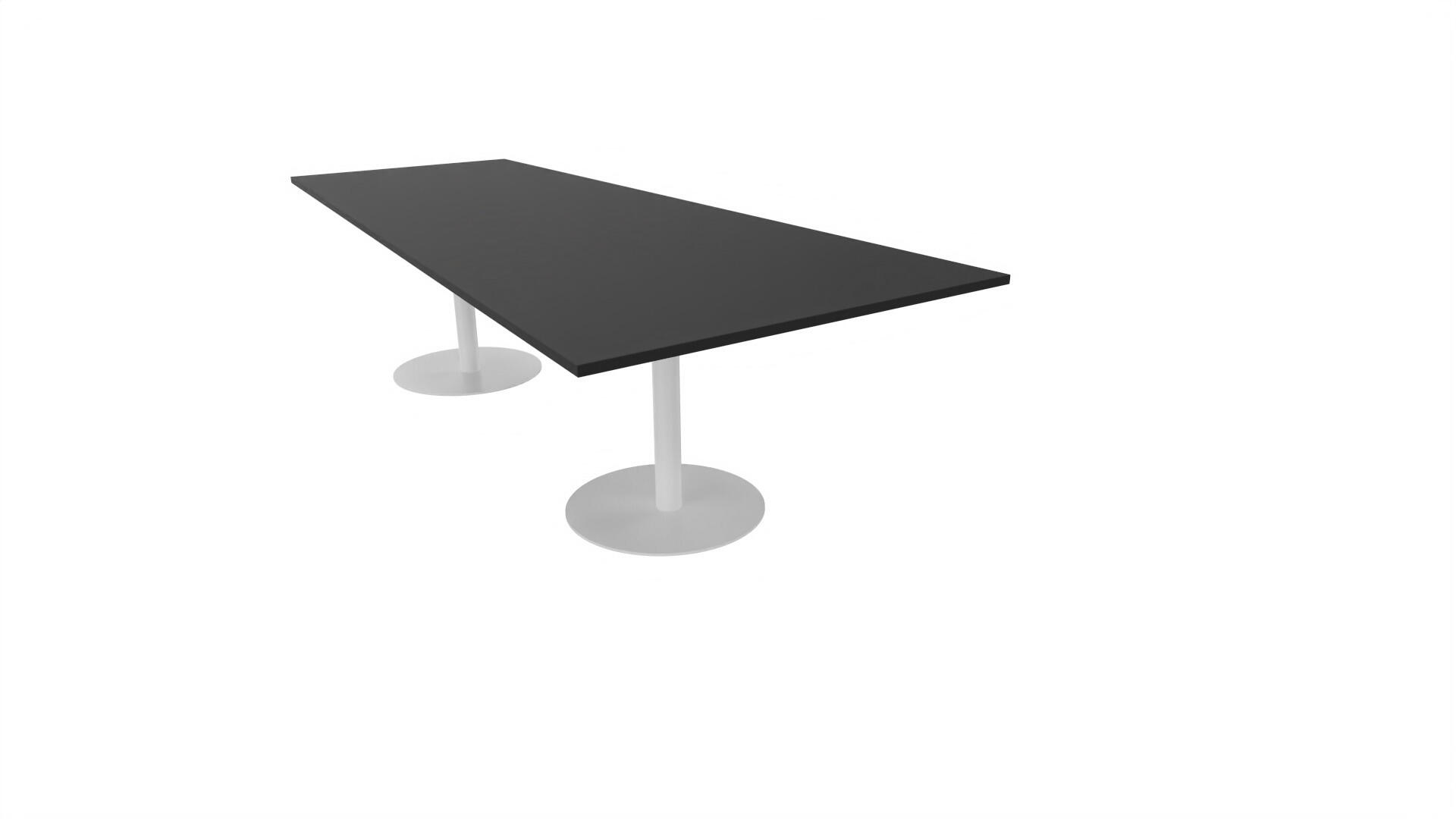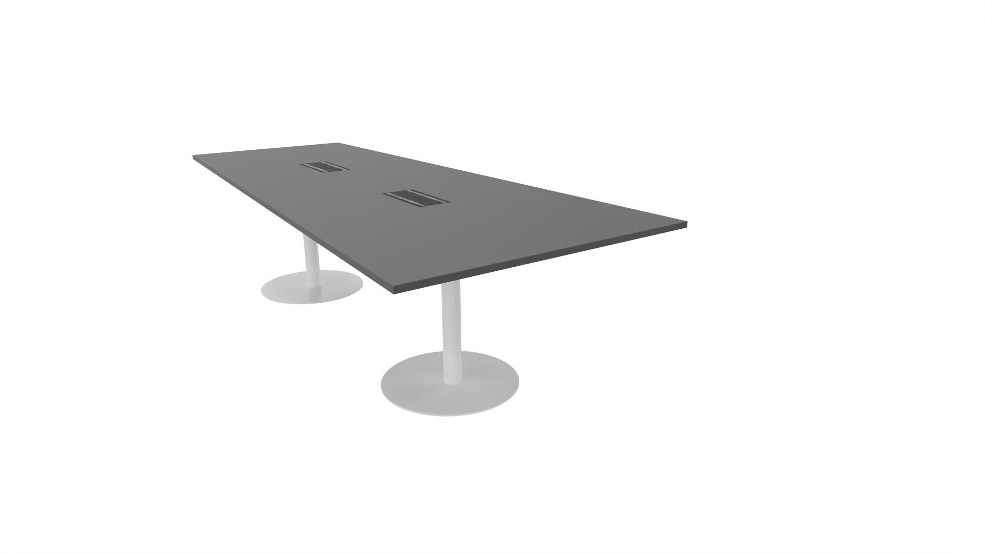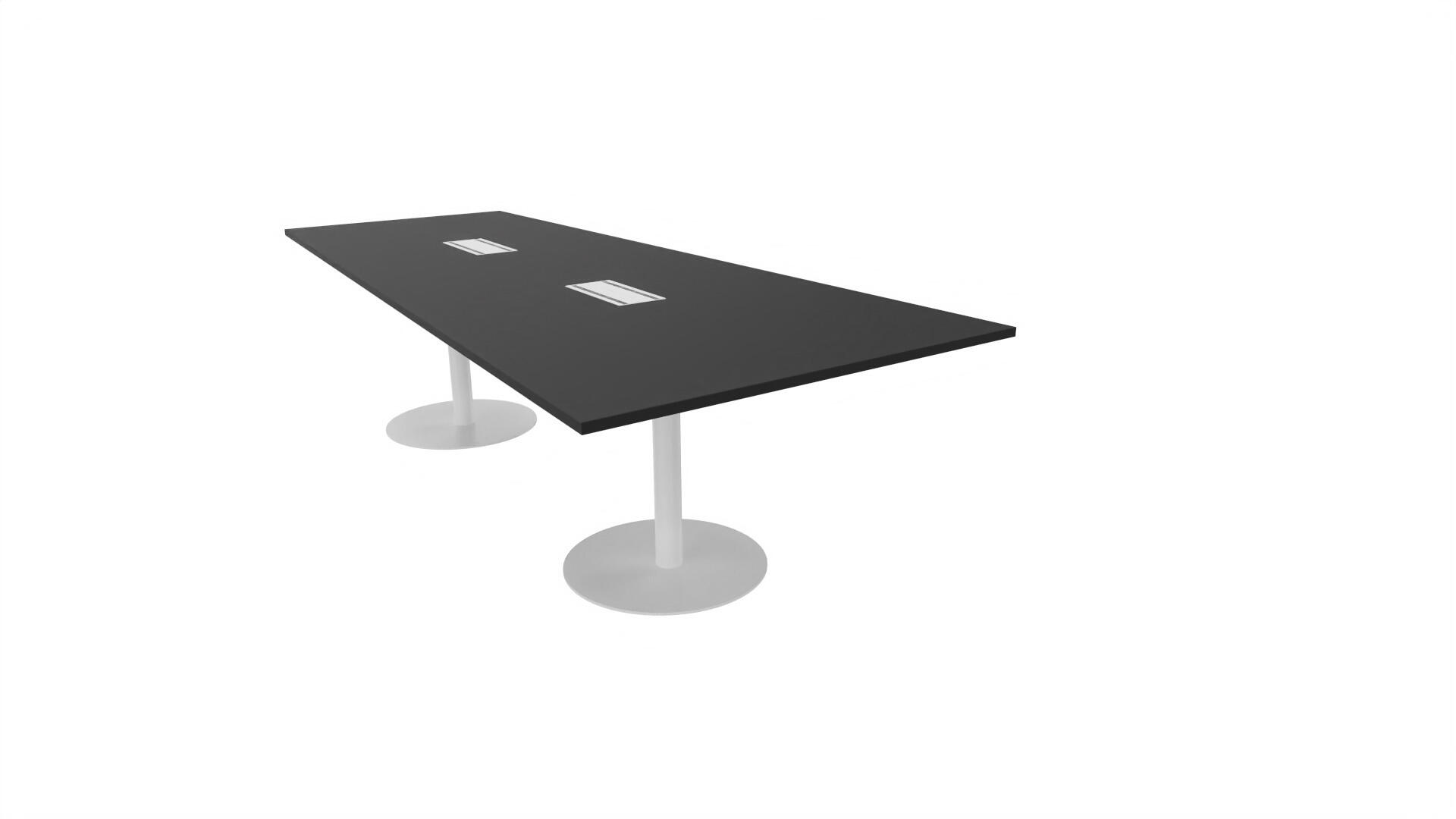 Ett konferensbord med rektangulär skiva, rak kant. Kärna av spånskiva klädd med laminat och ABS-kantband. Underrede pelarstativ med 2 ben, pelardiameter: ø 10,2 cm, fotdiamenter: ø 72 cm. Förutom vanligt standardlaminat, finns bordet även med ett svart nanolaminat som har en yta som är matt och resistent mot fingeravtryck. Som tillval kan du även välja att få två st mediaboxar (32x15 cm) infällda i bordet. Varje mediabox består av 2x 230V eluttag, 1x USB och 1x HDMI.