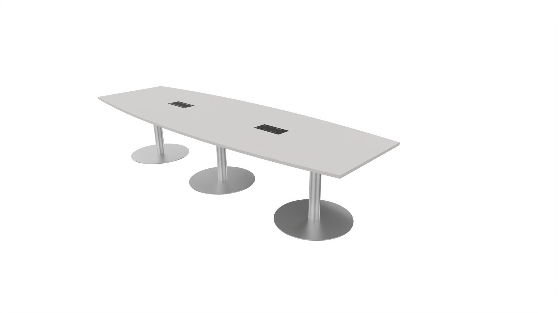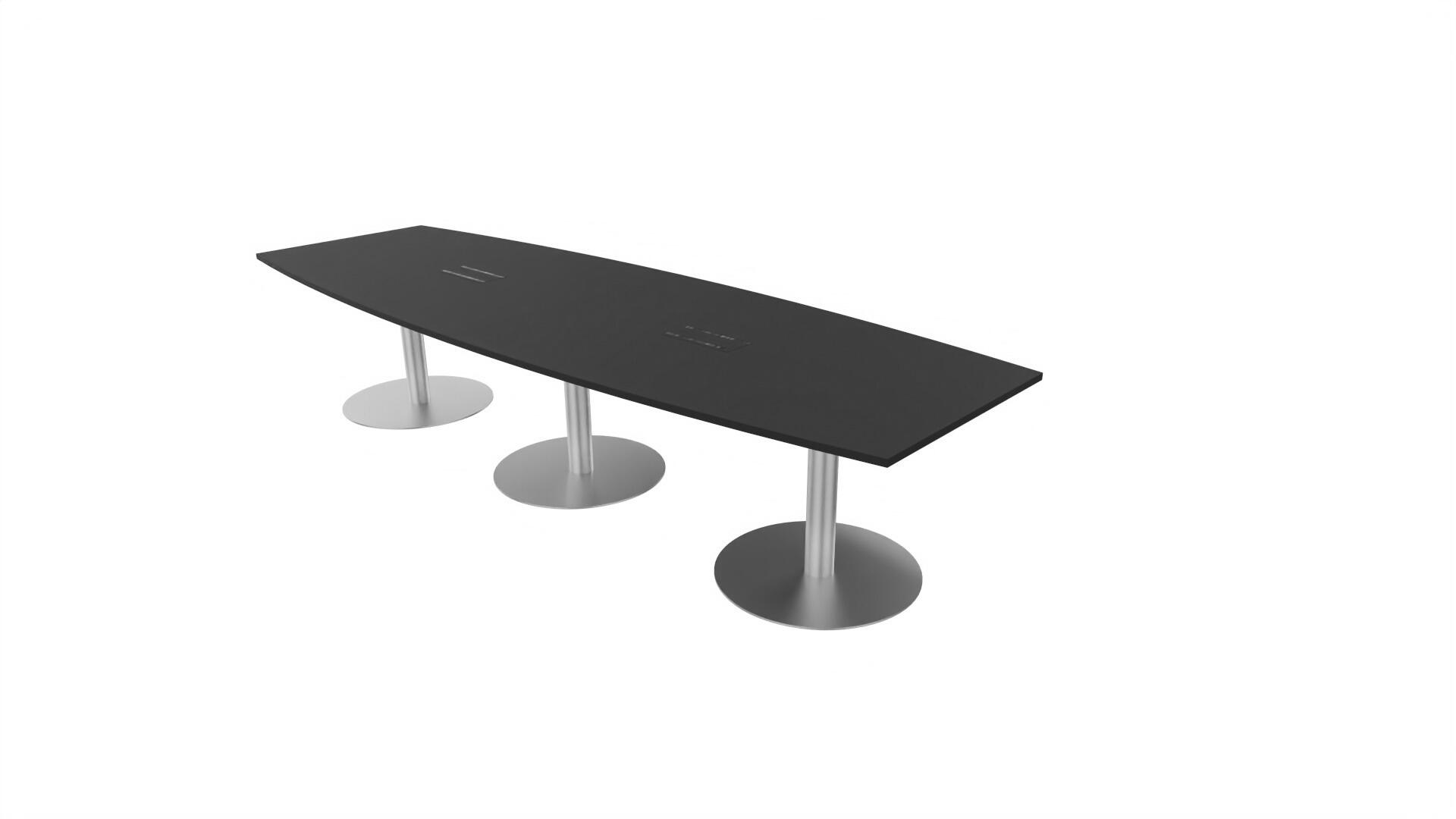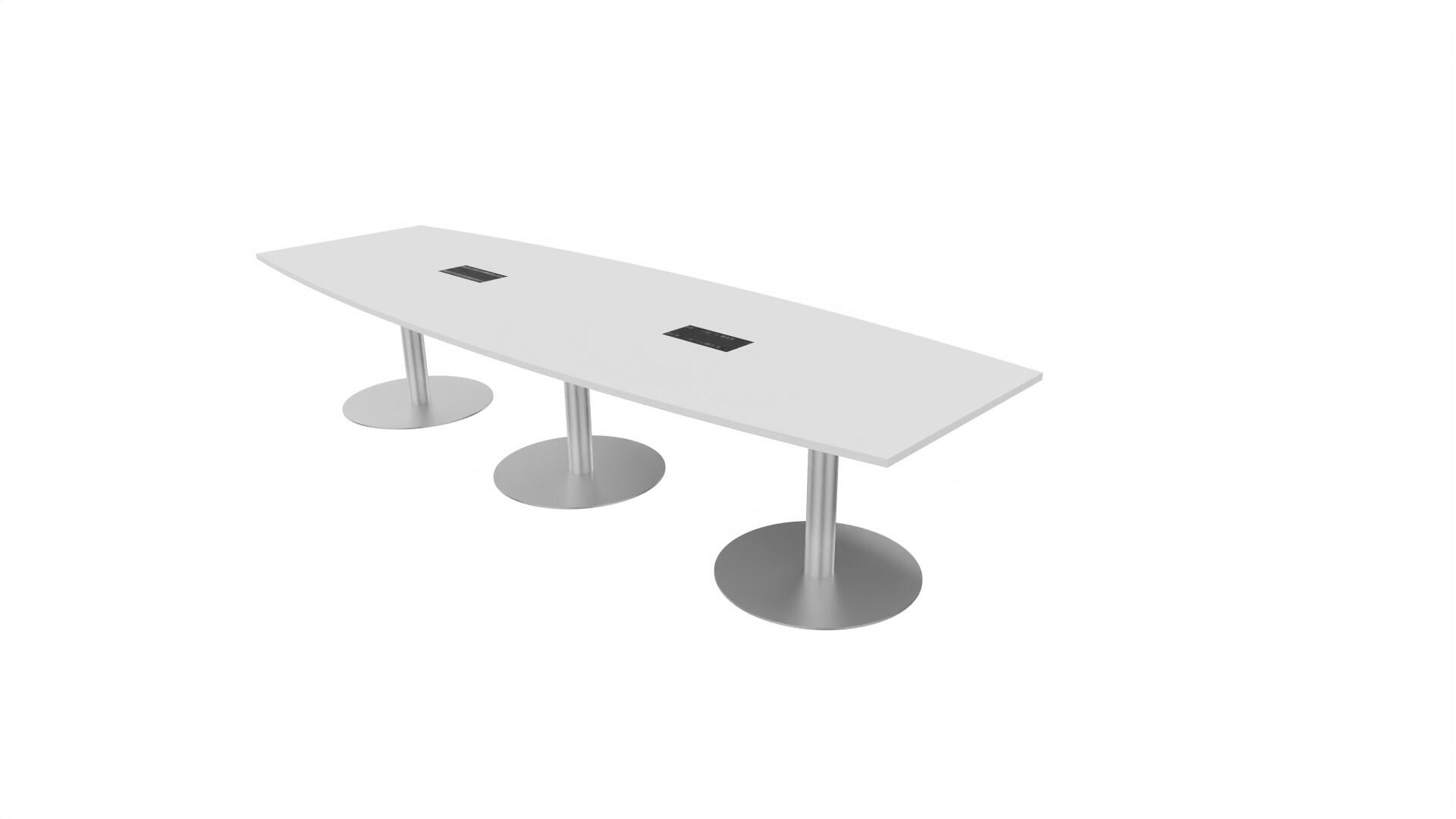 Ett konferensbord med en skiva formad som en avkapad ellips. Kärna av spånskiva klädd med laminat och ABS-kantband. Underrede T-stativ med 3 ben, fotlängd: 90 cm. Förutom vanligt standardlaminat, finns bordet även med ett svart nanolaminat som har en yta som är matt och resistent mot fingeravtryck. Som tillval kan du även välja att få två st mediaboxar (32x15 cm) infällda i bordet. Varje mediabox består av 2x 230V eluttag, 1x USB och 1x HDMI.