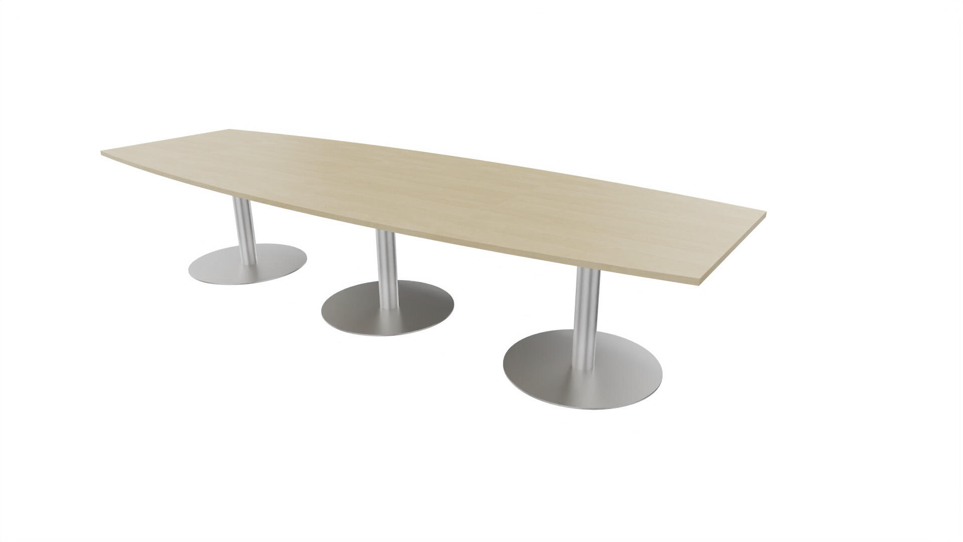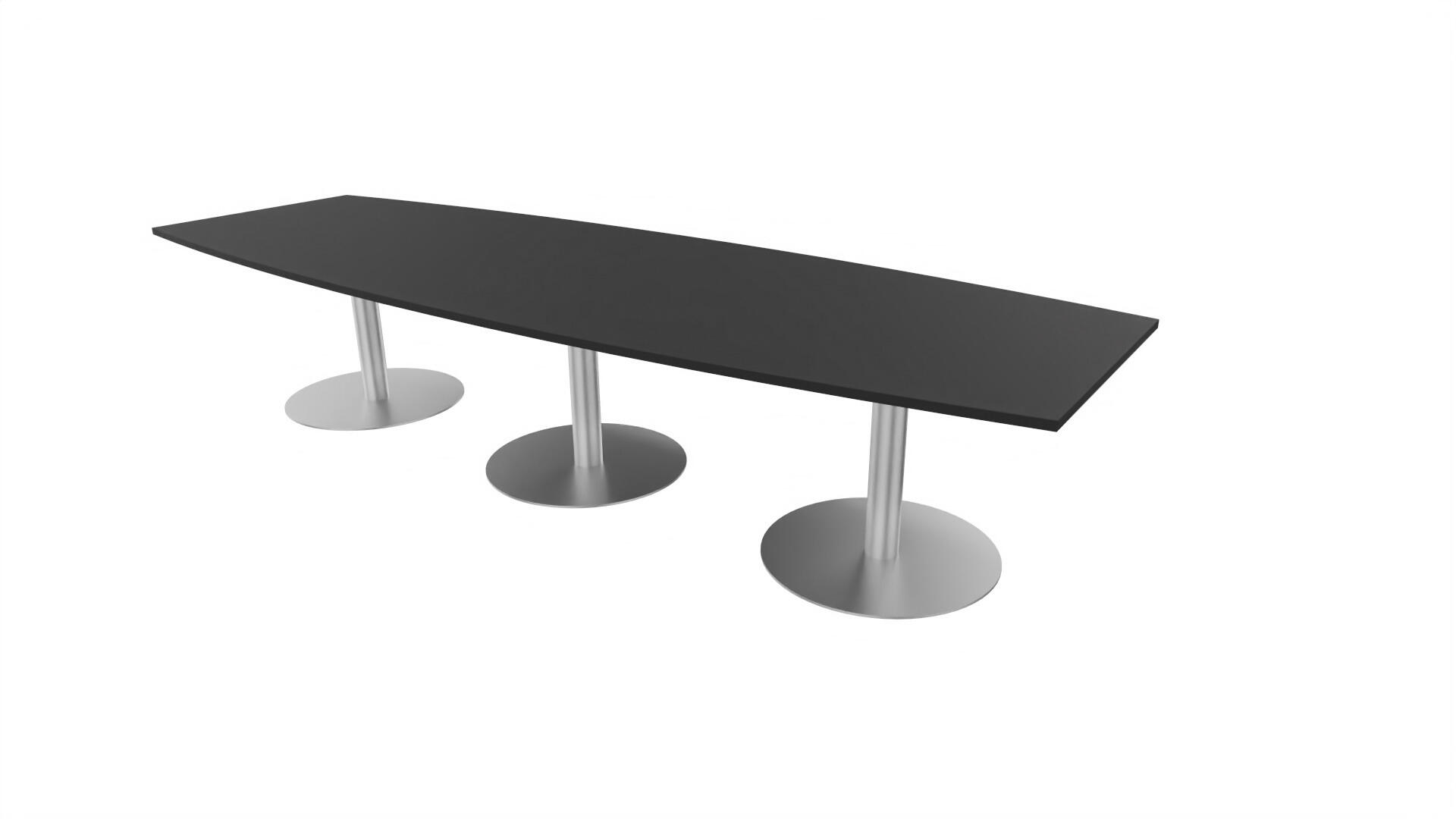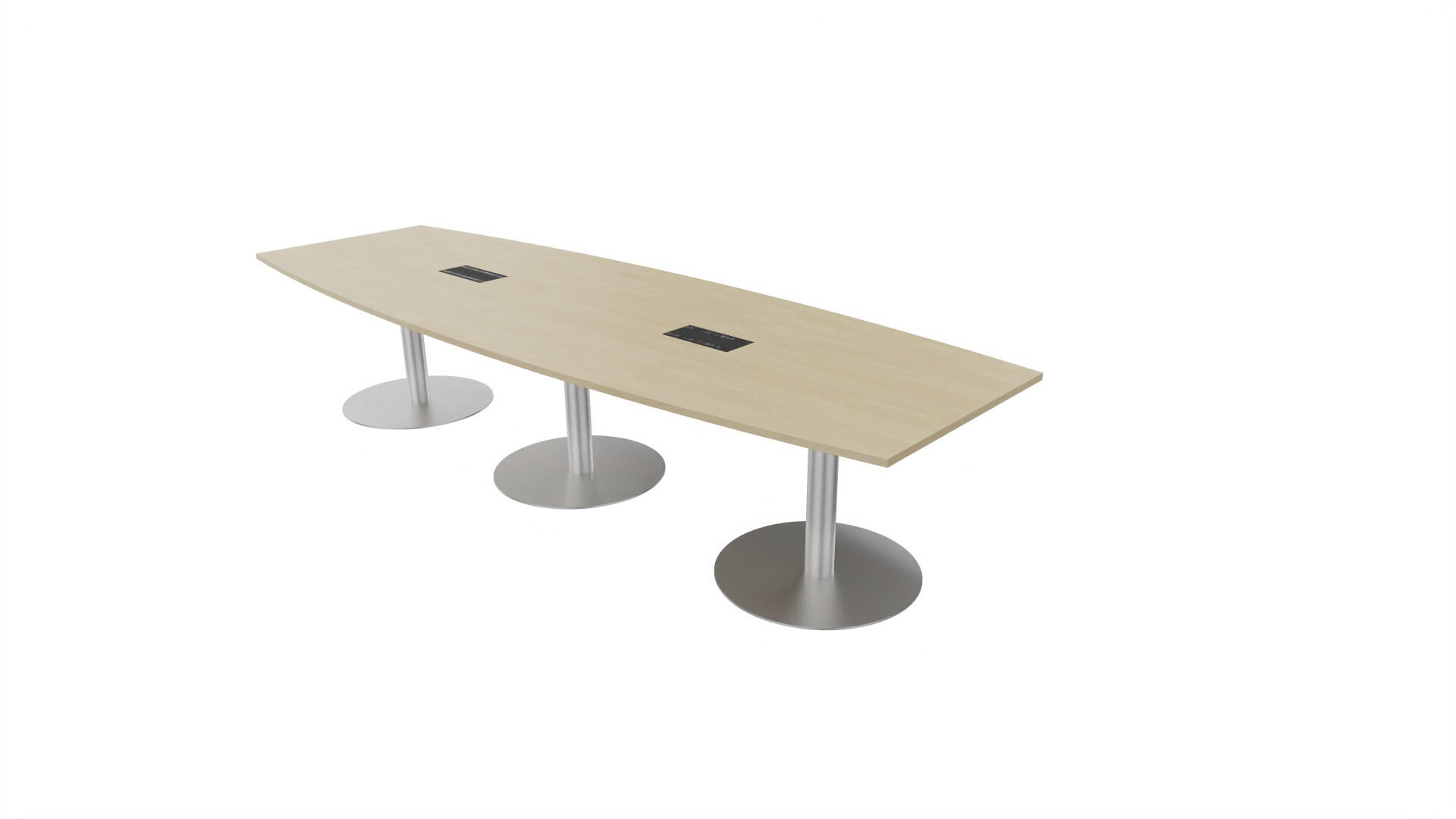 Ett konferensbord med en skiva formad som en avkapad ellips. Kärna av spånskiva klädd med laminat och ABS-kantband. Underrede T-stativ med 3 ben, fotlängd: 90 cm. Förutom vanligt standardlaminat, finns bordet även med ett svart nanolaminat som har en yta som är matt och resistent mot fingeravtryck. Som tillval kan du även välja att få två st mediaboxar (32x15 cm) infällda i bordet. Varje mediabox består av 2x 230V eluttag, 1x USB och 1x HDMI.