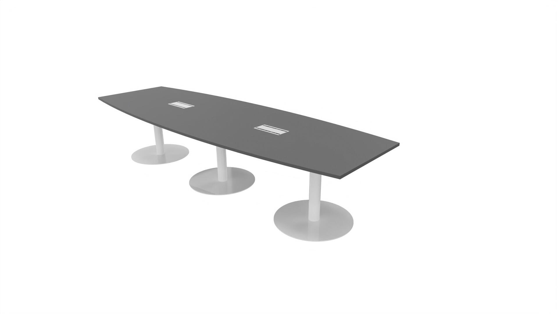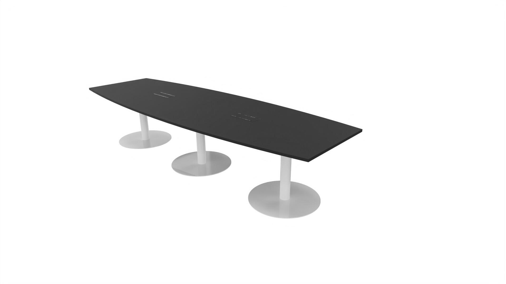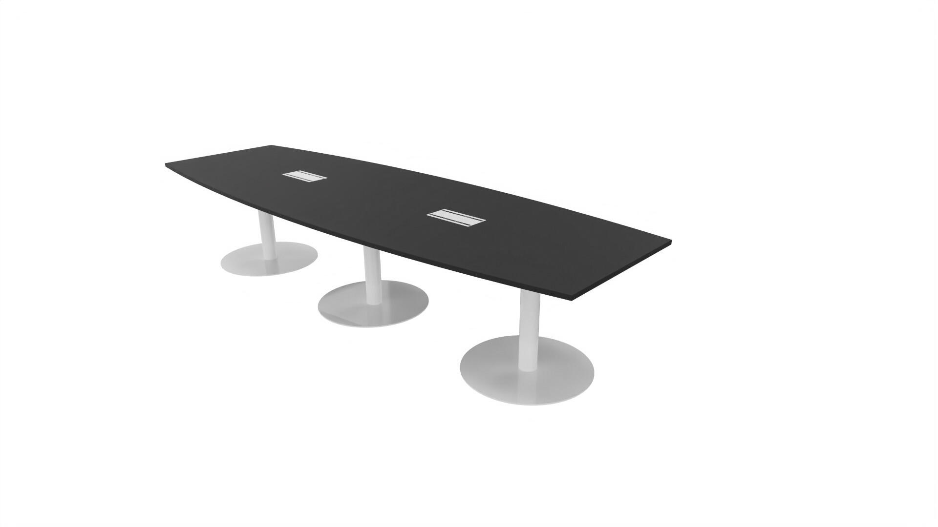 Ett konferensbord med en skiva formad som en avkapad ellips. Kärna av spånskiva klädd med laminat och ABS-kantband. Underrede T-stativ med 3 ben, fotlängd: 90 cm. Förutom vanligt standardlaminat, finns bordet även med ett svart nanolaminat som har en yta som är matt och resistent mot fingeravtryck. Som tillval kan du även välja att få två st mediaboxar (32x15 cm) infällda i bordet. Varje mediabox består av 2x 230V eluttag, 1x USB och 1x HDMI.