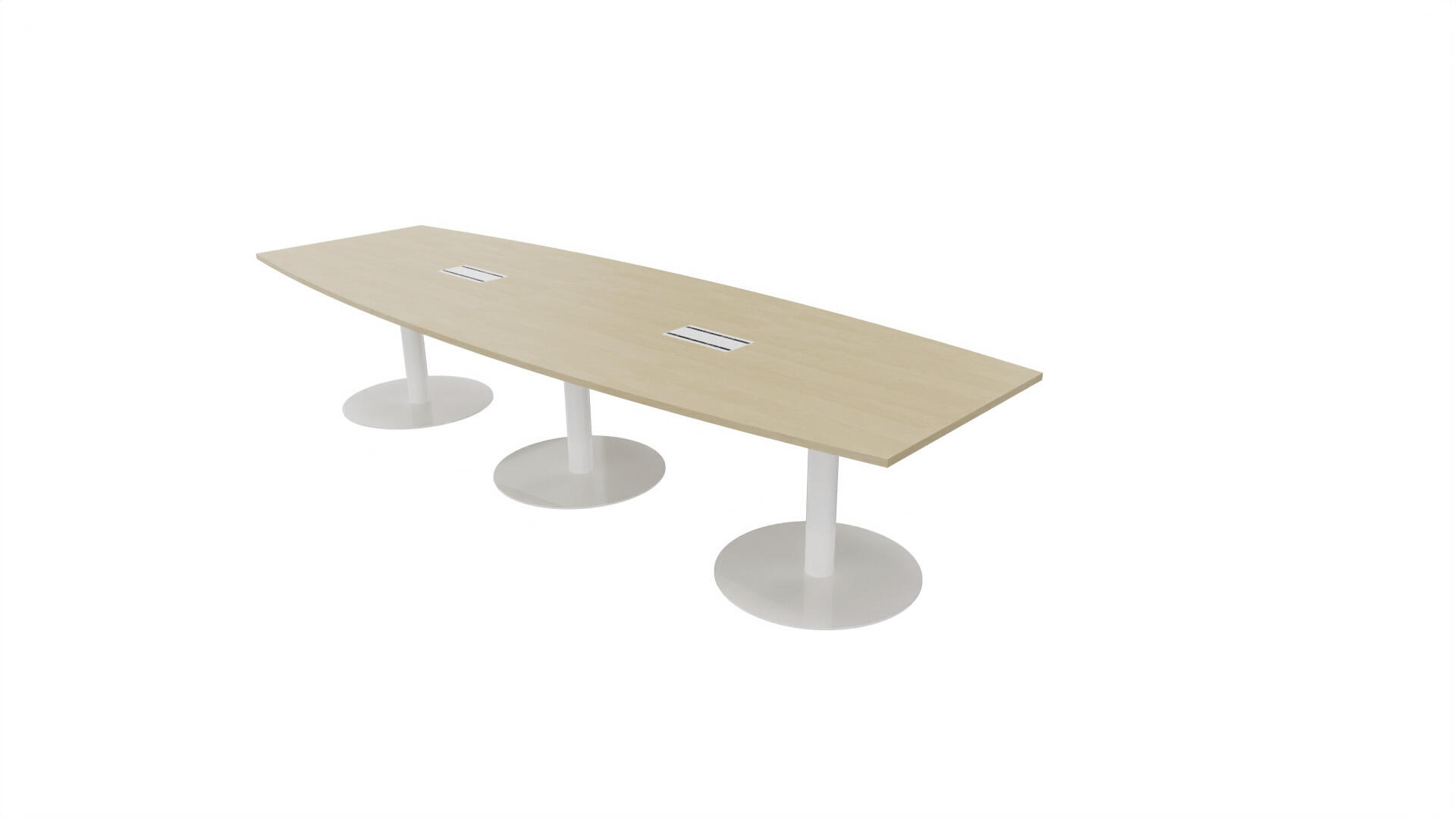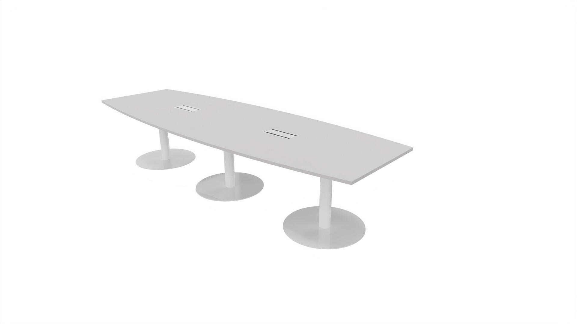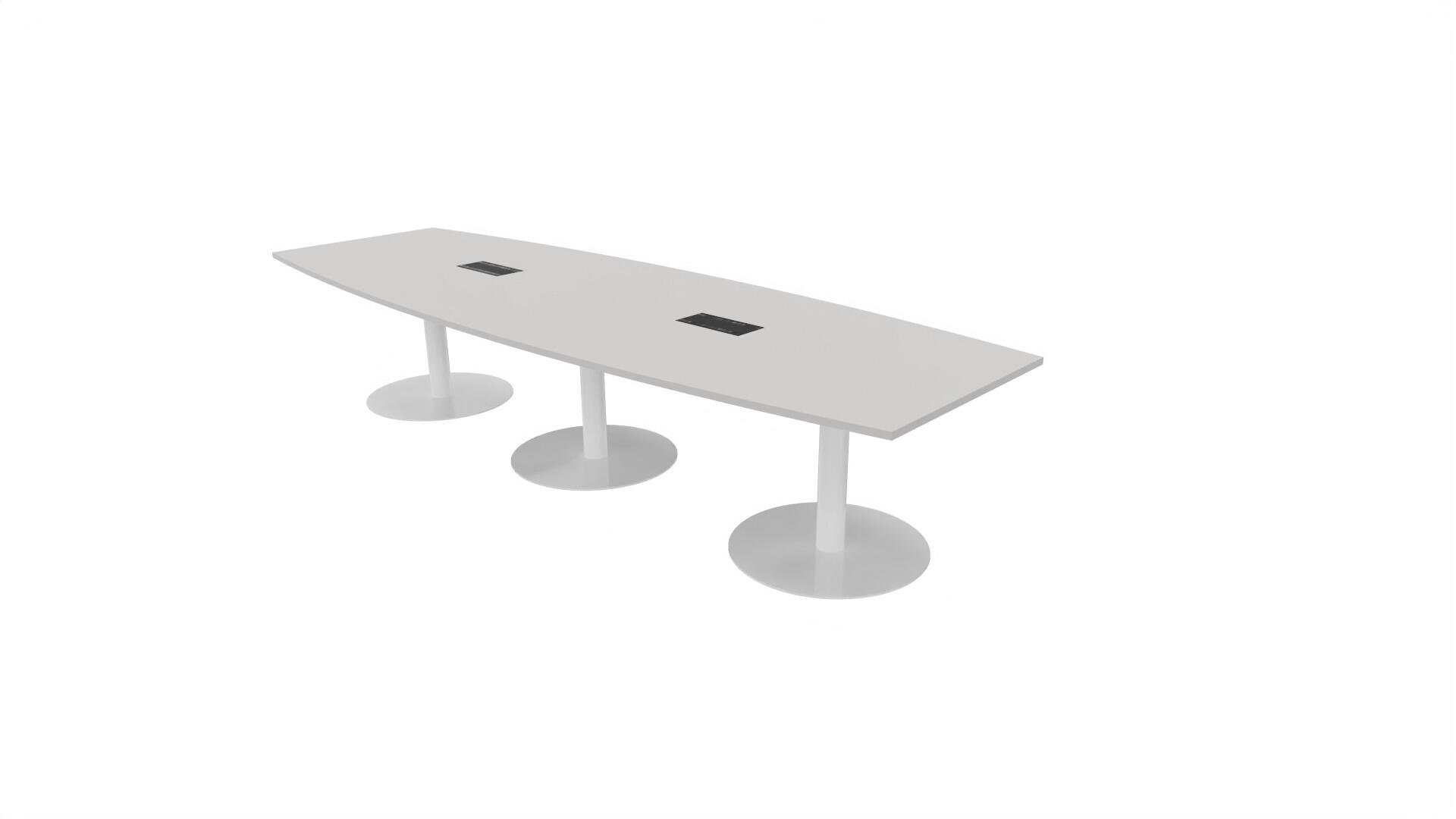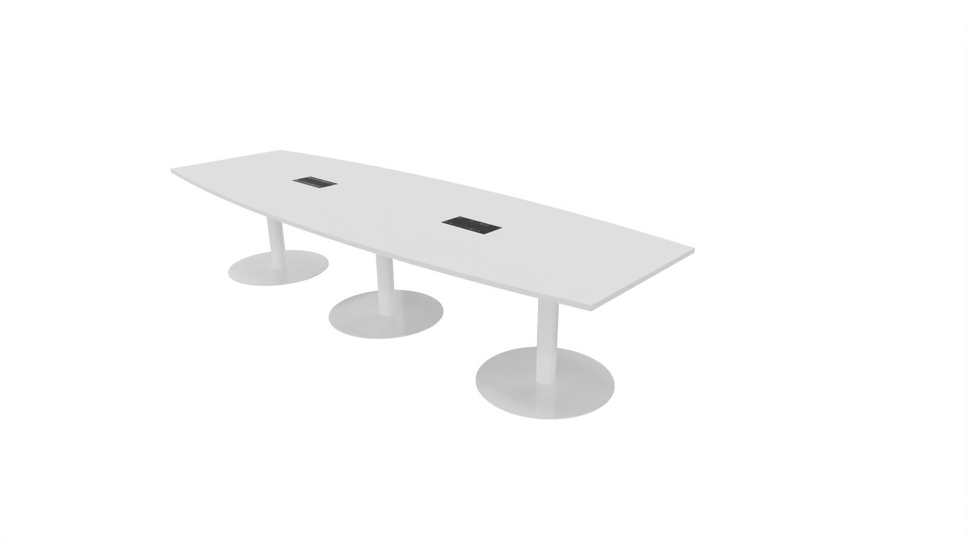 Ett konferensbord med en skiva formad som en avkapad ellips. Kärna av spånskiva klädd med laminat och ABS-kantband. Underrede T-stativ med 3 ben, fotlängd: 90 cm. Förutom vanligt standardlaminat, finns bordet även med ett svart nanolaminat som har en yta som är matt och resistent mot fingeravtryck. Som tillval kan du även välja att få två st mediaboxar (32x15 cm) infällda i bordet. Varje mediabox består av 2x 230V eluttag, 1x USB och 1x HDMI.