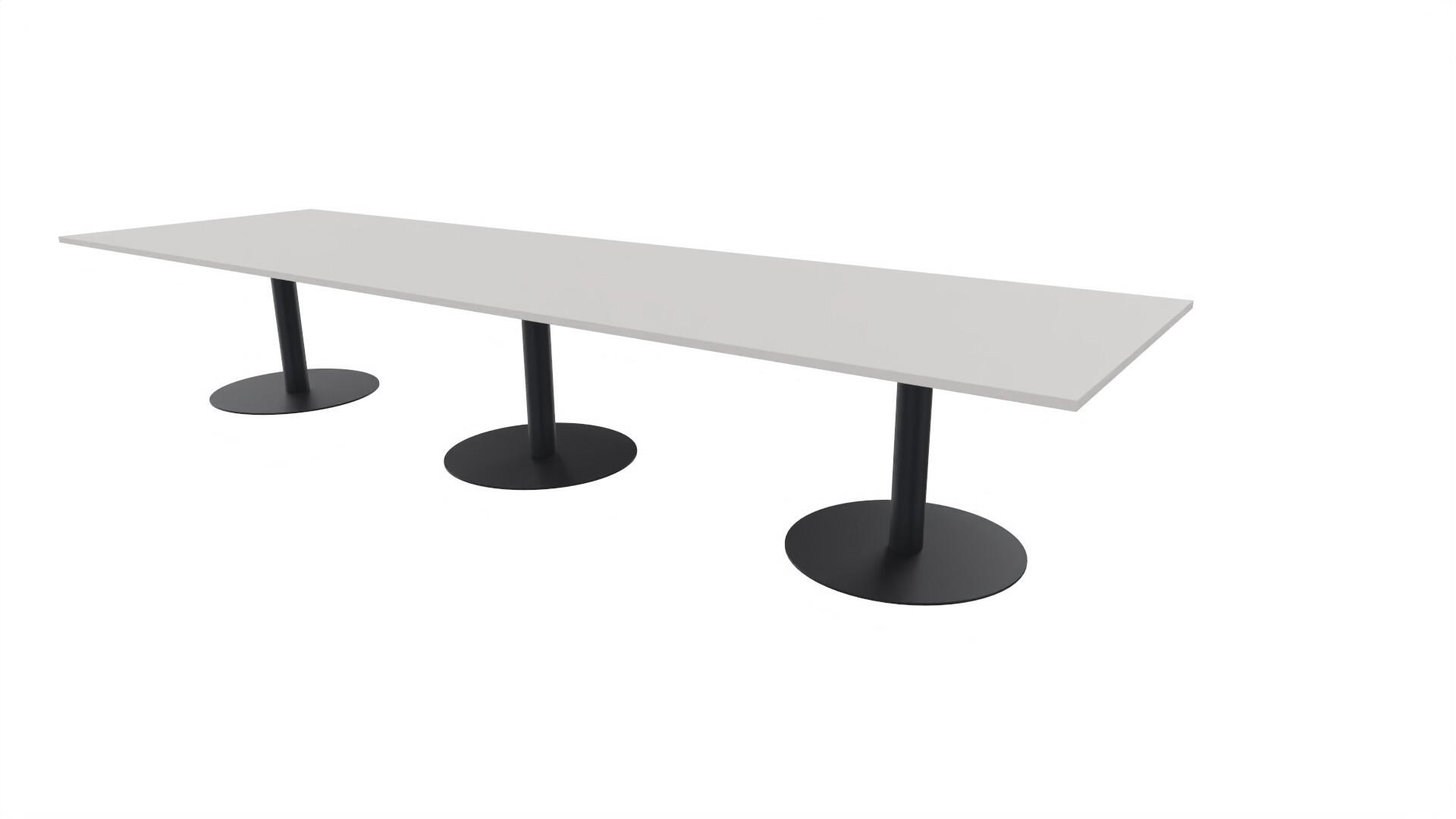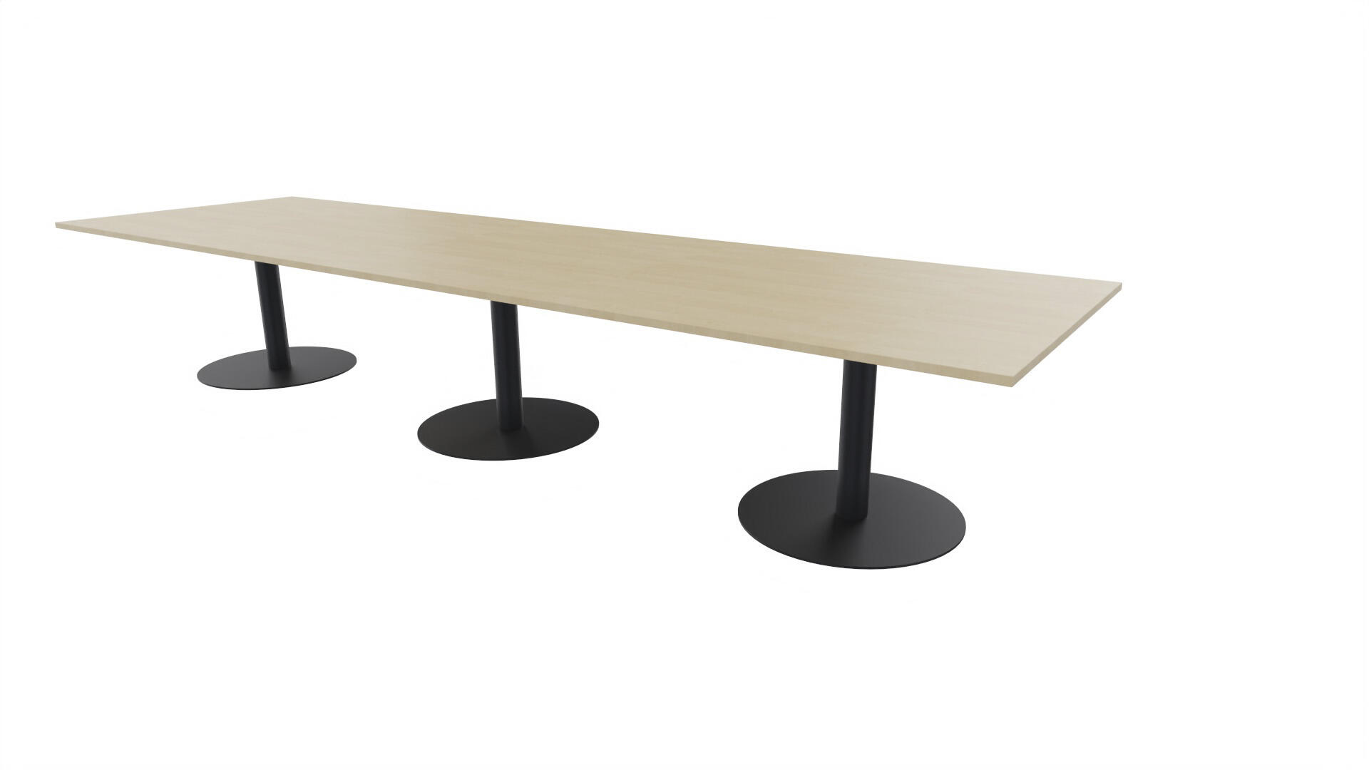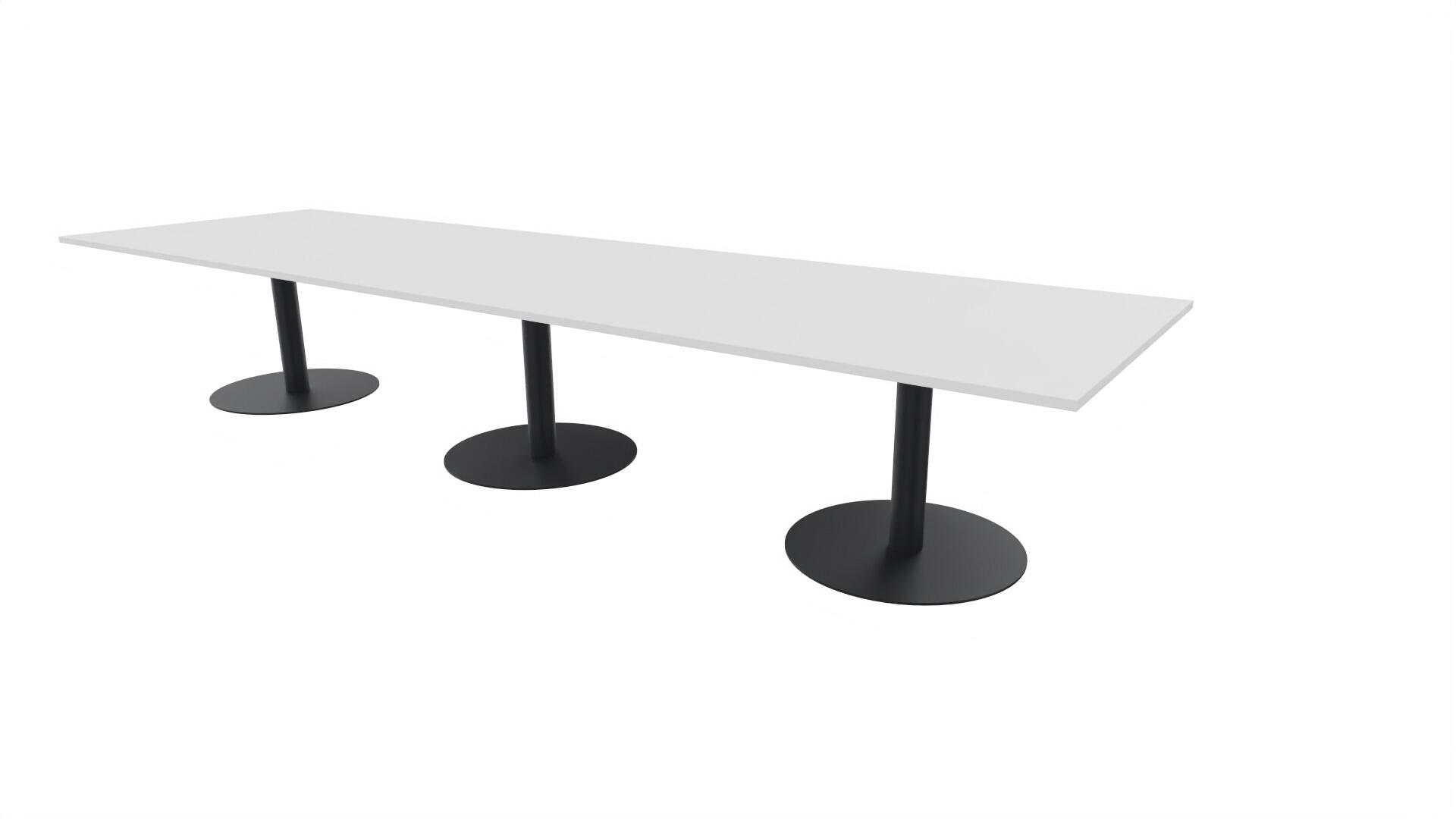 Ett konferensbord med rektangulär skiva, rak kant. Kärna av spånskiva klädd med laminat och ABS-kantband. Underrede pelarstativ med 3 ben, pelardiameter: ø 10,2 cm, fotdiamenter: ø 72 cm. Förutom vanligt standardlaminat, finns bordet även med ett svart nanolaminat som har en yta som är matt och resistent mot fingeravtryck. Som tillval kan du även välja att få två st mediaboxar (61x15 cm) infällda i bordet. Varje mediabox består av 5x 230V eluttag, 2x USB och 1x HDMI.