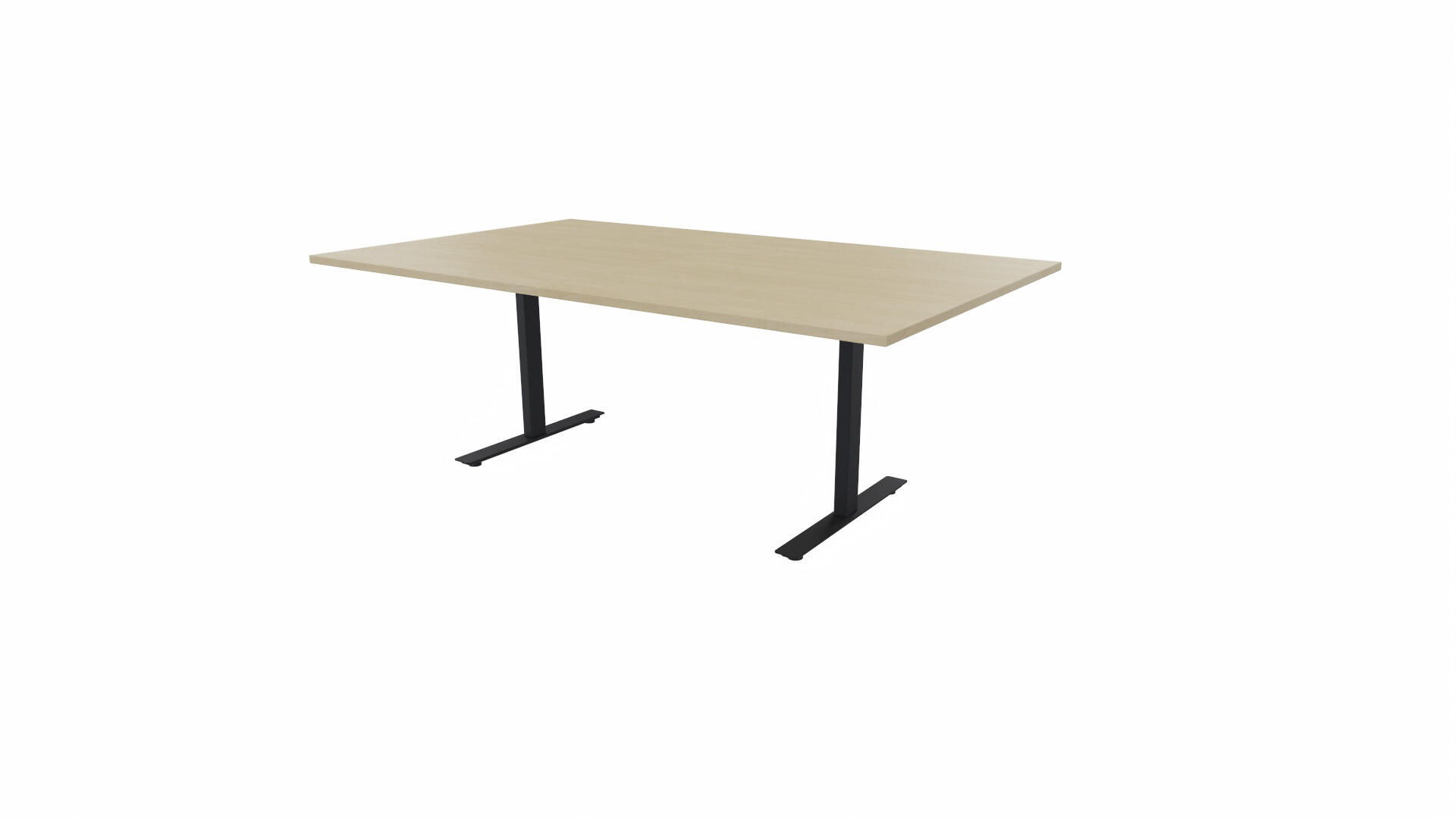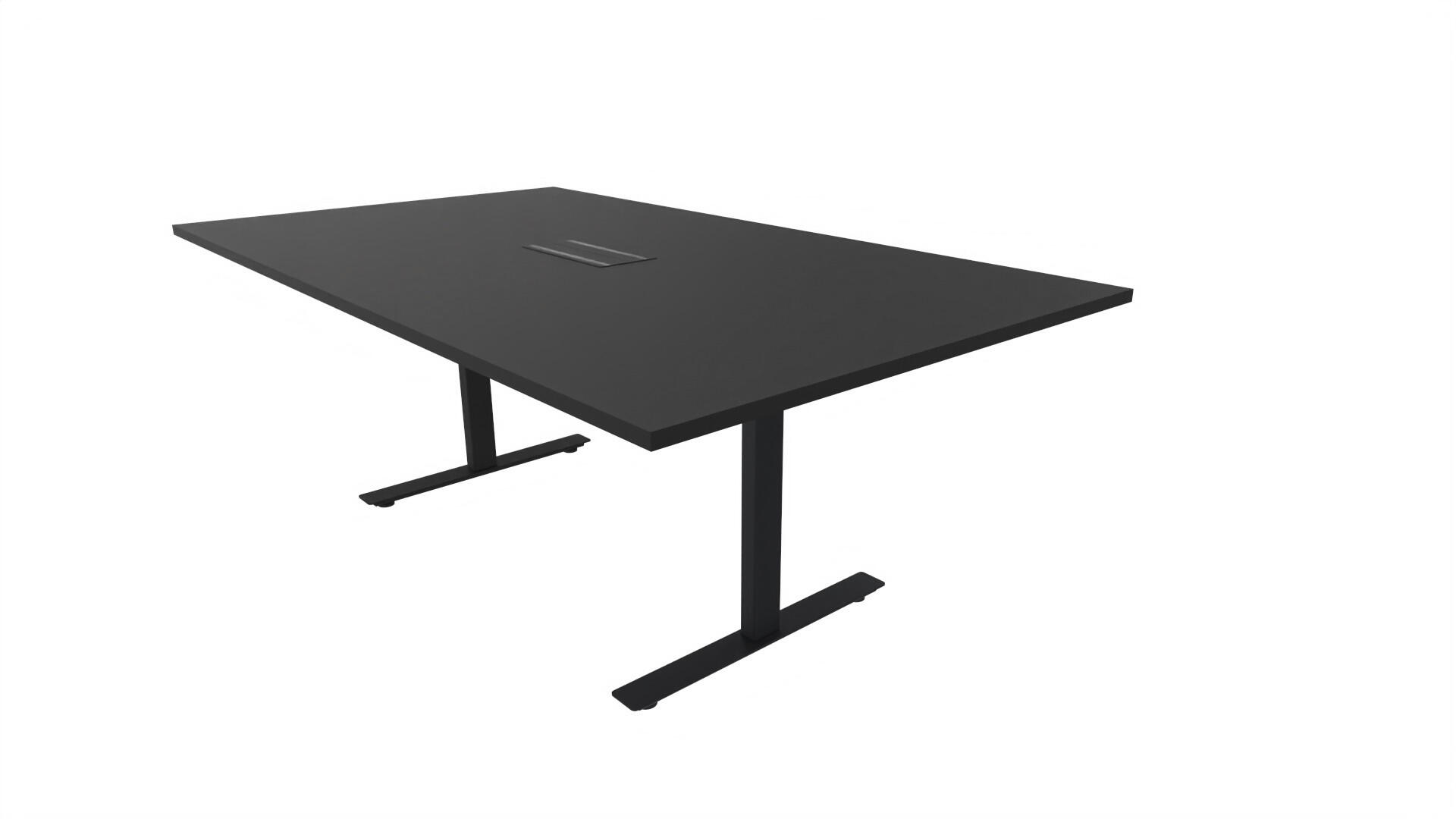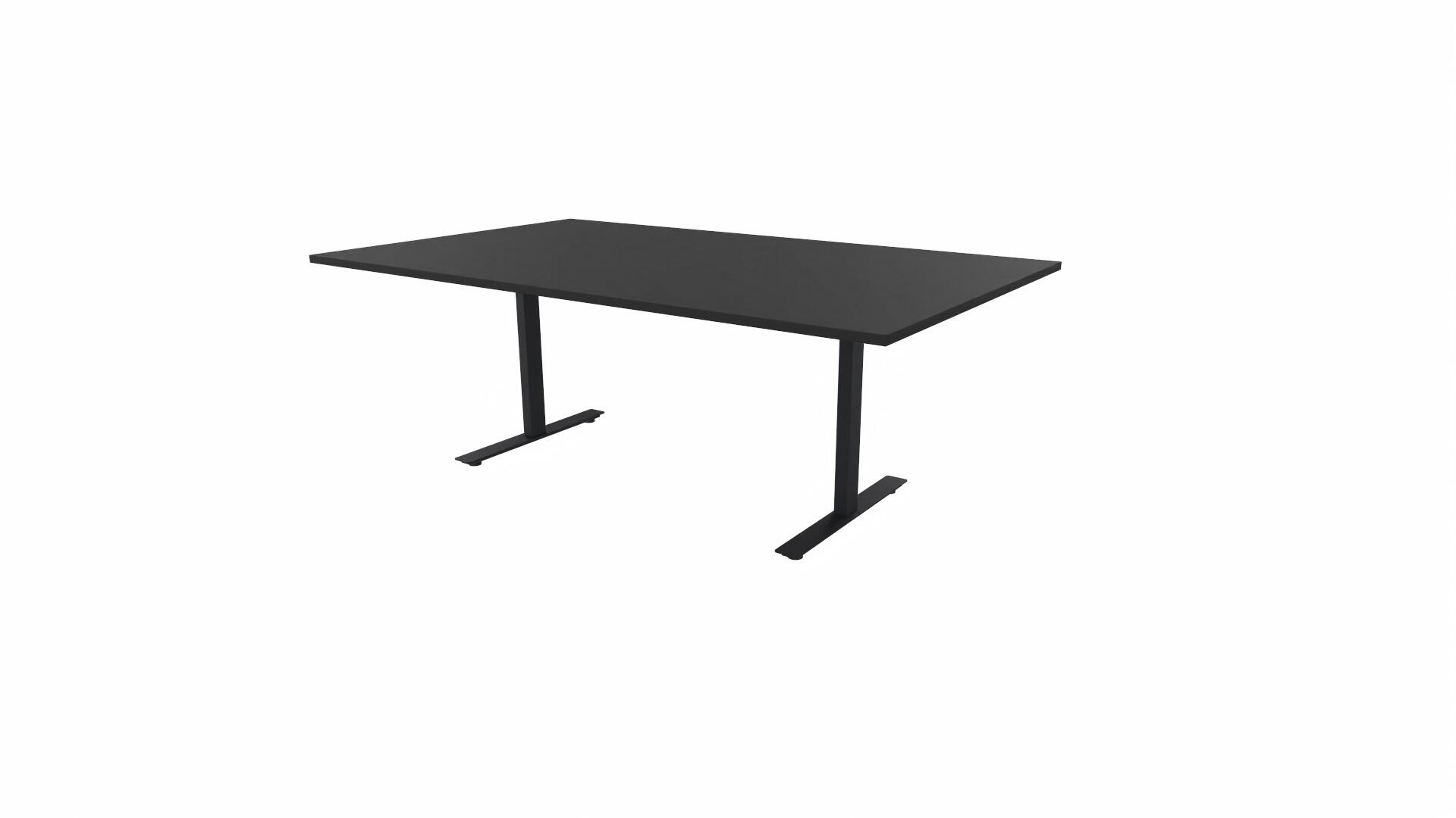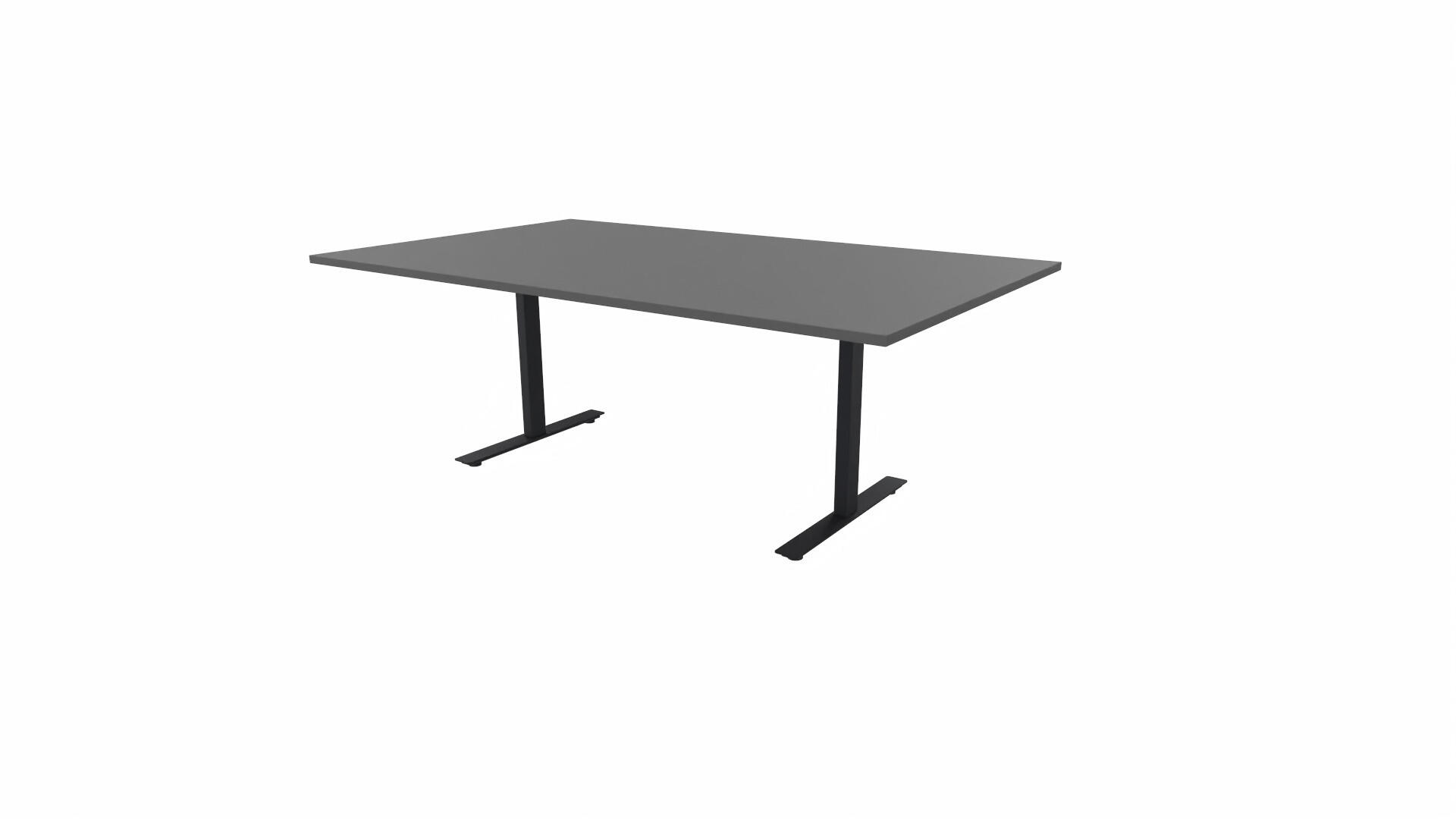 Ett konferensbord med rektangulär skiva, rak kant. Kärna av spånskiva klädd med laminat och ABS-kantband. Underrede T-stativ med 3 ben, fotlängd: 90 cm. Förutom vanligt standardlaminat, finns bordet även med ett svart nanolaminat som har en yta som är matt och resistent mot fingeravtryck. Som tillval kan du även välja att få två st mediaboxar (32x15 cm) infällda i bordet. Varje mediabox består av 4x 230V eluttag, 2x USB och 2x HDMI.