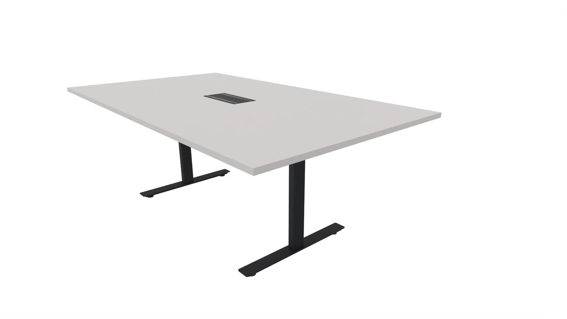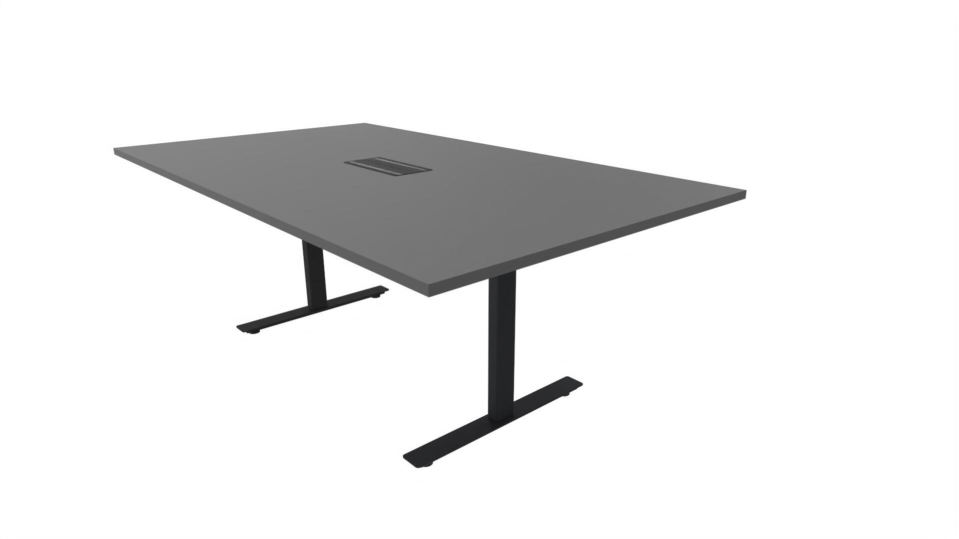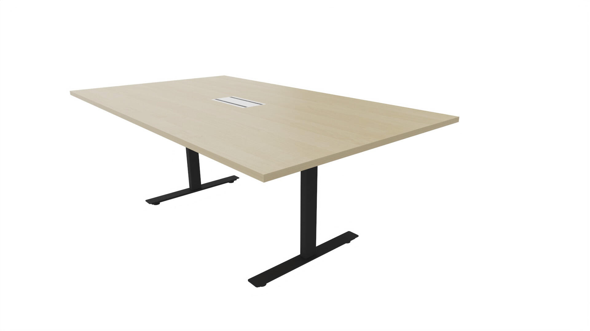 Ett konferensbord med rektangulär skiva, rak kant. Kärna av spånskiva klädd med laminat och ABS-kantband. Underrede T-stativ med 3 ben, fotlängd: 90 cm. Förutom vanligt standardlaminat, finns bordet även med ett svart nanolaminat som har en yta som är matt och resistent mot fingeravtryck. Som tillval kan du även välja att få två st mediaboxar (32x15 cm) infällda i bordet. Varje mediabox består av 4x 230V eluttag, 2x USB och 2x HDMI.