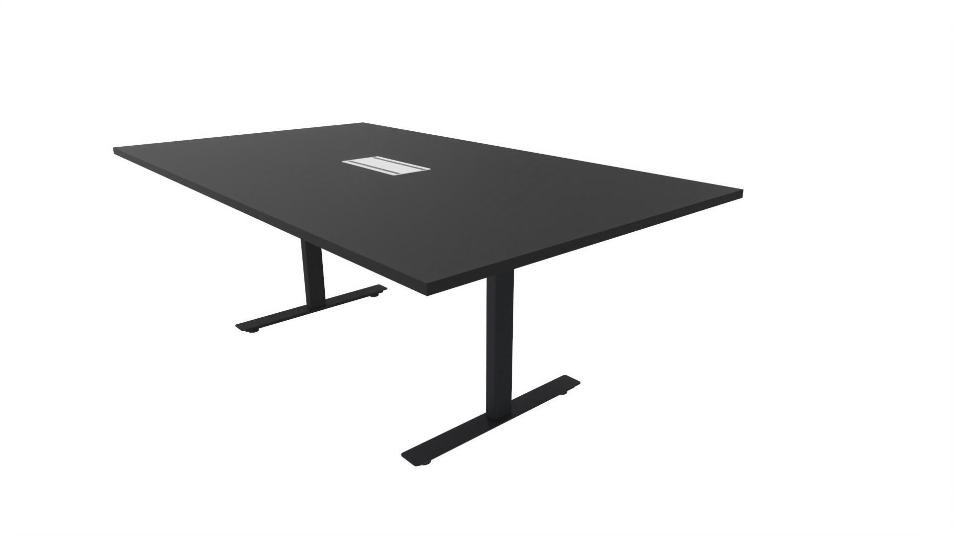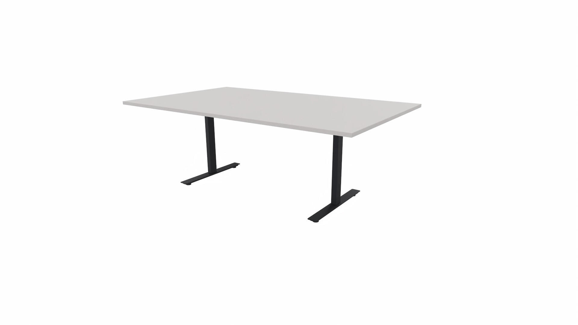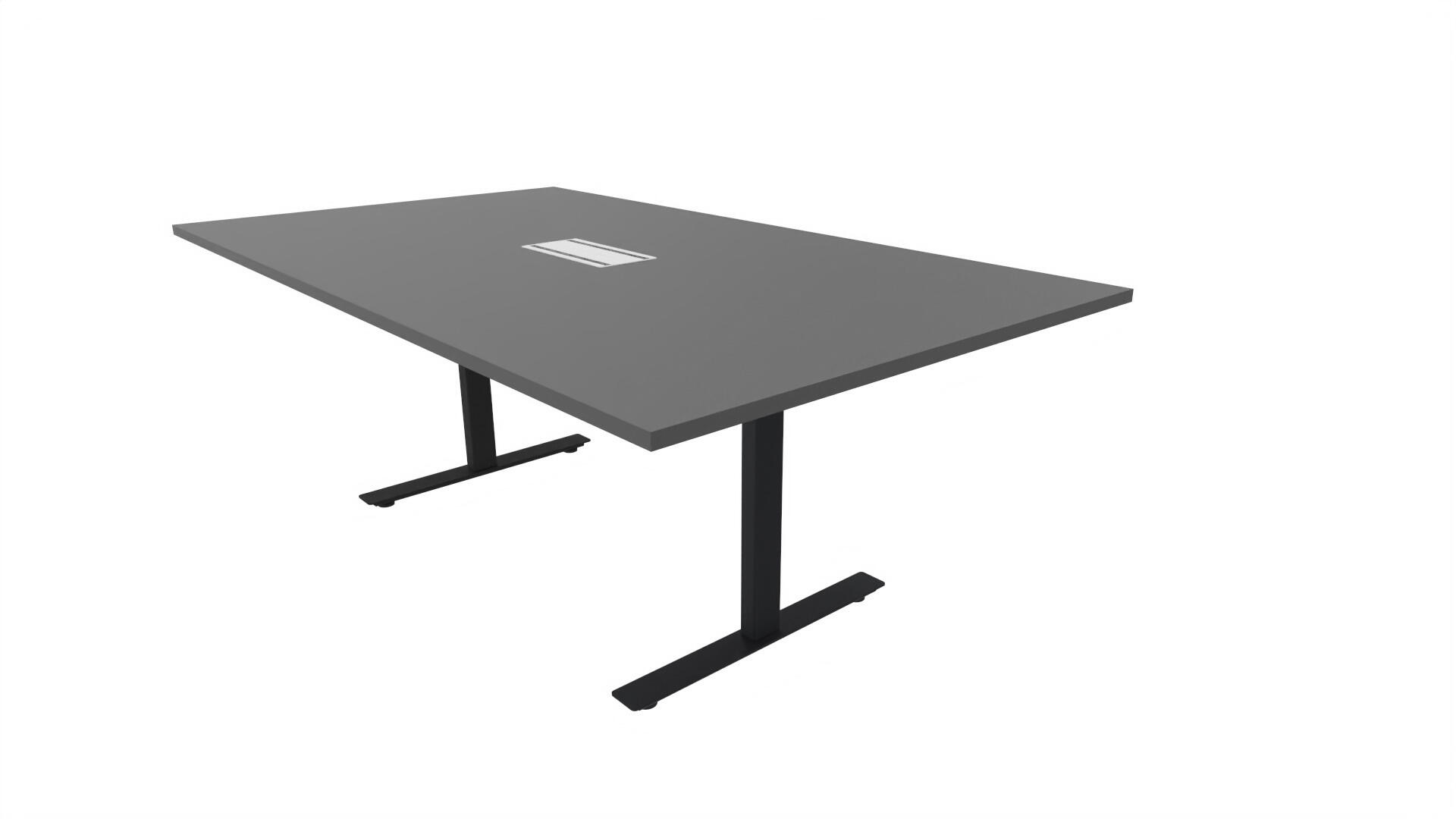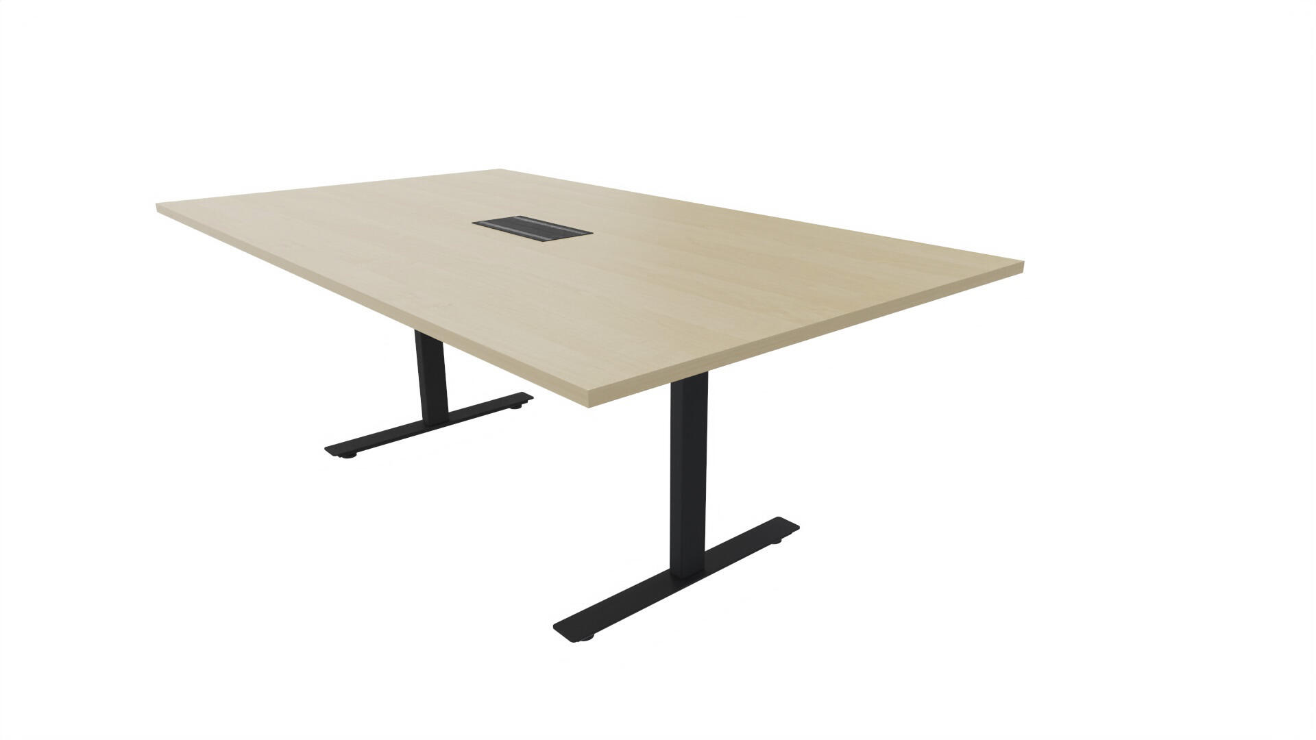 Ett konferensbord med rektangulär skiva, rak kant. Kärna av spånskiva klädd med laminat och ABS-kantband. Underrede T-stativ med 3 ben, fotlängd: 90 cm. Förutom vanligt standardlaminat, finns bordet även med ett svart nanolaminat som har en yta som är matt och resistent mot fingeravtryck. Som tillval kan du även välja att få två st mediaboxar (32x15 cm) infällda i bordet. Varje mediabox består av 4x 230V eluttag, 2x USB och 2x HDMI.