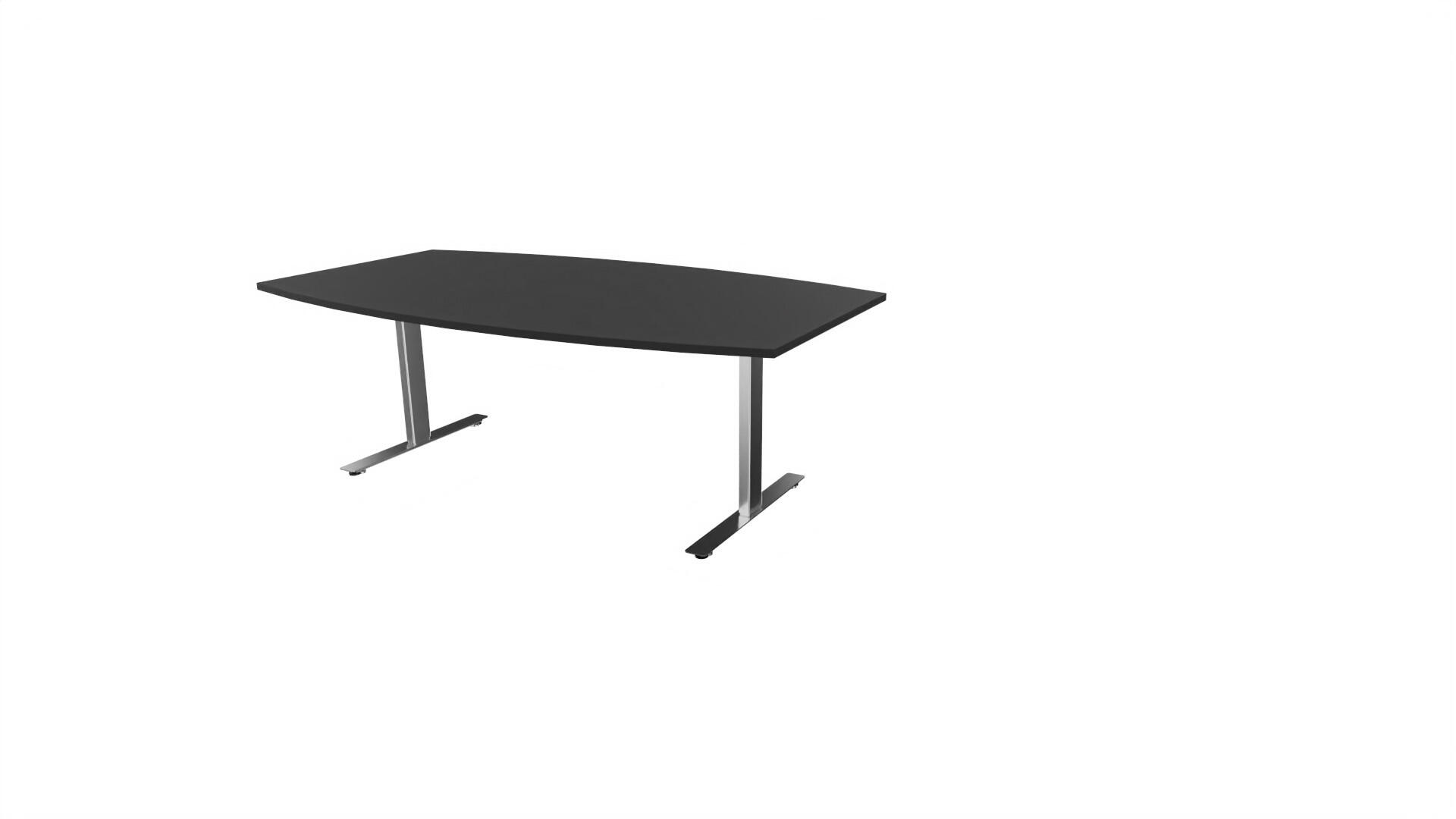 Ett konferensbord med en skiva formad som en avkapad ellips. Kärna av spånskiva klädd med laminat och ABS-kantband. Underrede T-stativ med 2 ben, fotlängd: 90 cm. Förutom vanligt standardlaminat, finns bordet även med ett svart nanolaminat som har en yta som är matt och resistent mot fingeravtryck. Som tillval kan du även välja att få en mediabox (32x15 cm) infälld i bordet. Mediaboxen består av 2x 230V eluttag, 1x USB och 1x HDMI.