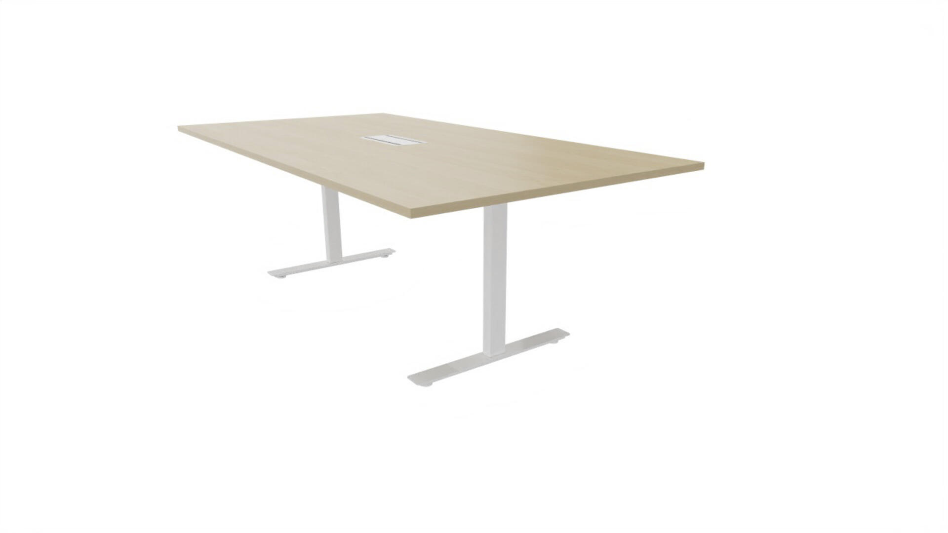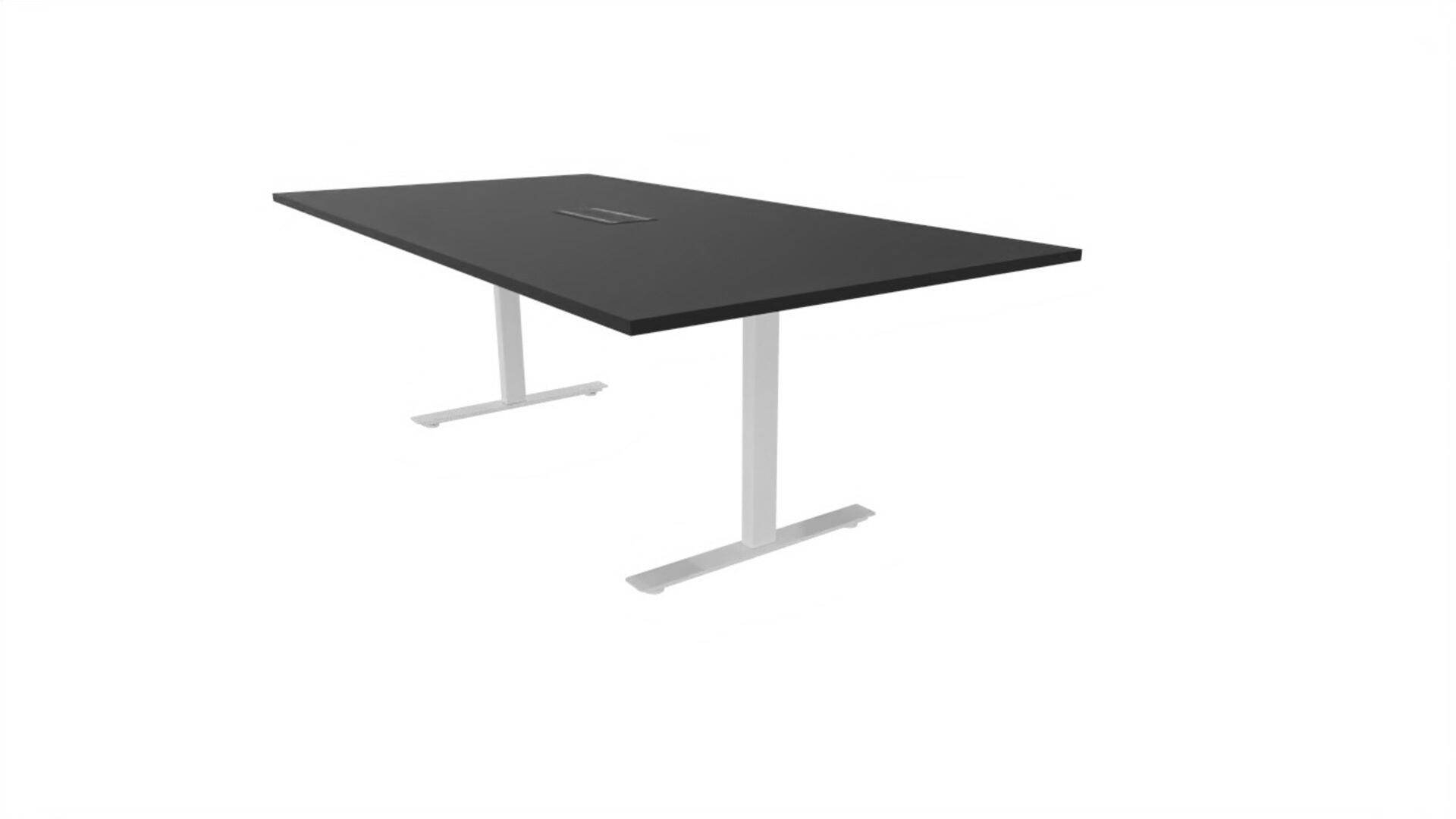 Ett konferensbord med rektangulär skiva, rak kant. Kärna av spånskiva klädd med laminat och ABS-kantband. Underrede T-stativ med 3 ben, fotlängd: 90 cm. Förutom vanligt standardlaminat, finns bordet även med ett svart nanolaminat som har en yta som är matt och resistent mot fingeravtryck. Som tillval kan du även välja att få två st mediaboxar (32x15 cm) infällda i bordet. Varje mediabox består av 4x 230V eluttag, 2x USB och 2x HDMI.
