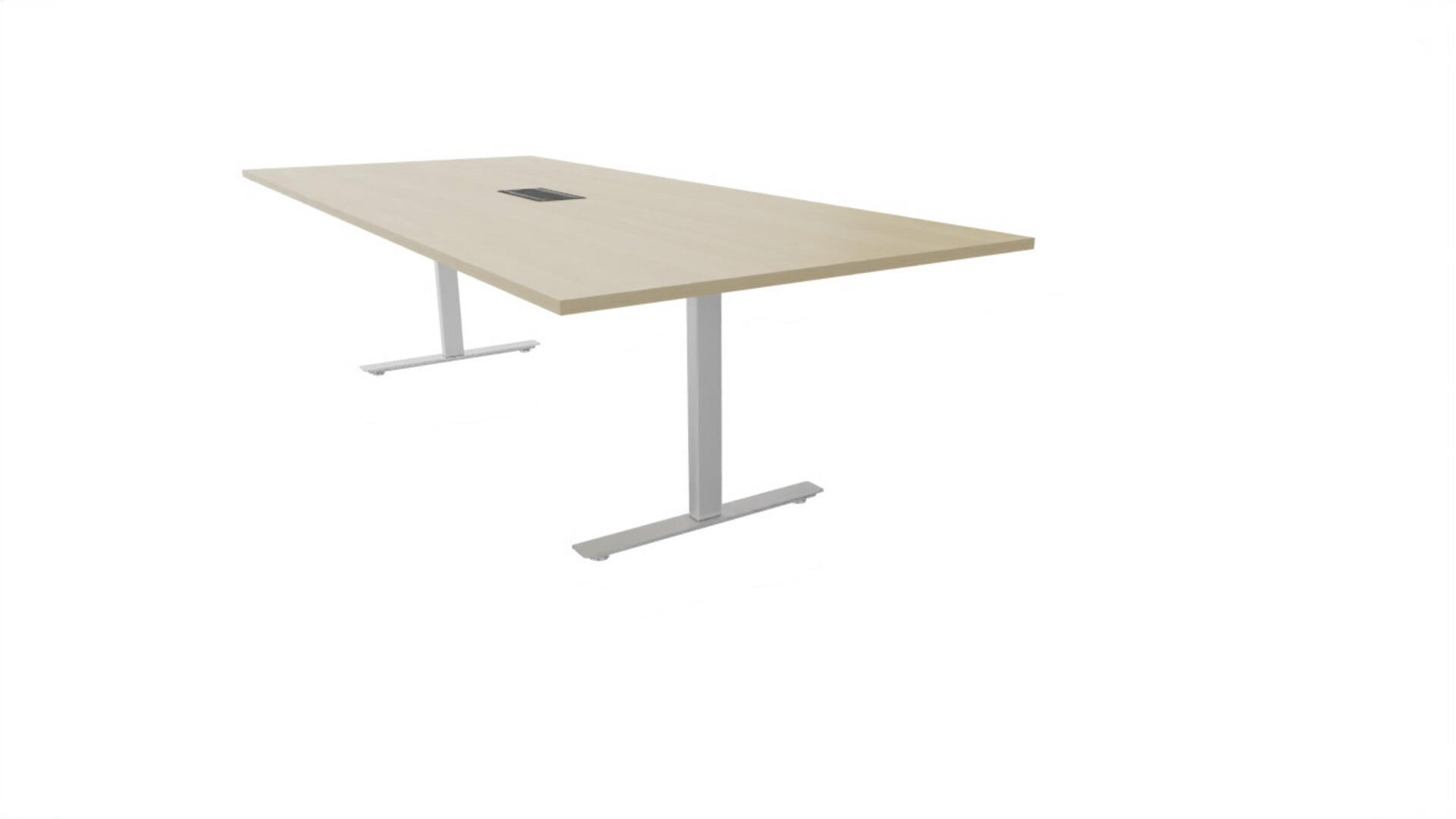 Ett konferensbord med rektangulär skiva, rak kant. Kärna av spånskiva klädd med laminat och ABS-kantband. Underrede T-stativ med 2 ben, fotlängd: 90 cm. Förutom vanligt standardlaminat, finns bordet även med ett svart nanolaminat som har en yta som är matt och resistent mot fingeravtryck. Som tillval kan du även välja att få en mediabox (32x15 cm) infälld i bordet. Mediaboxen består av 2x 230V eluttag, 1x USB och 1x HDMI.