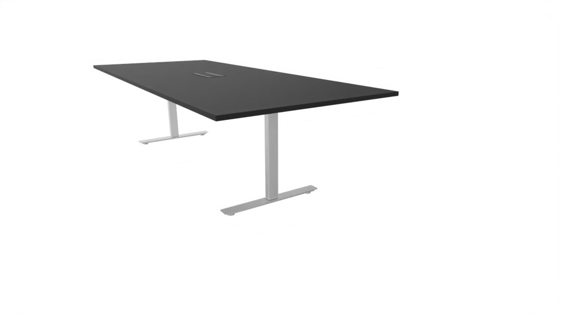 Ett konferensbord med rektangulär skiva, rak kant. Kärna av spånskiva klädd med laminat och ABS-kantband. Underrede T-stativ med 3 ben, fotlängd: 90 cm. Förutom vanligt standardlaminat, finns bordet även med ett svart nanolaminat som har en yta som är matt och resistent mot fingeravtryck. Som tillval kan du även välja att få två st mediaboxar (32x15 cm) infällda i bordet. Varje mediabox består av 4x 230V eluttag, 2x USB och 2x HDMI.