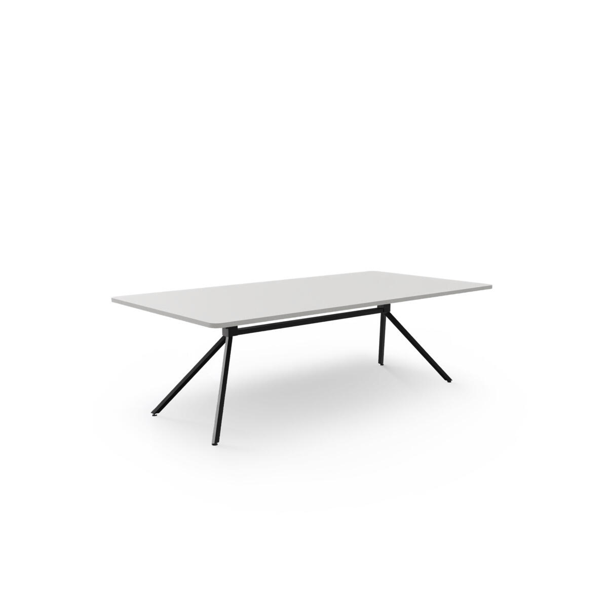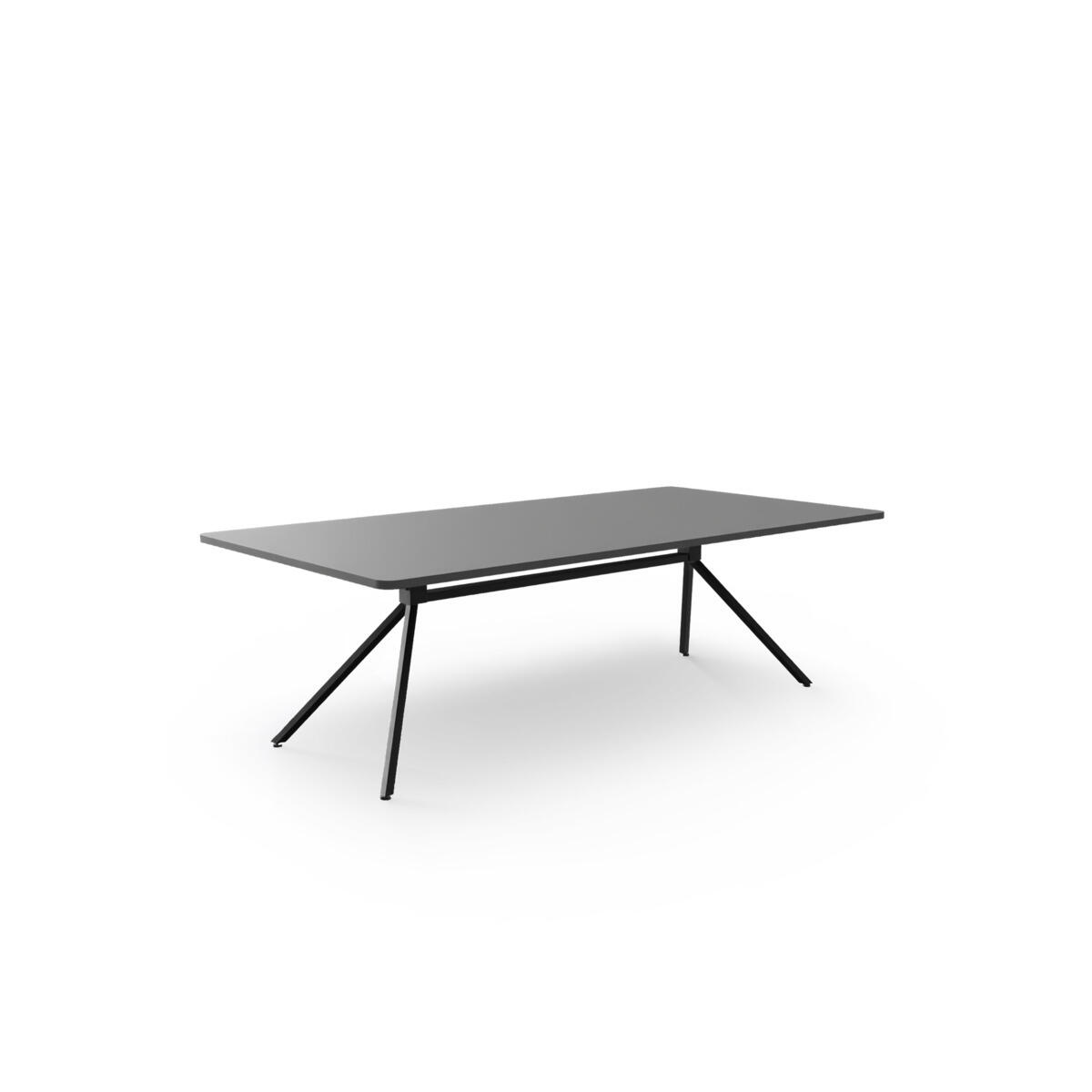 Tekla är ett stilrent och stabilt bord med en svävande designkänsla. Den robusta stommen med vinklade ben ger utmärkt stabilitet. Välj mellan HPL eller NANO-skiva. HPL har raka kanter medan Nano har fasade kanter. Bord med Nano skiva har integrerad kabel- och mediabrunn med gångjärnslock i samma material som bordsskivan. Stativ i pulverlackad metall.