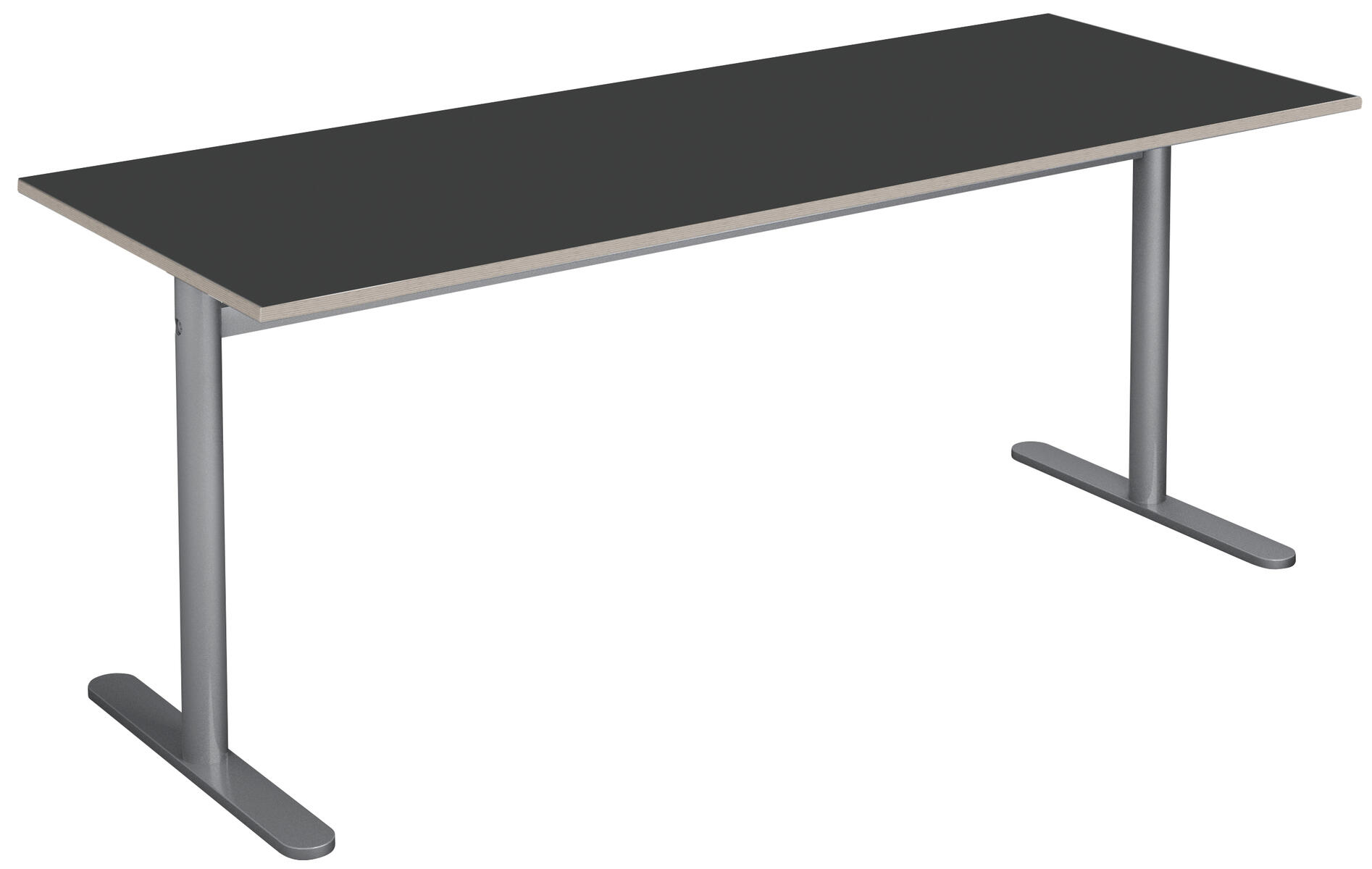 Skiva i tåligt högtryckslaminat. T-stativ lackerat i svart, RAL 9005.