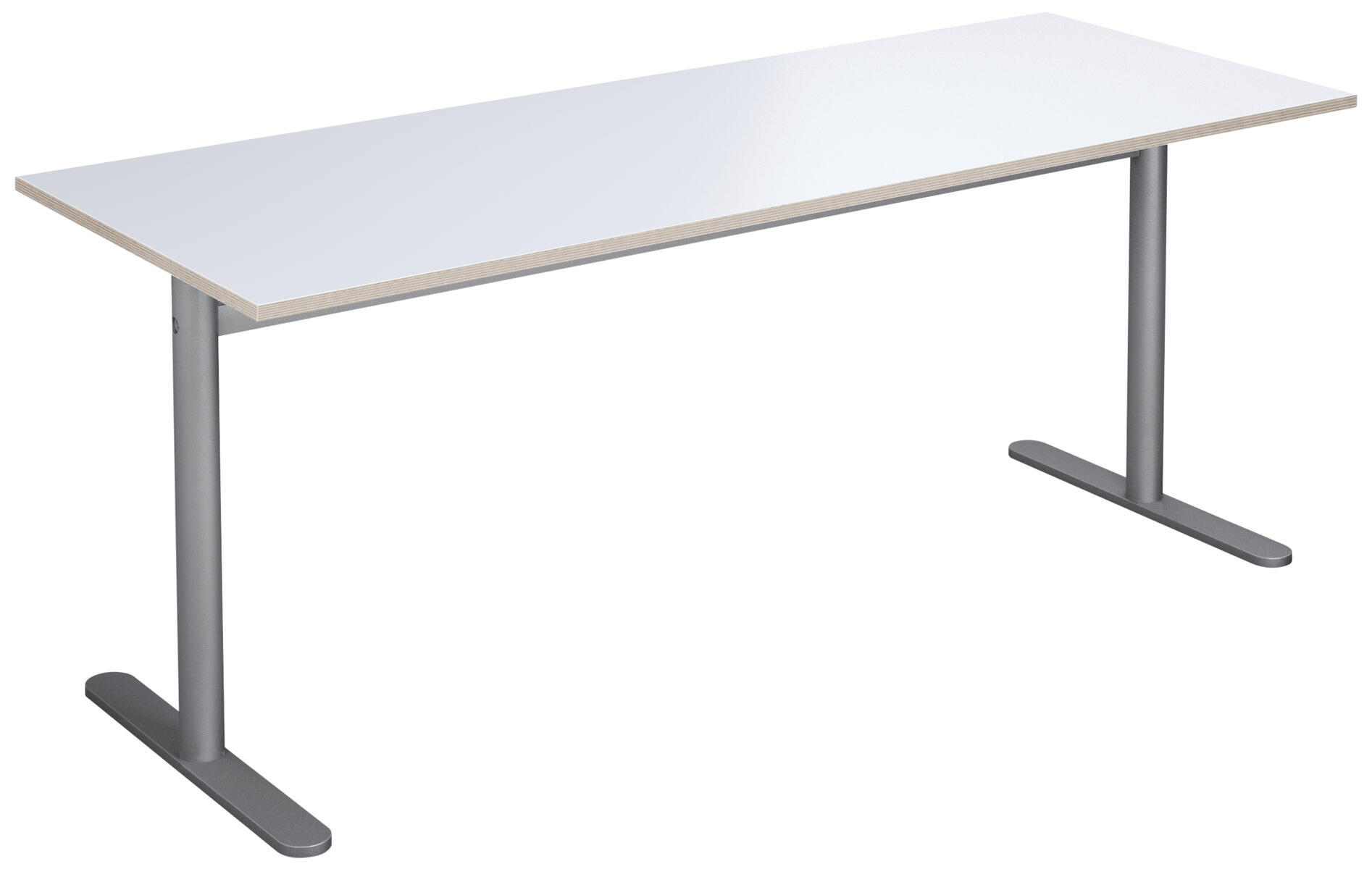 Skiva i tåligt högtryckslaminat. Höjd 72 cm. T-stativ lackerat i silver, RAL 9006.