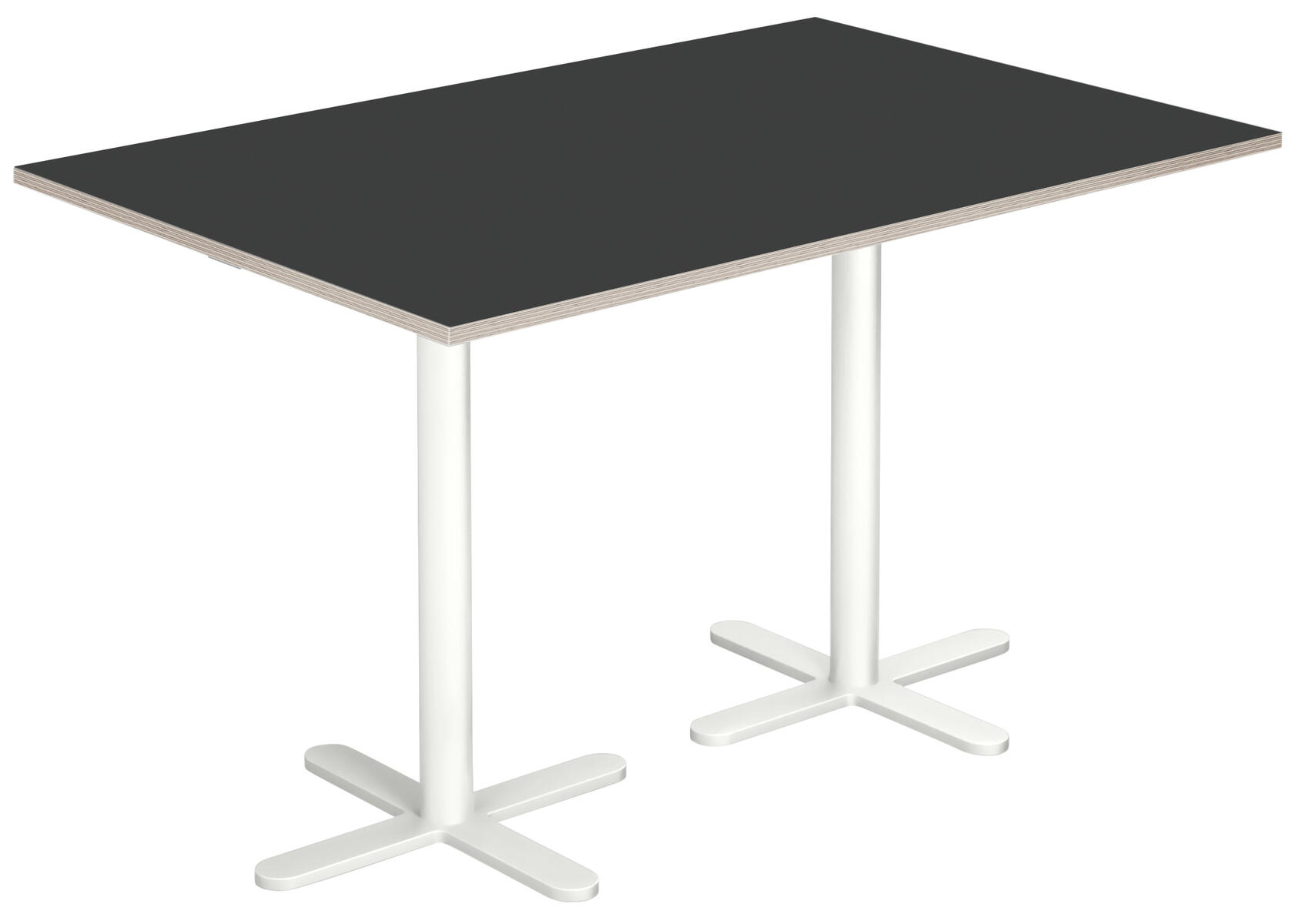 Skiva i tåligt högtryckslaminat. X-stativ lackerat i vitt, RAL 9003.