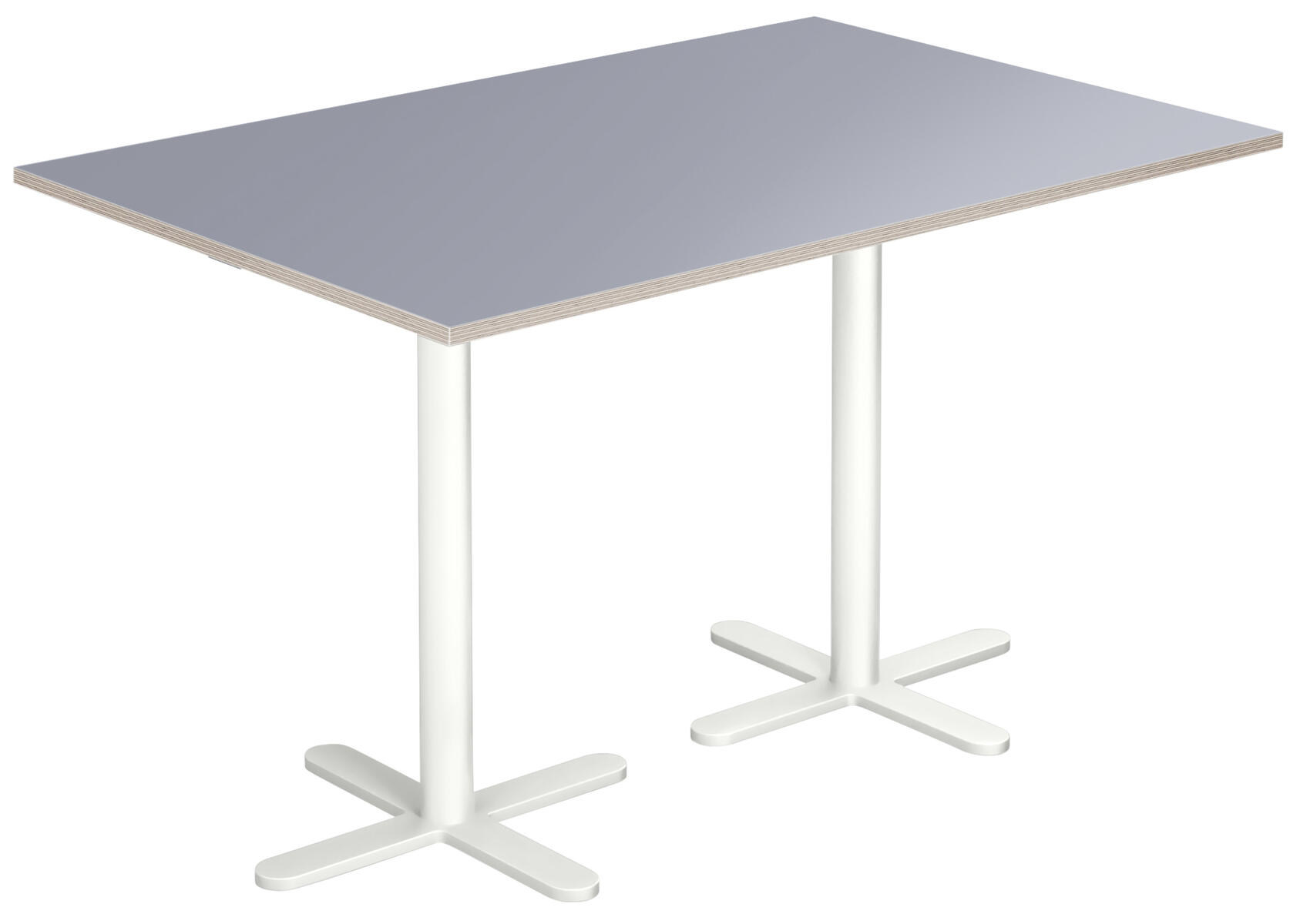 Skiva i tåligt högtryckslaminat. Höjd 72 cm. T-stativ lackerat i silver, RAL 9006.