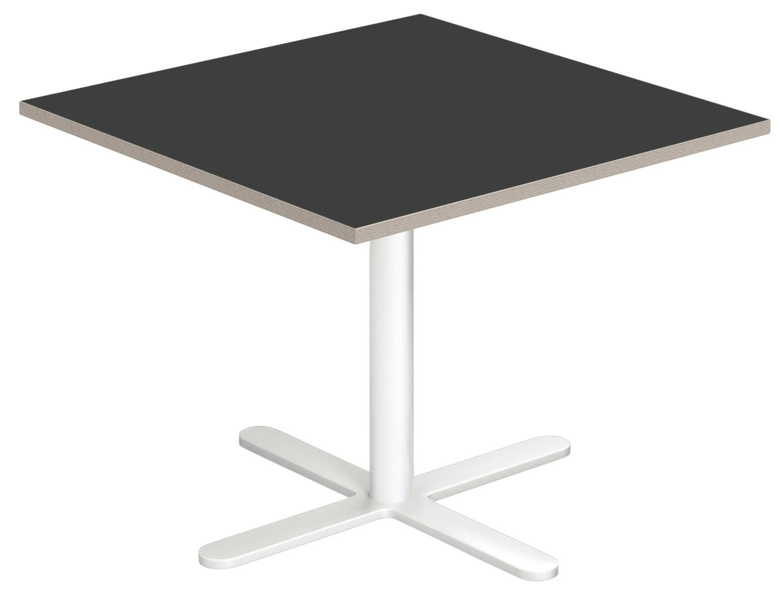 Skiva i tåligt högtryckslaminat. X-stativ lackerat i svart, RAL 9005.
