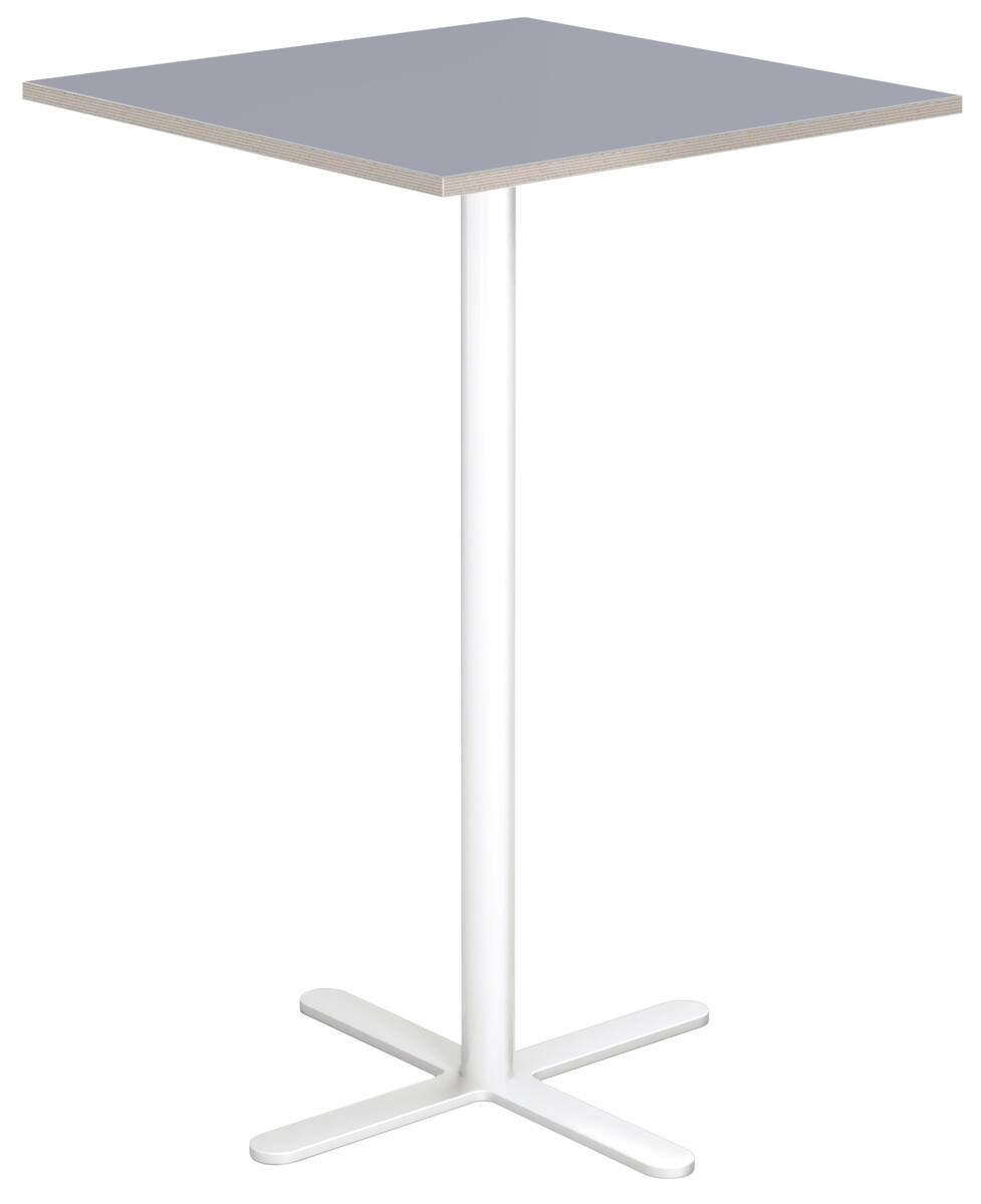 Skiva i tåligt högtryckslaminat. Höjd 72 cm. T-stativ lackerat i silver, RAL 9006.