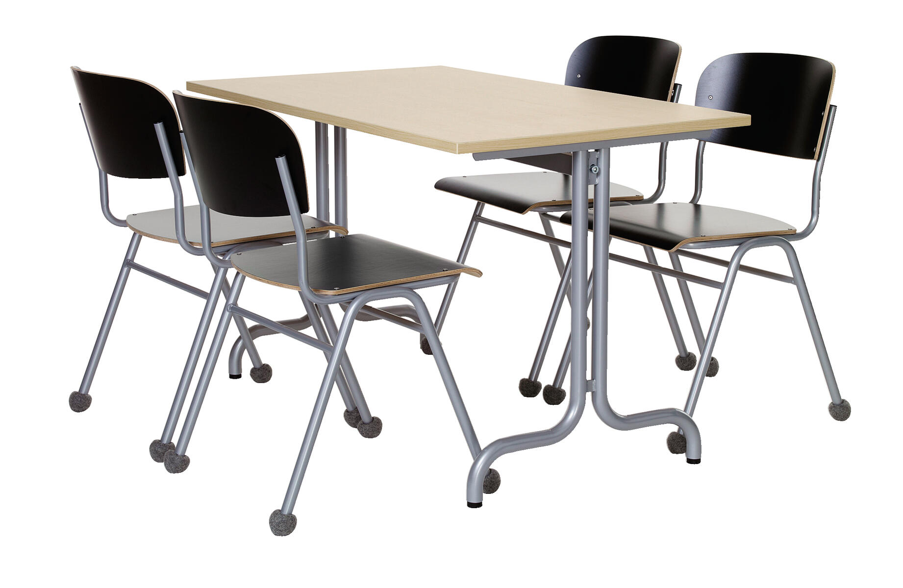 Skiva i ljuddämpande högtryckslaminat. Ställbara tassar för anpassning till ojämna ytor. Stativet lackerat i silver RAL9006.