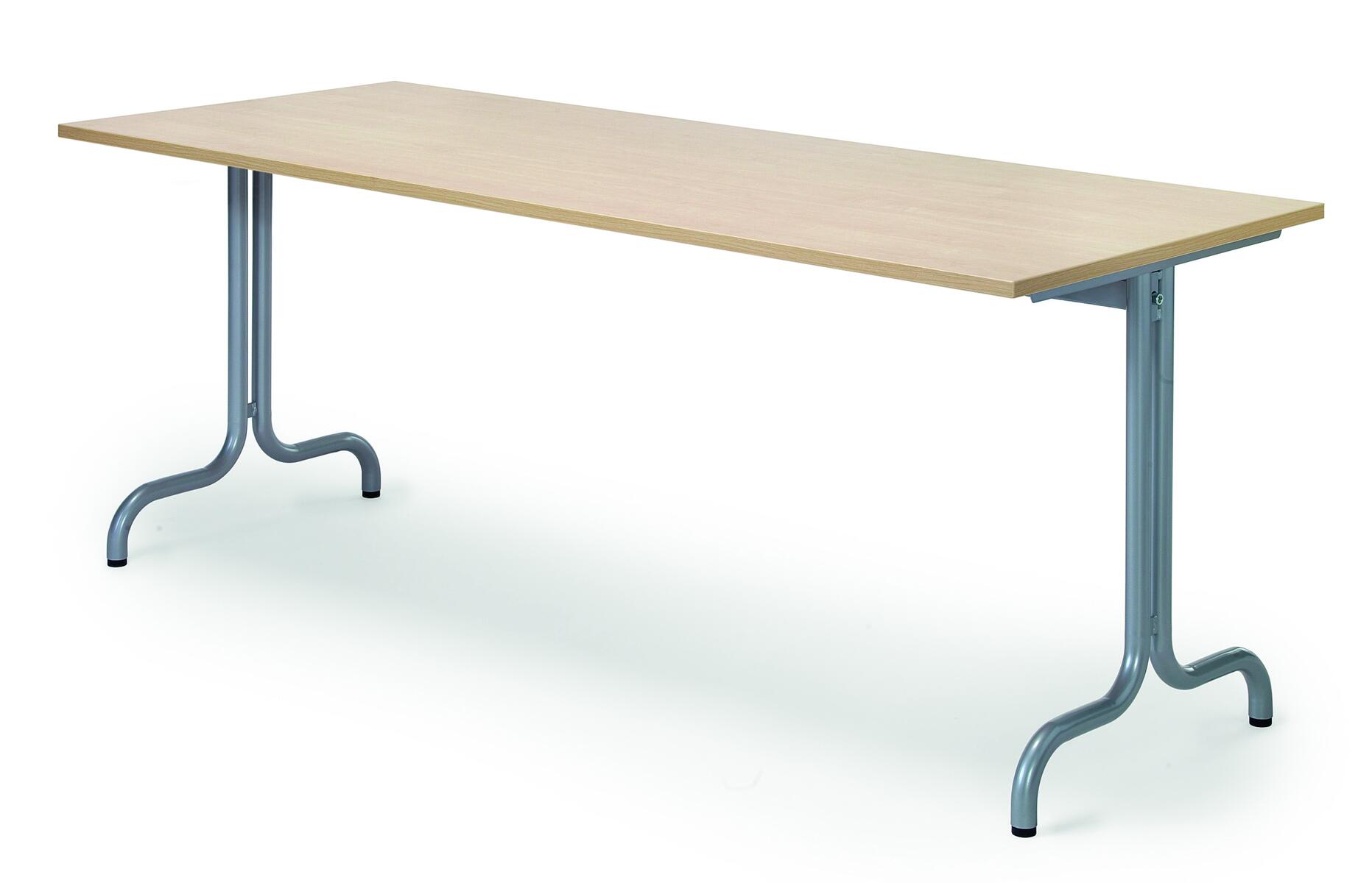 Ställbara tassar. Skiva i Svanenmärkt linoleum. Höjd 72 cm. Silverlackerat stativ, RAL 9006.
