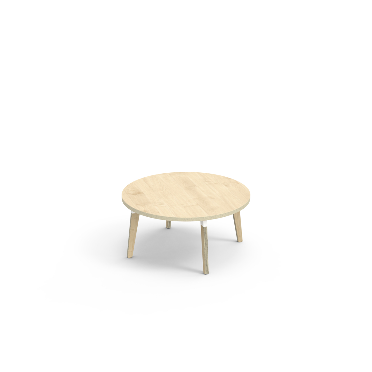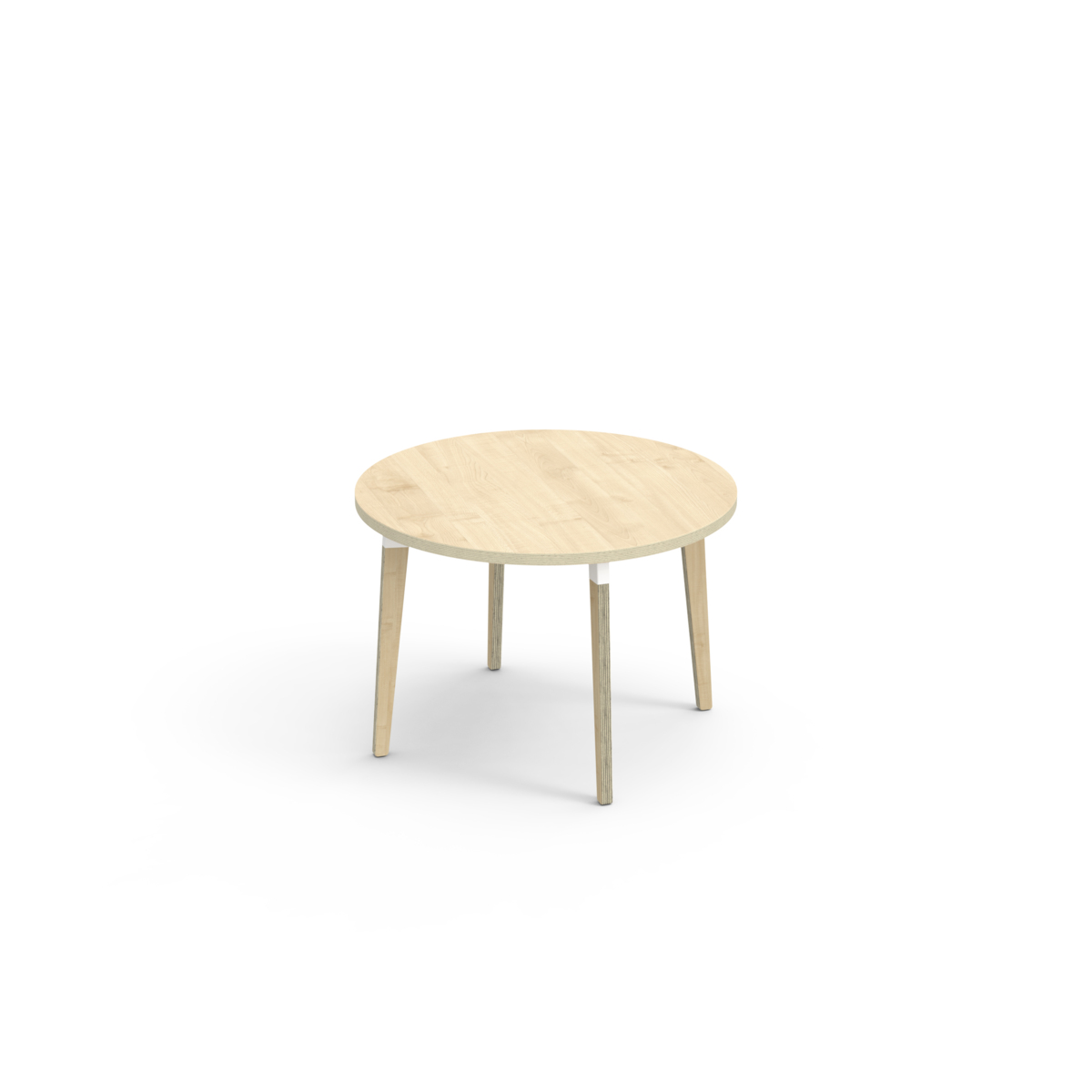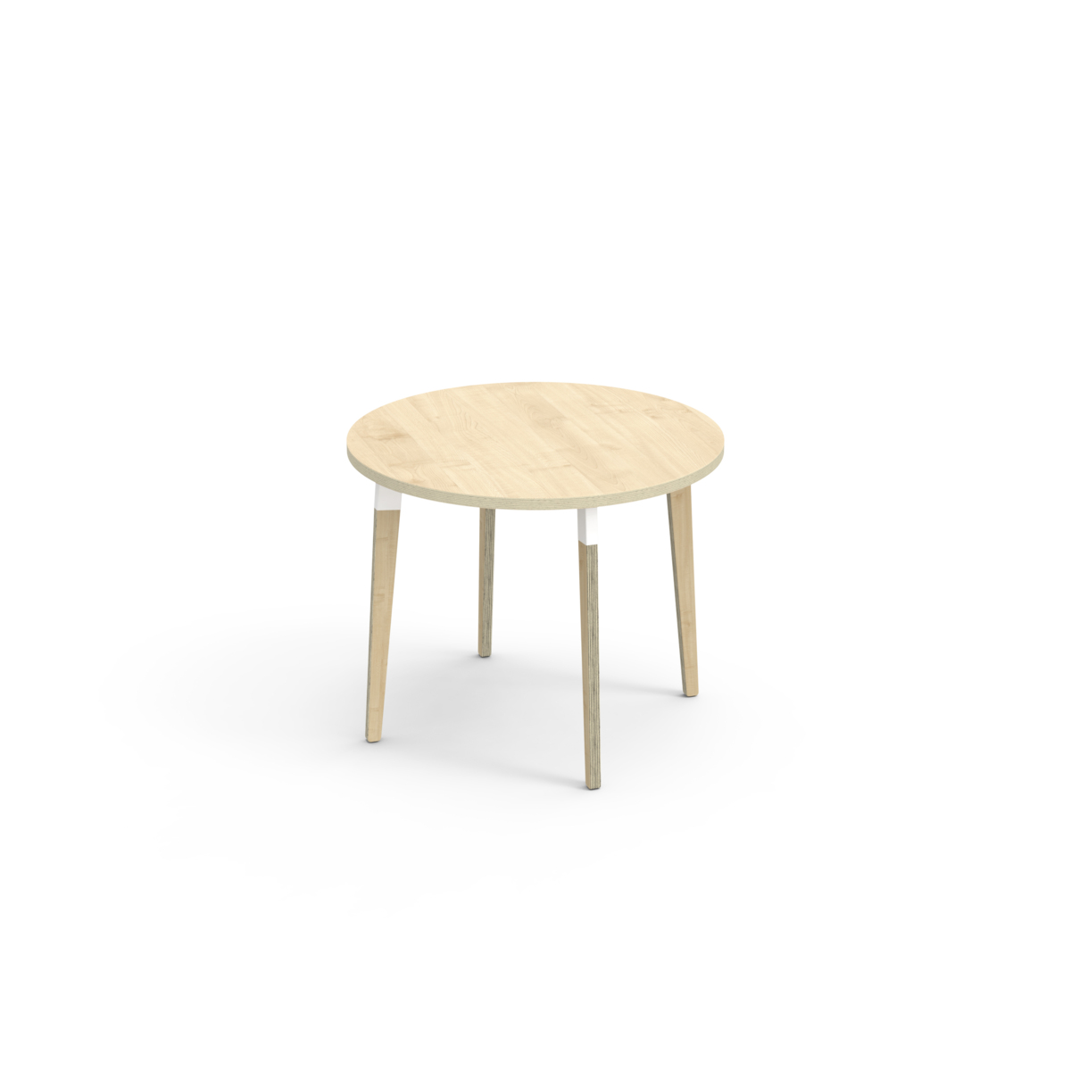 Bordsskiva belagd med akustik linoleum, vilket ger en mjuk och behaglig yta samtidigt som det bidrar till en bättre ljudmiljö. Med en hörnradie på 40 mm får bordet en modern och stilren design. Benen har en rektangulär form och är tillverkade av klarlackad björkplywood som är monterade i en robust vit metallhylsa. Denna konstruktion garanterar både stabilitet och hållbarhet. Benen är något snett vinklade ut mot bordsskivans hörn. Monteringen är enkel och smidig – du behöver bara fästa metallhylsorna i de förberedda fästpunkterna i bordsskivan.