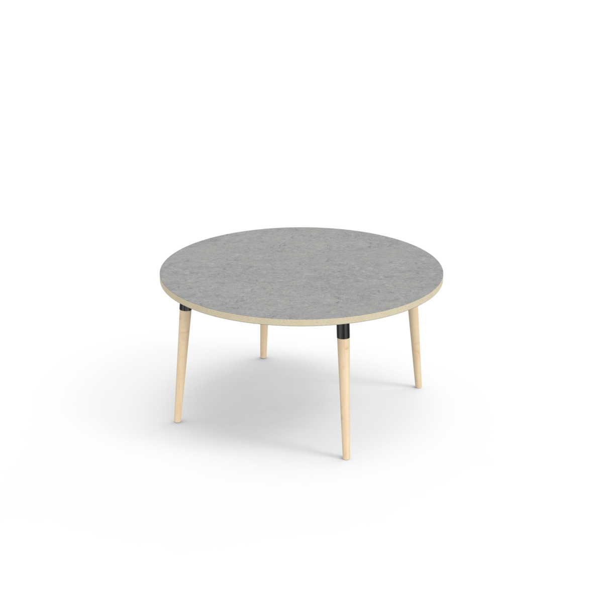 Bordsskiva belagd med akustik linoleum, vilket ger en mjuk och behaglig yta samtidigt som det bidrar till en bättre ljudmiljö. Med en hörnradie på 40 mm får bordet en modern och stilren design. Benen är konade och tillverkade av klarlackad massiv björk och monterade i en robust svart metallhylsa. Denna konstruktion garanterar både stabilitet och hållbarhet. Benen är något snett vinklade ut mot bordsskivans hörn. Monteringen är enkel och smidig – du behöver bara fästa metallhylsorna i de förberedda fästpunkterna i bordsskivan.