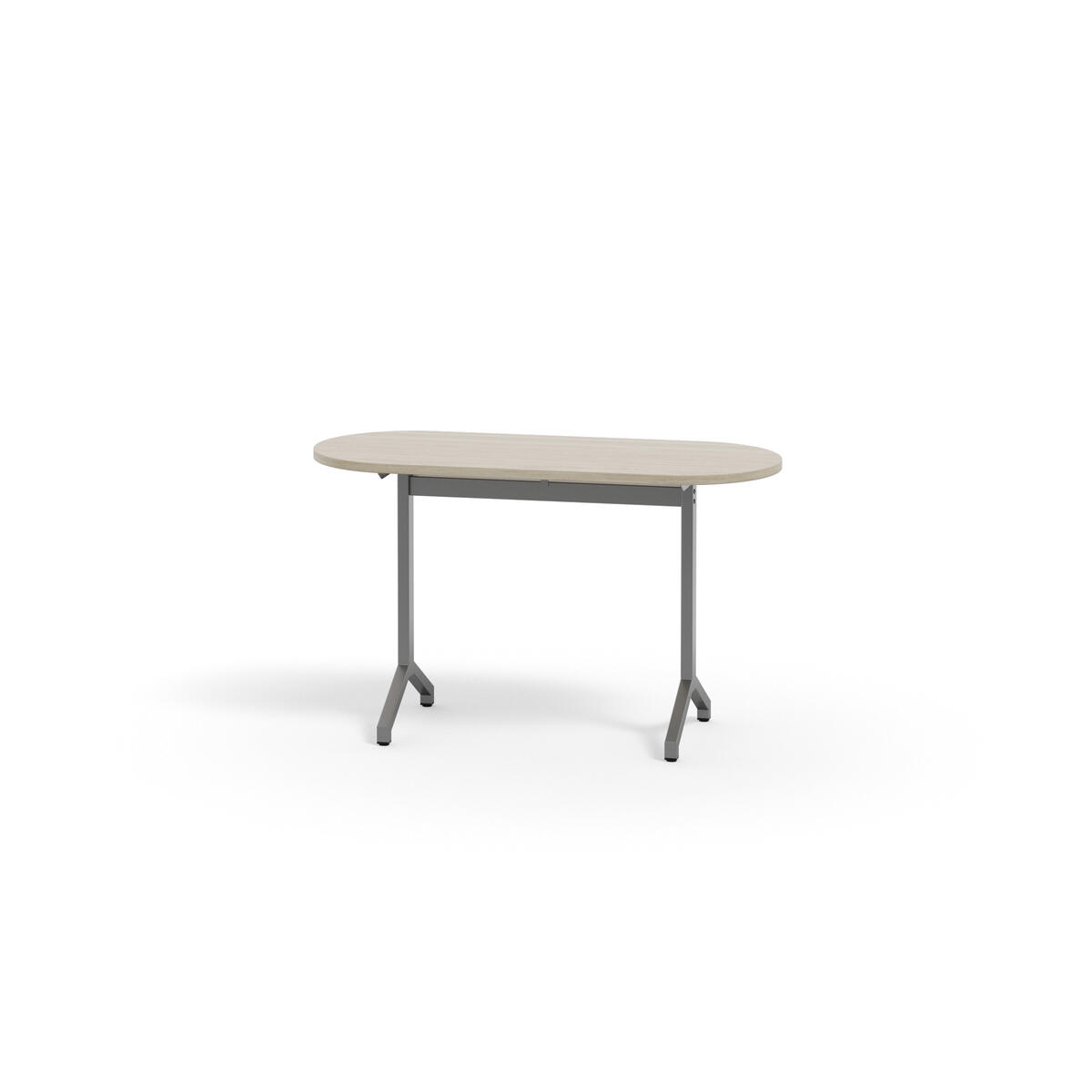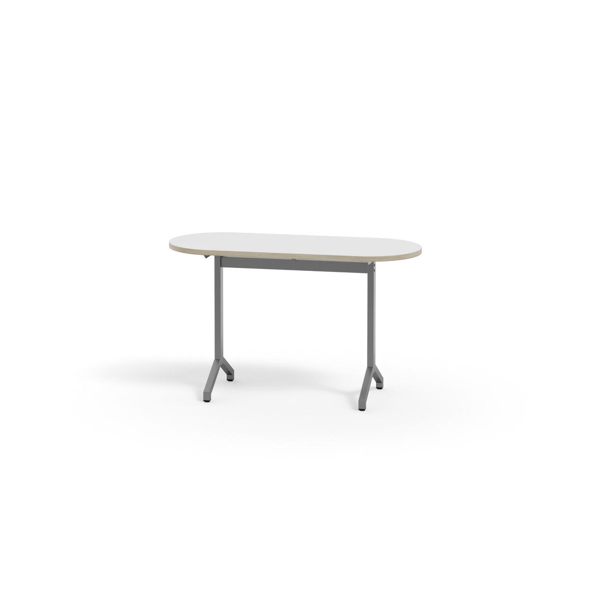 Pelarbord med lackat stativ i RAL 9006. Ljuddämpande bordsskiva belagd med tåligt högtryckslaminat. Testat och godkänt enligt EN 15372:2016 som uppfyller krav för stabiltet, hållbarhet och säkerhet.