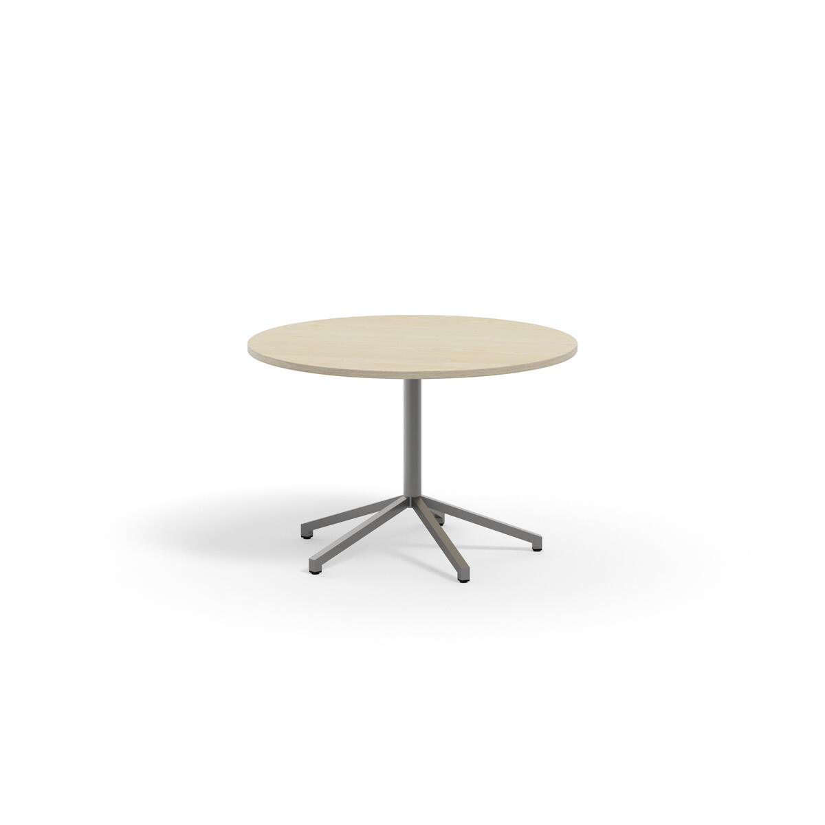 Bordsskiva i akustiklaminat. Ställbara tassar för anpassning till ojämna golv. Silverlackerat stativ, RAL 9006.