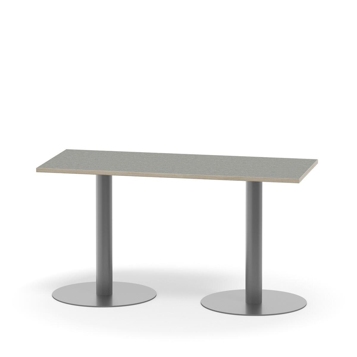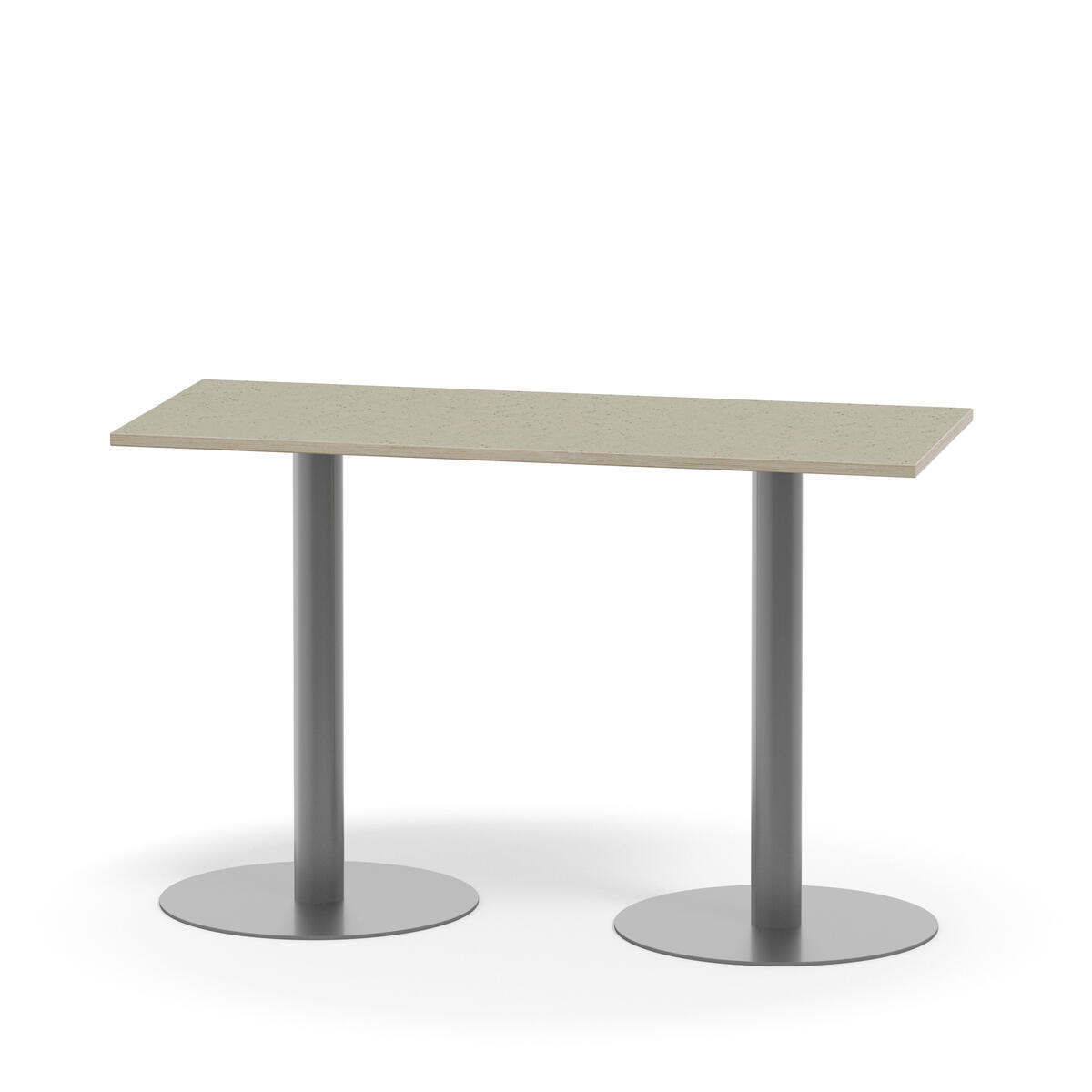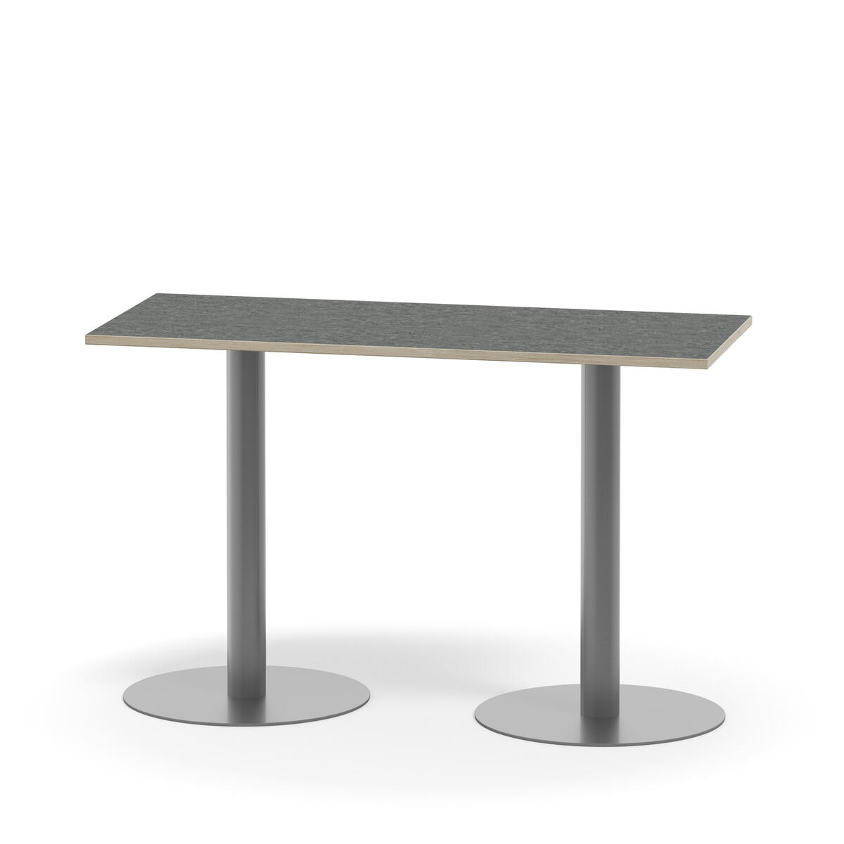Pelarbord med lackat stativ i RAL 9006. Ljuddämpande bordsskiva belagd med tåligt högtryckslaminat. Testat och godkänt enligt EN 15372:2016 som uppfyller krav för stabiltet, hållbarhet och säkerhet.