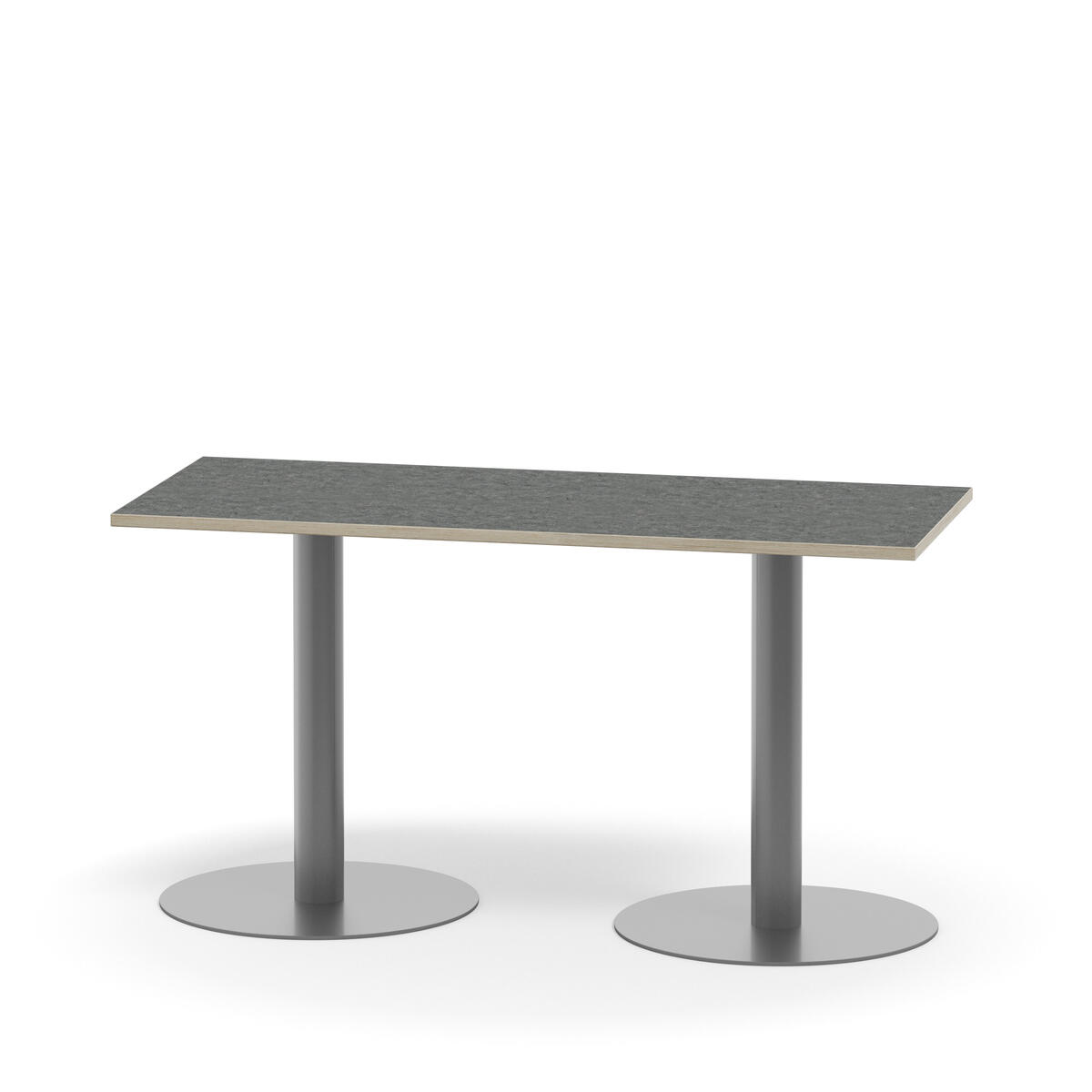 Pelarbord med lackat stativ i RAL 9005. Ljuddämpande bordsskiva belagd med tåligt högtryckslaminat. Testat och godkänt enligt EN 15372:2016 som uppfyller krav för stabiltet, hållbarhet och säkerhet.