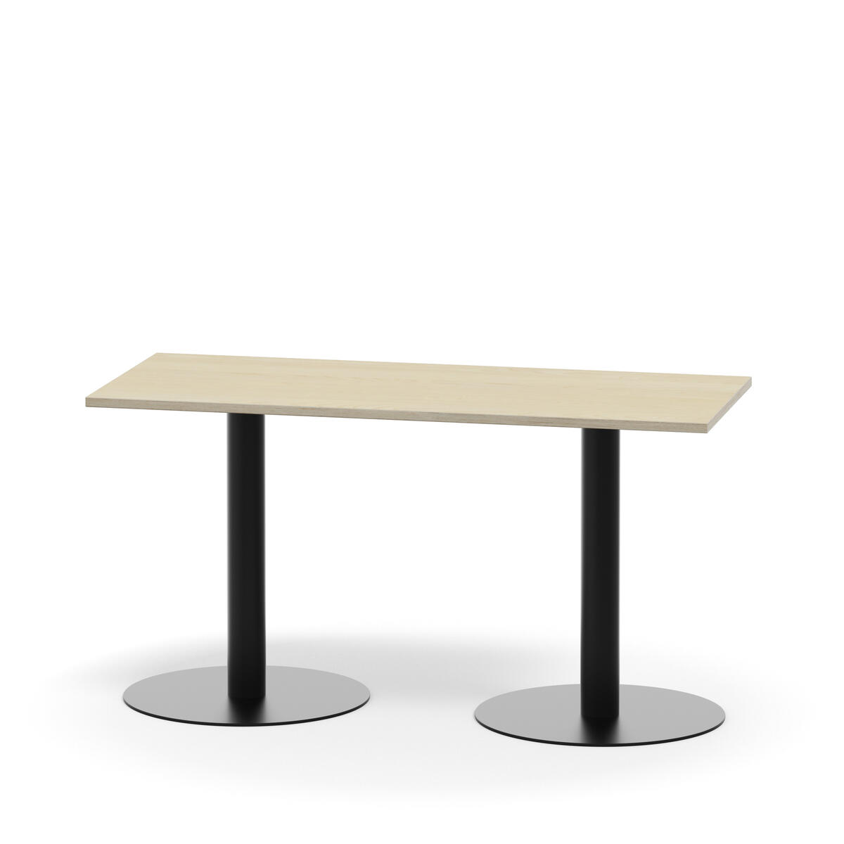 Pelarbord med lackat stativ i RAL 9005. Ljuddämpande bordsskiva belagd med tåligt högtryckslaminat. Testat och godkänt enligt EN 15372:2016 som uppfyller krav för stabiltet, hållbarhet och säkerhet.