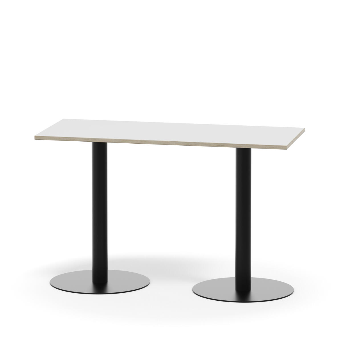 Pelarbord med lackat stativ i RAL 9003. Bordsskiva i tåligt högtryckslaminat. Testat och godkänt enligt EN 15372:2016 som uppfyller krav för stabiltet, hållbarhet och säkerhet.